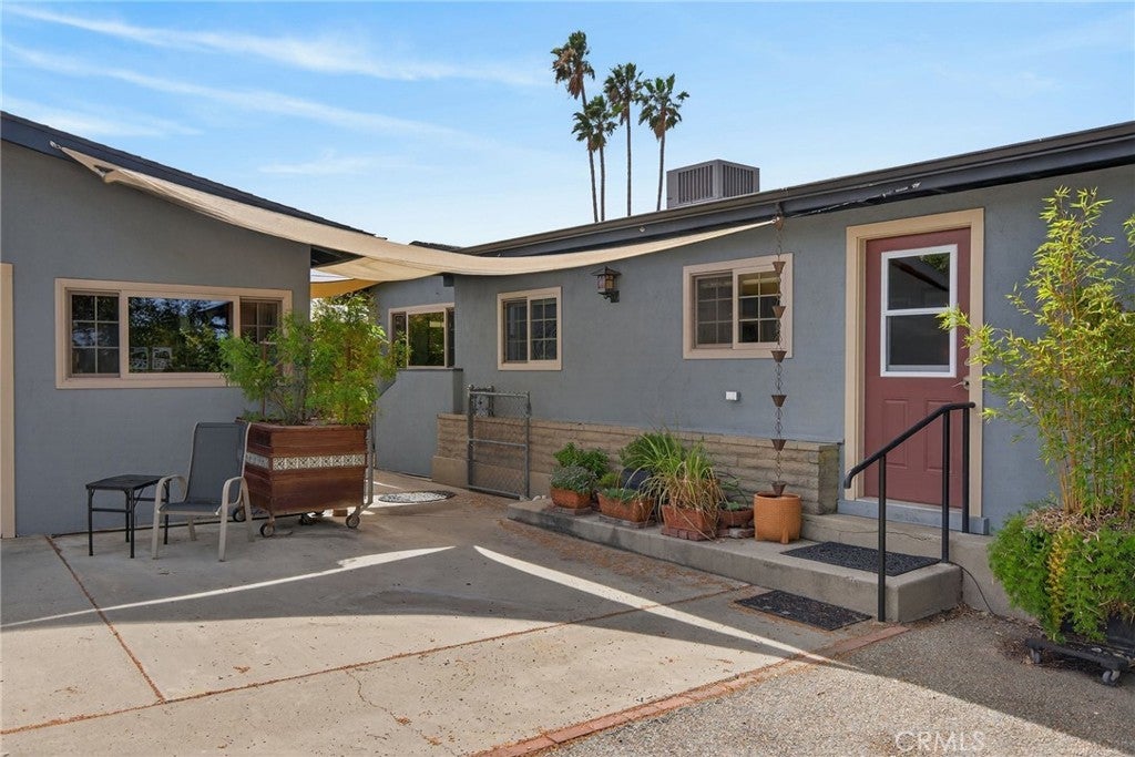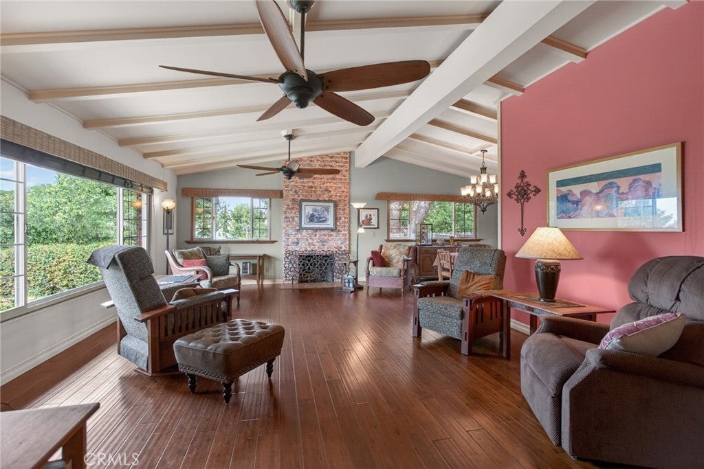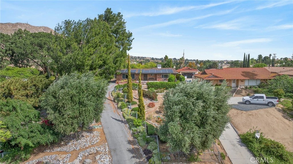 Located in the University Heights neighborhood of Riverside, this distinguished mid-century residence provides privacy, generous living space, and impressive views. A lengthy, secluded driveway leads to a meticulously maintained single-story home, thoughtfully designed for both comfort and elegance. The front patio offers panoramic vistas of the surrounding area, the city of Riverside, and Mount Baldy. Entry through a custom hardwood door opens into a spacious great room featuring an open beam ceilings and wood flooring. The heart of the home features a floor-to-ceiling brick fireplace, creating a warm and inviting focal point in the living area. Large windows frame the fireplace, enhancing the serene, mid-century atmosphere. Expansive front windows allow abundant natural light and showcase exterior views. The adjoining formal dining area is seamlessly integrated with the recently updated kitchen, which includes ample cabinetry, extensive counter space, and modern stainless-steel appliances. The family room addition features overhead inset lighting, a built-in buffet, and a convenient pass-through window—ideal for casual meals or morning coffee. The property’s three bedrooms are all spacious and bright with energy-efficient ceiling fans in each one. A separate indoor laundry room enhances functionality. The nearly half-acre grounds are landscaped with desert-inspired elements, offering a scenic garden path along the hillside. The backyard includes a pool and spa, with cross-fencing for security and a shaded canopy to create a serene retreat. An artificial grass play area serves as an excellent space for children or pets. The detached three-car garage with workshop provides additional storage and workspace, complemented by a large carport for shaded parking. The property also benefits from an energy-efficient leased solar system. Blending classic mid-century architecture with contemporary amenities, this home offers an exceptional living environment. Its proximity to shopping, UCR, transportation, and other conveniences further enhances its appeal.