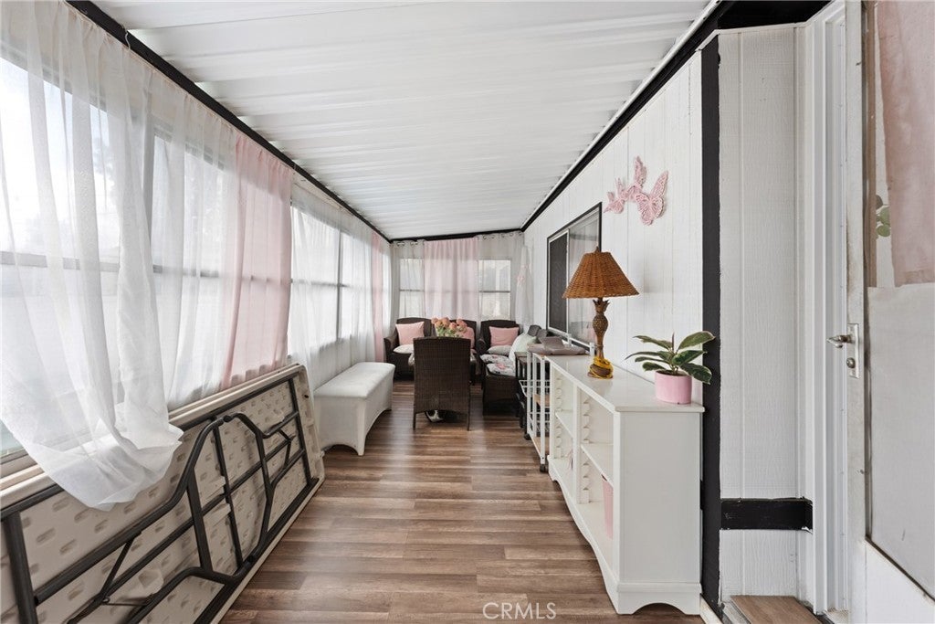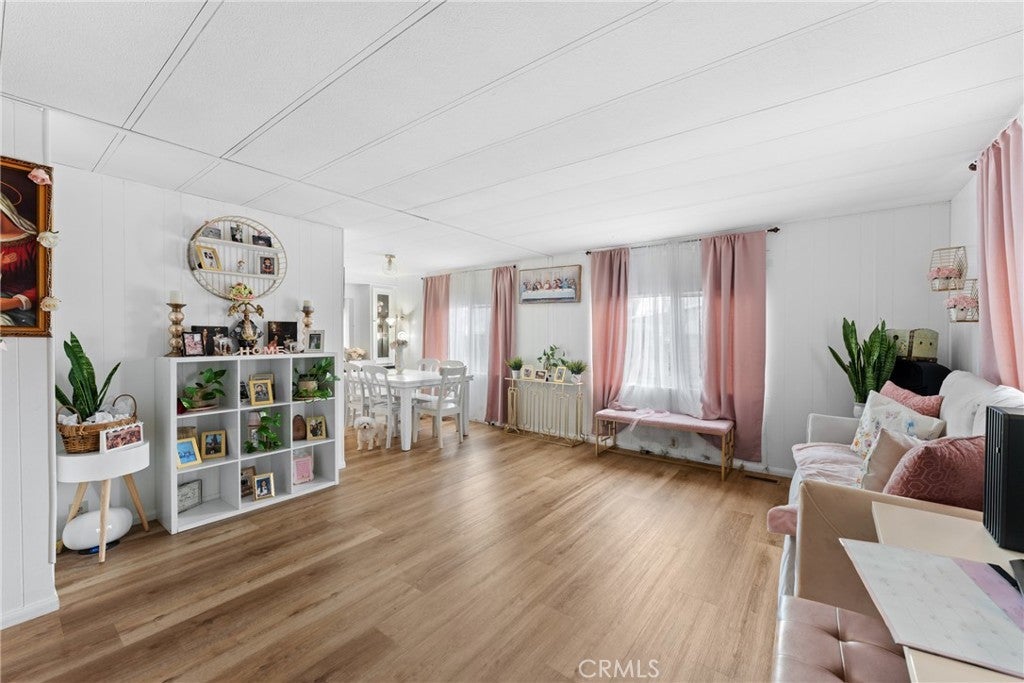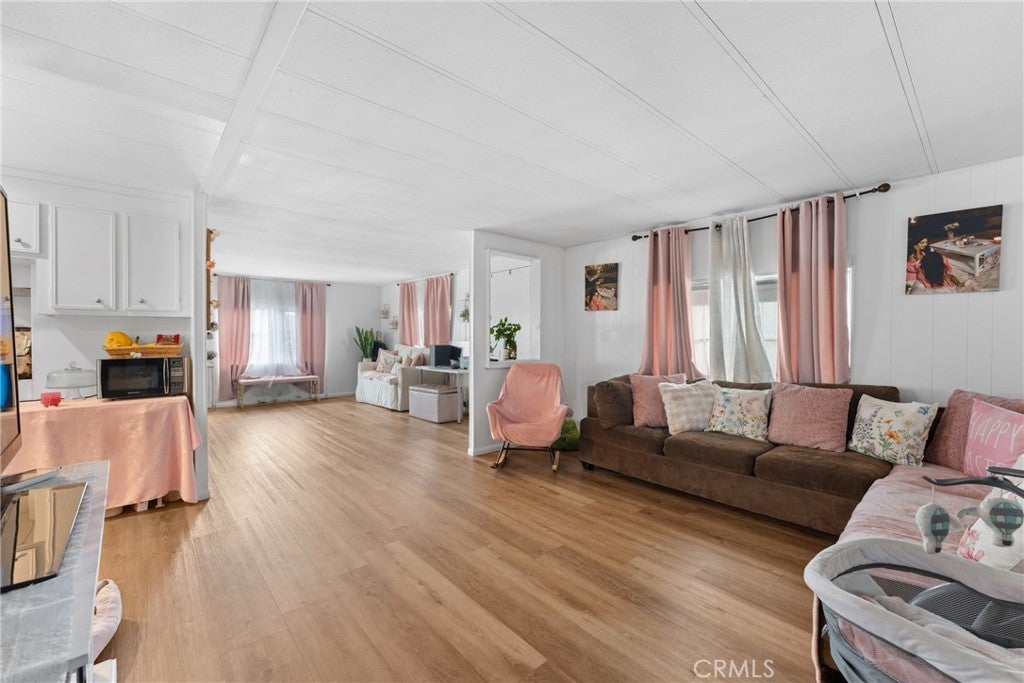 Welcome to this beautifully updated 2 bedroom 2 bathroom home located in Sierra Pines an all ages community at 3883 Buchanan Street Space 45 in Riverside. Situated on a desirable corner lot, this home offers added privacy along with a spacious front patio area that is perfect for outdoor gatherings, relaxing, or enjoying the Southern California weather. Inside, you will find a bright and inviting layout featuring updated flooring, upgraded bathrooms, and a stylish interior that is truly move in ready. The home also includes a sunroom that provides additional versatile living space, ideal for a home office, lounge, or entertainment area. The kitchen has been tastefully updated and offers a functional layout for everyday living. Washer and dryer hookups are conveniently located inside the home. Residents enjoy access to community amenities including a clubhouse, library, pool, spa, and on site laundry facility. Conveniently located on the border of Riverside and Corona, this home offers easy access to shopping, dining, and major freeways.