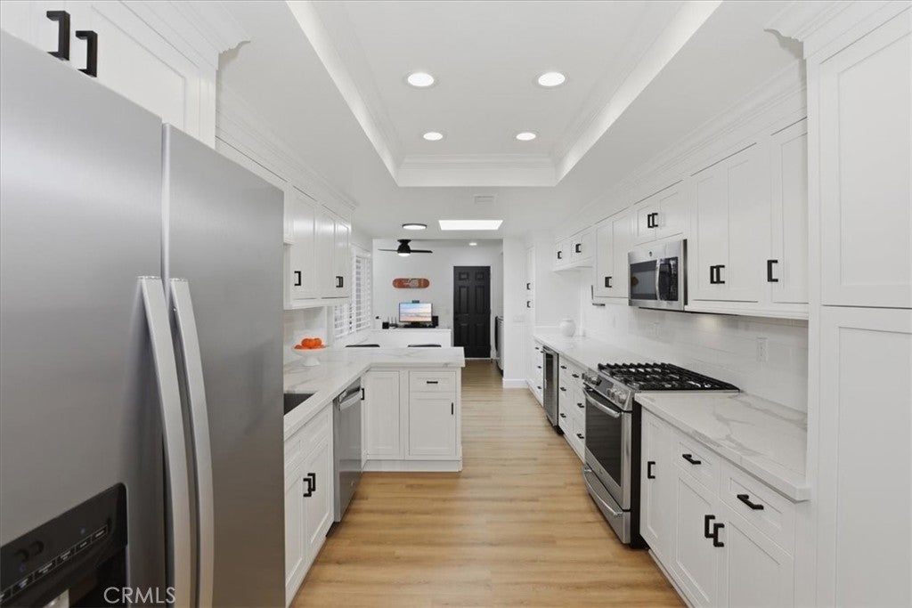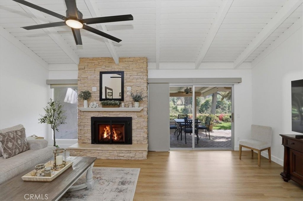Welcome to 702 Via Zapata, a fully remodeled and tastefully updated single-story home offering comfort, style, and scenic surroundings in a desirable Riverside community. This beautifully refreshed residence features an open and inviting floor plan with vaulted ceilings, abundant natural light, and modern finishes throughout. The remodeled kitchen showcases quartz countertops, updated cabinetry, and a seamless flow into the main living areas—perfect for both everyday living and entertaining. The spacious living room is anchored by a cozy fireplace and opens to the outdoor patio, creating an effortless indoor-outdoor connection. The thoughtfully updated bathrooms and consistent finishes throughout the home provide a clean, cohesive design. One of the standout features of this property is its golf course views, offering a peaceful and picturesque backdrop that enhances the overall living experience. The private outdoor space is ideal for relaxing, dining, or simply enjoying the surrounding greenery. Additional highlights include updated flooring, newer windows and doors, and a well-designed single-level layout with all bedrooms conveniently located on the main floor. Located within a well-maintained community offering pool and spa amenities, and close to shopping, dining, and commuter access, this home combines turnkey condition, desirable views, and a low-maintenance lifestyle.