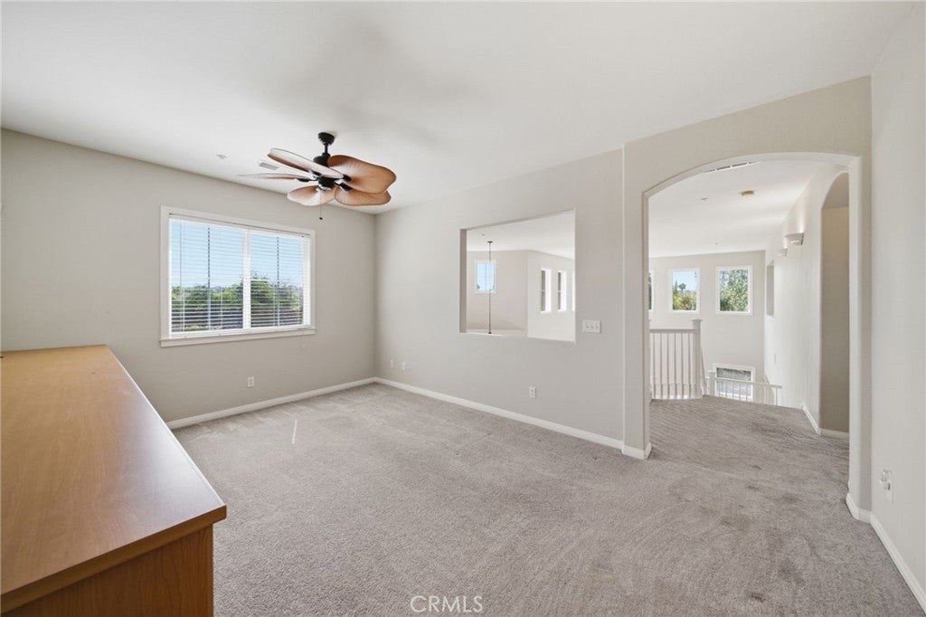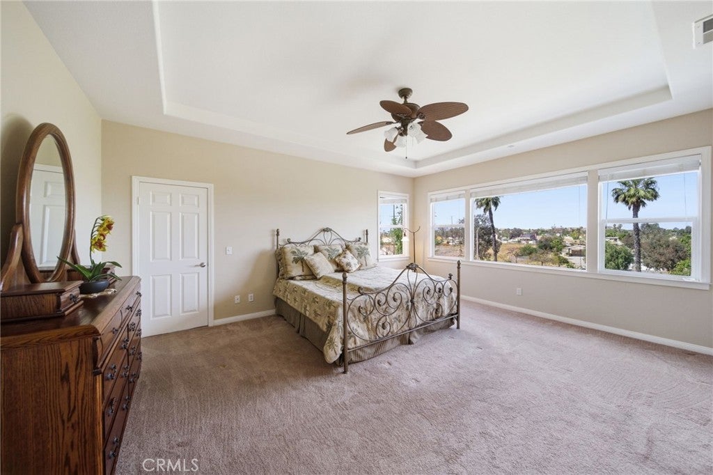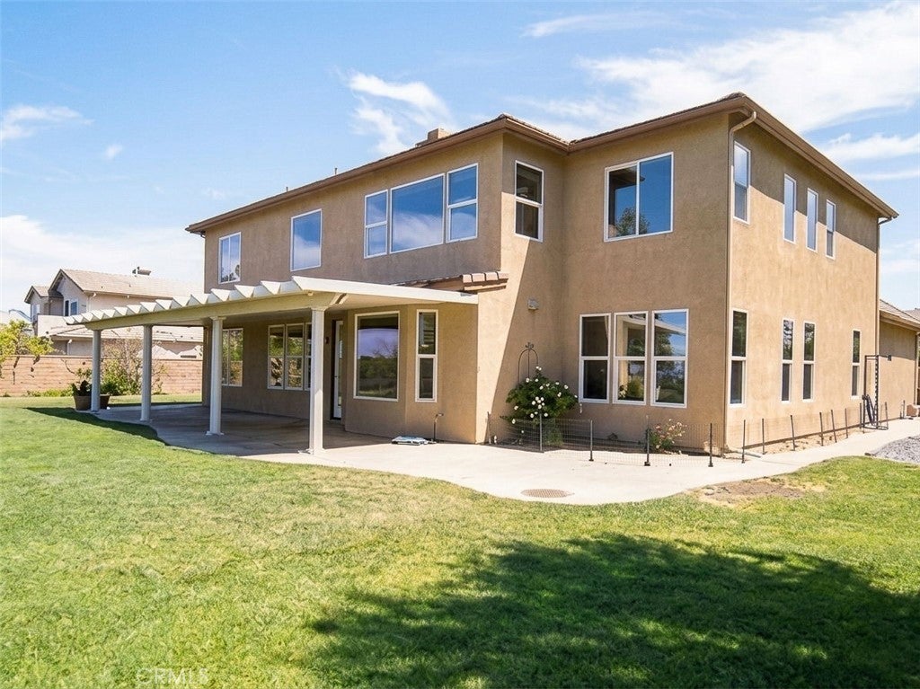 Located in the gated community of Rancho Valencia, this spacious home offers an open and functional layout designed for comfortable living and entertaining. The expansive family room flows seamlessly into the kitchen, featuring a large center island, granite countertops, a kitchenette area, and a new double oven. From the main living areas, enjoy beautiful mountain views that create a serene backdrop.Formal living and dining rooms provide additional space for gatherings and special occasions. The main floor includes a bedroom and full bathroom—ideal for guests or multigenerational living—along with a flexible bonus room perfect for an office, playroom, or home gym.Upstairs, the generous primary suite offers a private retreat with an additional sitting area that can serve as a study, nursery, or be incorporated to further expand the space.The backyard features a covered patio, ideal for outdoor dining or relaxing while taking in the mountain views. Residents also enjoy access to the community’s citrus groves beautifully maintained by the HOA, creating a unique setting where you can enjoy the charm of the orchards without the upkeep. Mature trees, fresh citrus, and scenic surroundings add to the peaceful atmosphere that makes this home and neighborhood truly special. The property also includes gated RV parking, providing added convenience and flexibility.