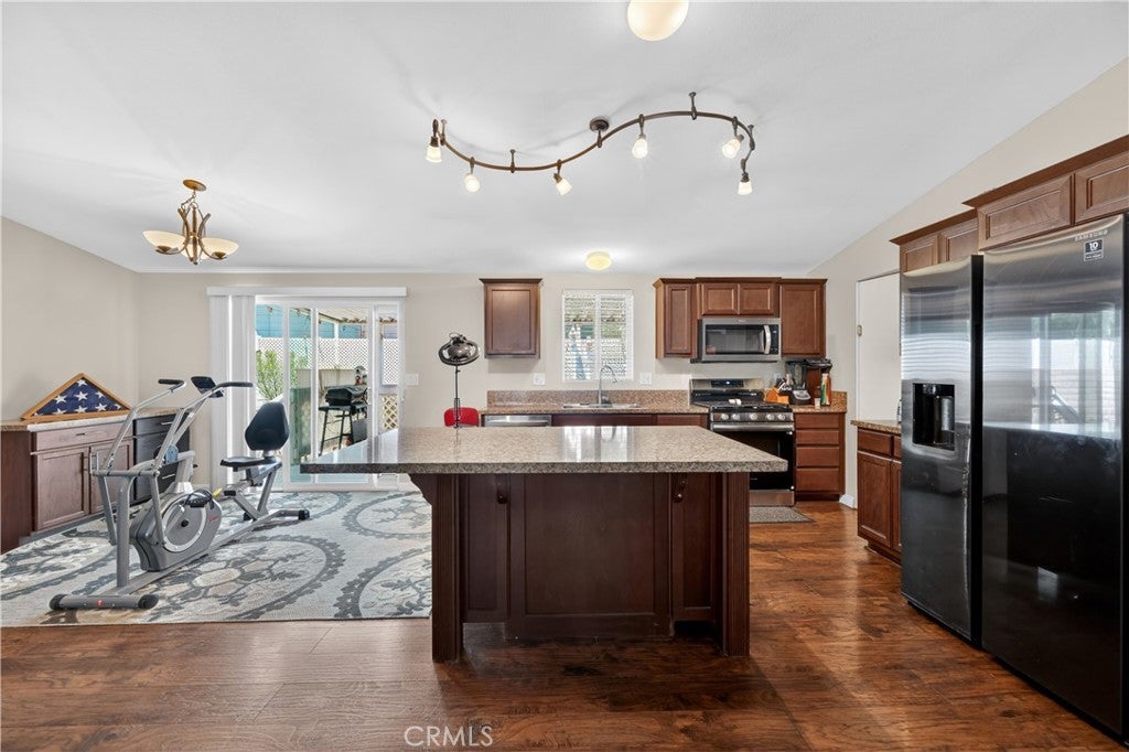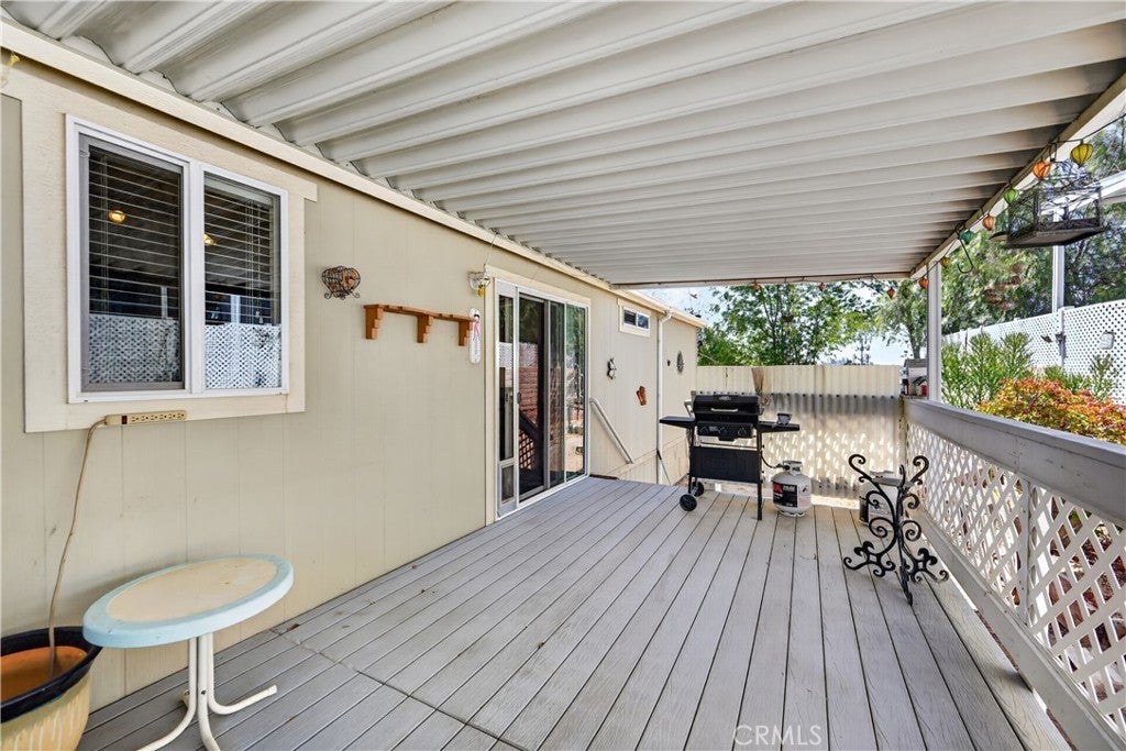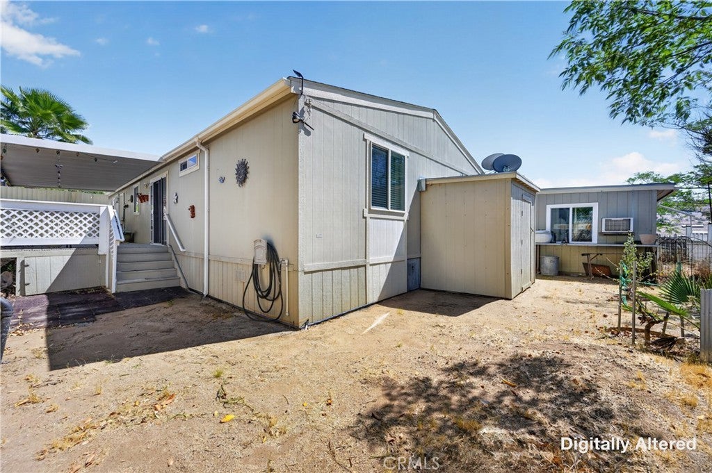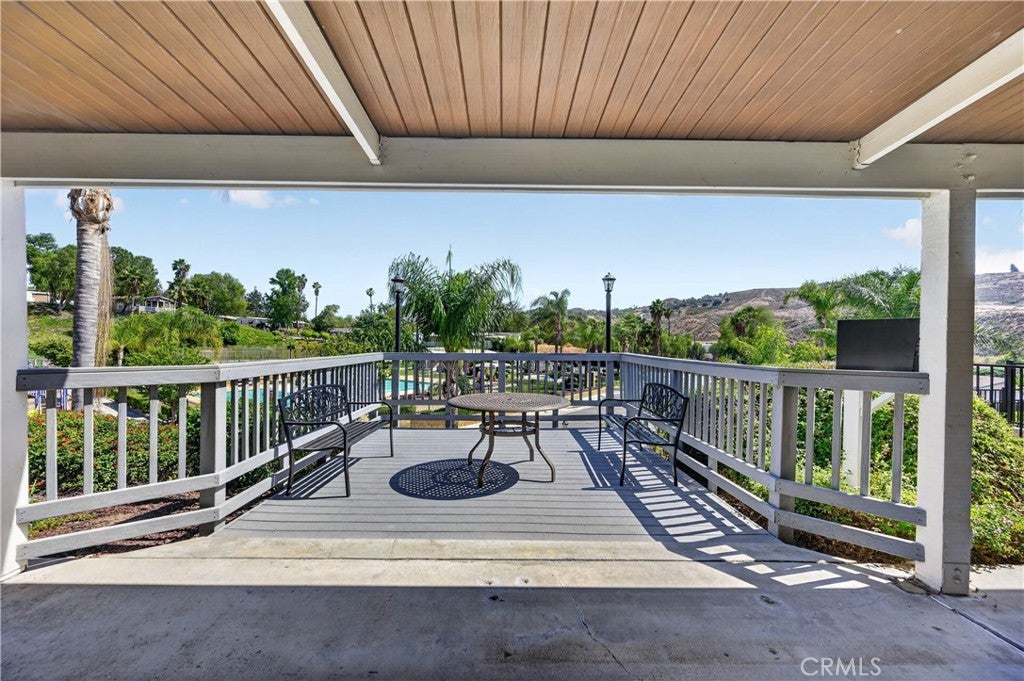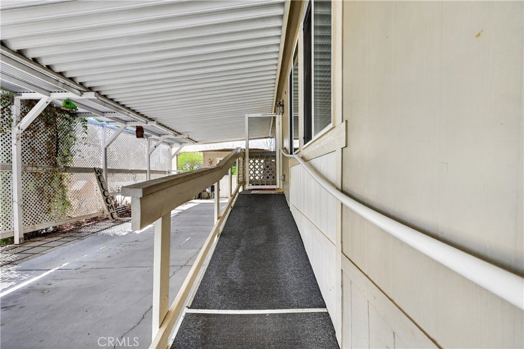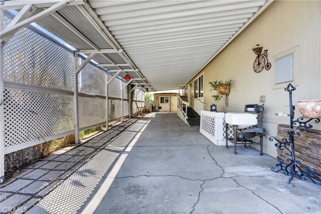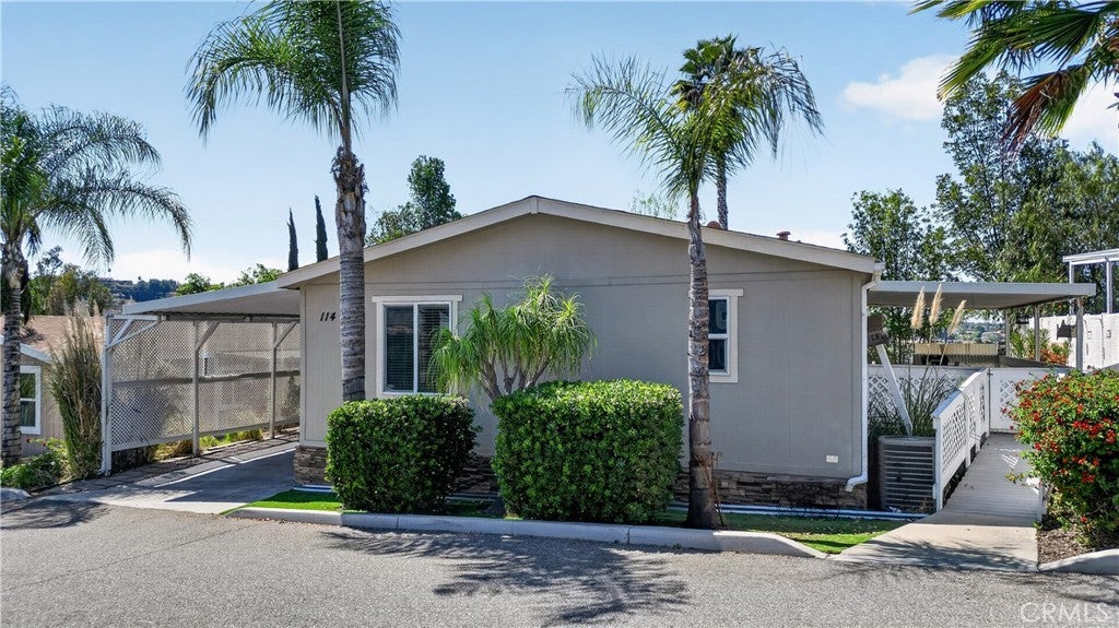 Rancho Caballero is one of the most desirable manufactured home communities in Riverside, and this is one of the newer units in the park — sitting in a prime spot that backs directly up to Mockingbird Canyon. That means no rear neighbors, open sky, and canyon and hill views that you just don't find on most lots in here. Inside, the open floor plan with vaulted ceilings and wood laminate flooring feels comfortable and well-kept. The kitchen is the highlight — dark cabinetry, granite-style countertops, center island, stainless appliances, and a custom track light fixture. Bedrooms are a good size, bathrooms are clean and consistent with the finishes throughout, and the indoor laundry room is a practical bonus. With a large covered deck, storage shed, separate workshop, and a huge carport, this unit has so much to offer! This is the kind of home and community that works well for a wide range of buyers: first-time homeowners looking for an affordable entry point in Riverside, families who want a tight-knit neighborhood with amenities, or anyone who wants a low-maintenance lifestyle without sacrificing comfort. Rancho Caballero offers a lap pool, tennis and pickleball courts, and a full clubhouse — it's an active, well-run park with a real sense of community. This home is priced to sell and won't last long. Don't wait to come check it out!