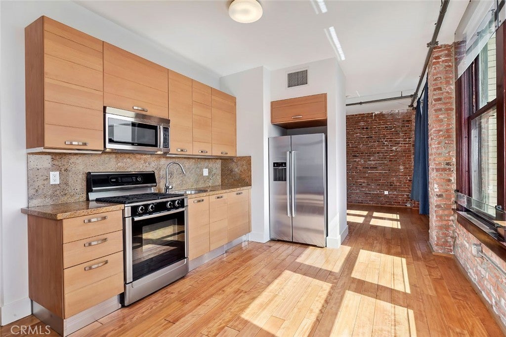Located on one of the most vibrant streets in downtown, this 1 Bedroom, 1 Bath Loft is approximately 845 square feet. The Rowan has been designated a Mills Act Building which rewards owners with a large property tax savings. This Historic Core building was meticulously converted into innovative, urban-style living spaces showcased by the original exposed brick walls, large mahogany trimmed windows, and high ceilings. This loft offers a gourmet kitchen, a separate bedroom area and bath featuring Scavolini cabinetry, Bosch appliances, granite counter tops, TOTO bathroom fixtures and new LVP flooring. . Shared amenities include 24-hour private security, a residence lounge with kitchenette, a private garden and barbeque area, and outdoor seating with hot and cold spas. Minutes away from Metro-Red Line (Pershing Square) and easy access to Fwy: 110, 10, 101 & 5. The loft advertised is a morning sun, east facing, corner, 1 bedroom, 1 bathroom. Approximately 845 sq ft living space. Parking is available at an extra cost.