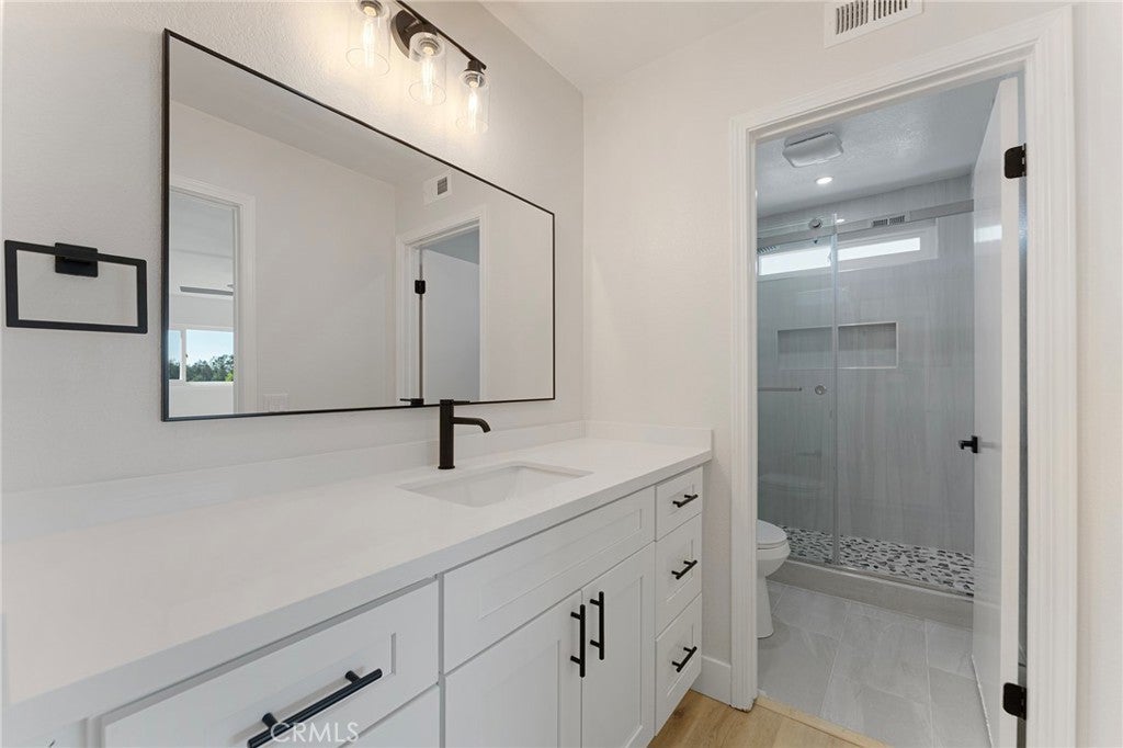 Beautifully renovated 4-bedroom, 2.5-bath home nestled in the highly sought-after North San Bernardino community. This turnkey residence showcases a stunning, fully remodeled kitchen featuring sleek quartz countertops, stainless steel appliances, and rich dark cabinetry—perfect for both everyday living and entertaining. Thoughtfully upgraded throughout, the home boasts modernized bathrooms with stylish finishes, premium wood flooring, new energy-efficient windows, and fresh interior and exterior paint. Comfort is ensured year-round with central HVAC. Step outside to a low-maintenance yard ideal for relaxing or hosting, along with the convenience of an attached two-car garage. Residents enjoy access to well-maintained community amenities, including a sparkling pool, picnic areas, and beautifully landscaped grounds. Ideally located near Cal State San Bernardino, major freeways, parks, and a variety of shopping and dining options, this home offers the perfect blend of comfort, style, and convenience. Move-in ready and waiting for you to make it your own!