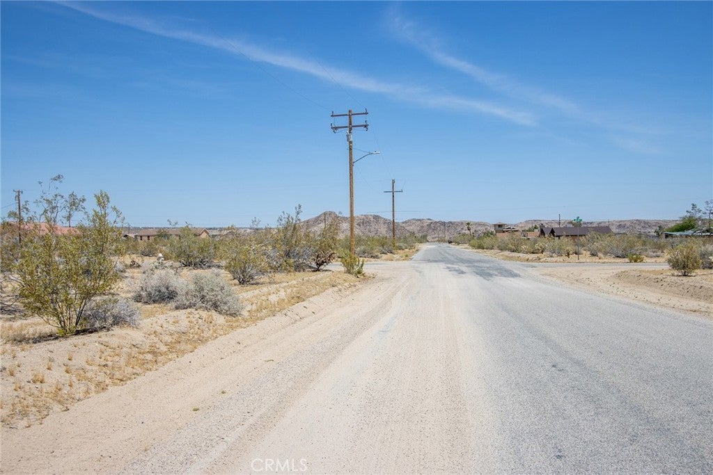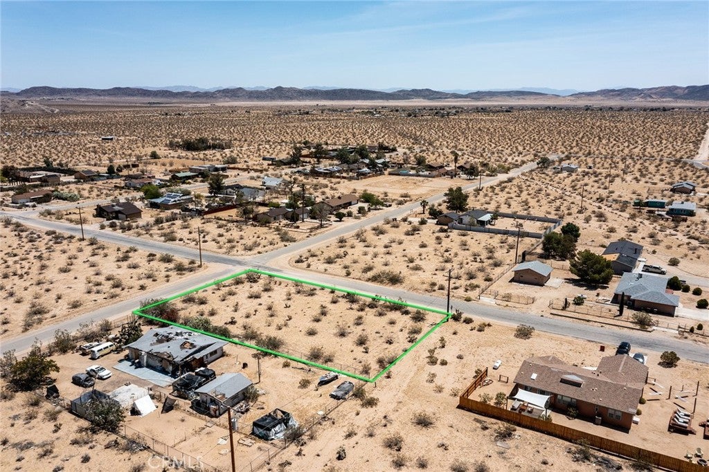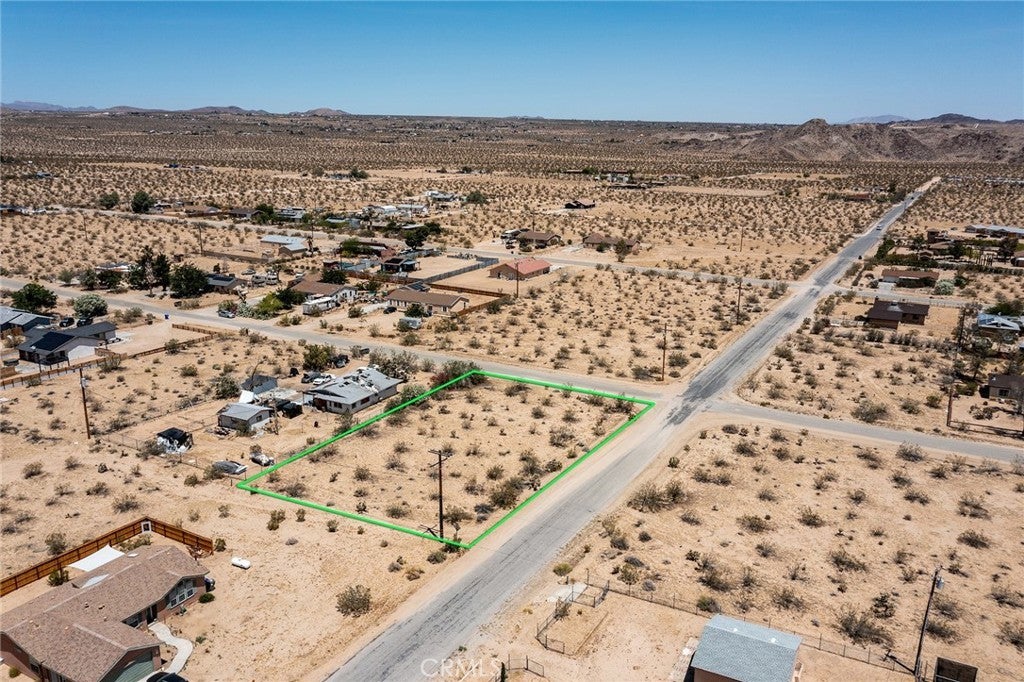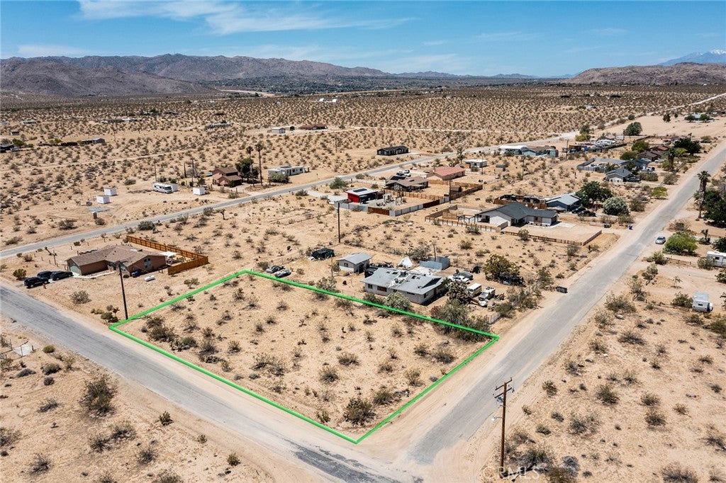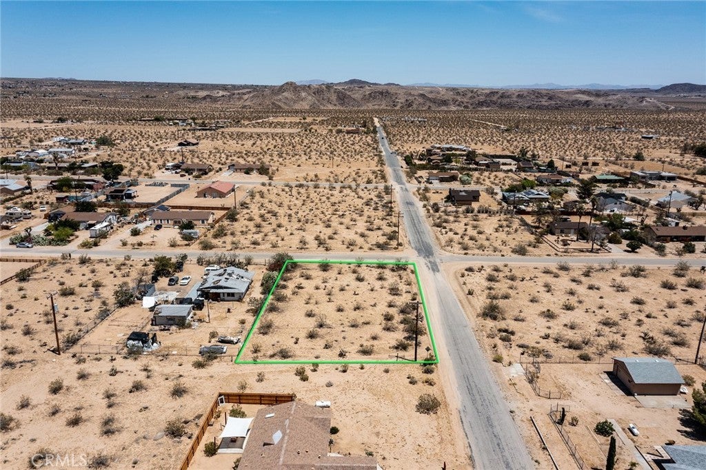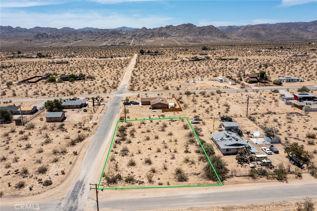 Excellent lot in established neighborhood in North Joshua Tree, with water mains in the road and electrical lines nearby for utilities. Located off of Sunfair Road, with access to wilderness hikes of motorsports on the dry lakebed. Views of the mountains in Joshua Tree National Park to the south. Only minutes to hospital and a short distance further to downtown. Parcel is just under one-half acre, allowing for several building sites and a large yard. Note: Green lines demarcating boundaries in pictures are approximate; property has not been surveyed. APN: 0605-071-11