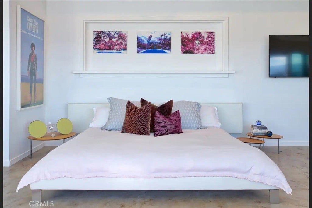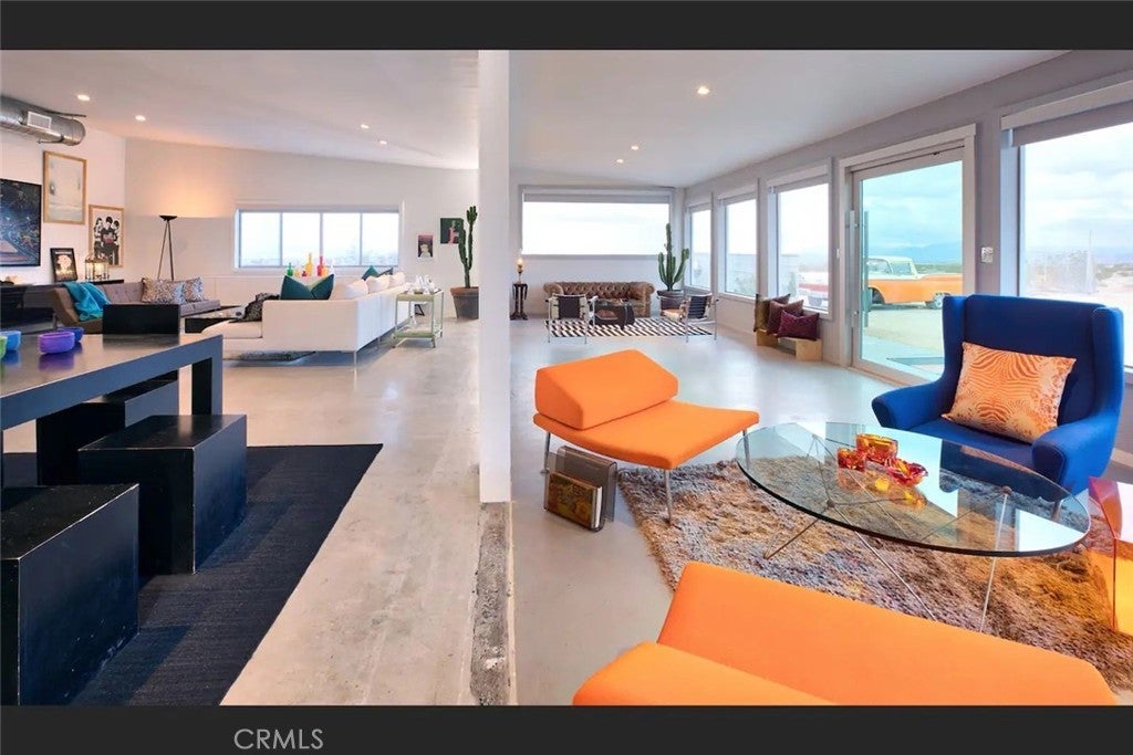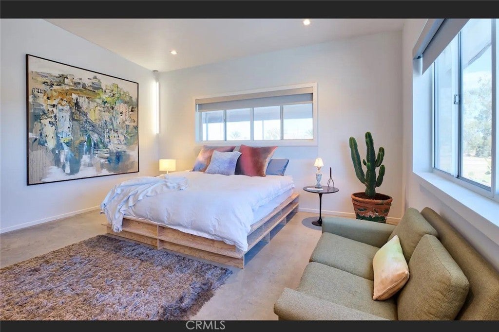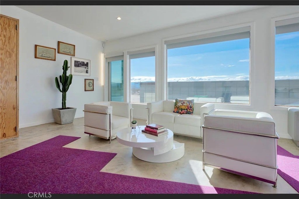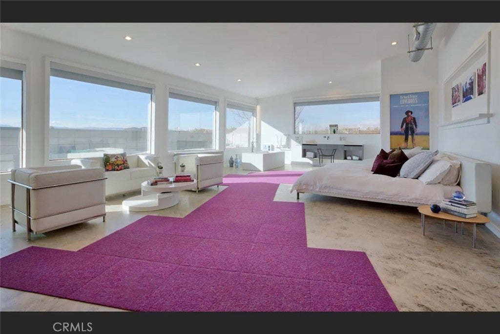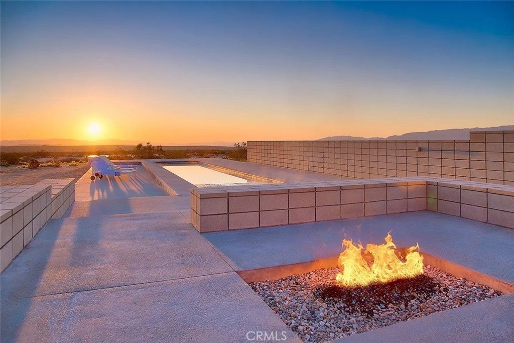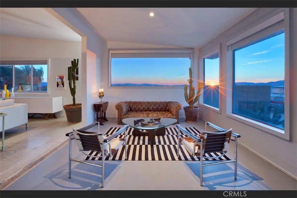SKY RANCH SONORA: North Joshua Tree’s most sublime residence. Designed by renowned executive producer and visionary Chris Hanley, whose body-of-work over the last three decades has left an indelible imprint on modern culture – American Psycho & Spring Breakers to name two – in much the same manner that his more recent architectural visions in Joshua Tree have forever altered the Mojave Desert landscape. From The Invisible House to Sky Ranch Sonora and beyond emerge a modern urban design melding into the vast surrounding wilderness to create an unparalleled experience. Presently a permitted, high-grossing, year-round vacation rental, catering to the entertainment industry, the property can also be used as a private estate spread over 5 acres and fully-fenced for security. To the east stands government-owned land providing an additional privacy barrier. Custom pool, spa and sunbathing retreat positioned to gaze across undisturbed desert providing a true year-round indoor/outdoor environment. Wrap around patio perfect for yoga or retreats. Large enclosed private porch on the northside can be used variously as either office headquarters, a winter yoga room or an art, music or writing studio. Turnkey, fully-furnished, including a large collection of collectable original artwork featuring many films and more. In addition, the home is finished with state-of-the-art appliances, including a Nobilia/Leitch German kitchen, complete with Miele cooktop/oven and Bosch refrigerator and dishwasher. Bathrooms feature Duravit. Multi-zone Sonos audio throughout home and outdoors. Tall ceilings and open space lend to the serene interior flow. New solar system for efficient energy usage. Rare sprawling desert compound can accommodate family, guests or entourage. Professionally managed with multiple possible income streams; management can remain in place to facilitate immediate income. One of Joshua Tree’s most desired estates that has remained hidden from the mainstream now available for private viewings.
