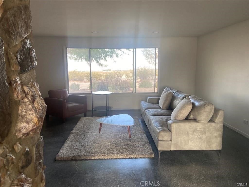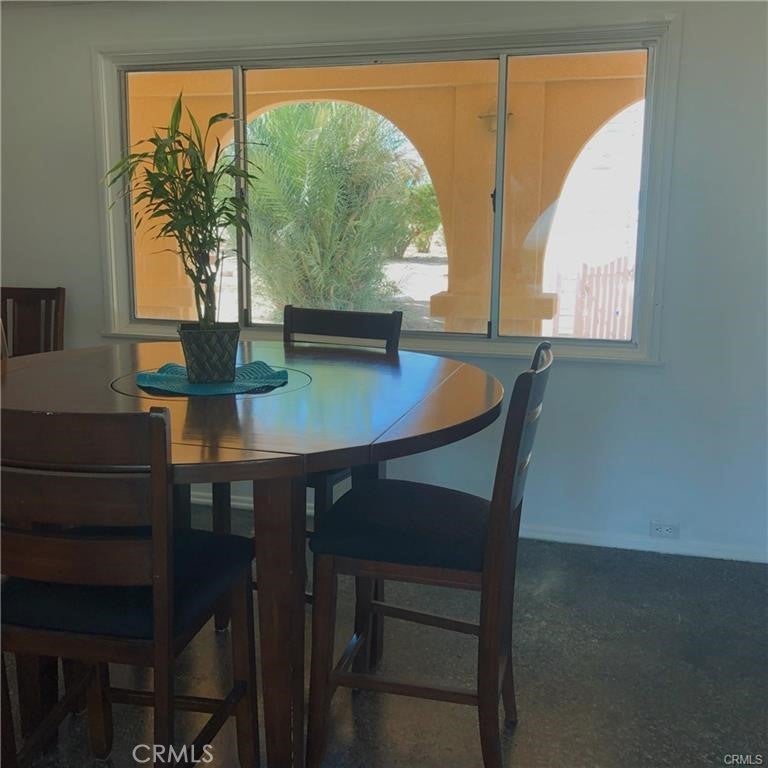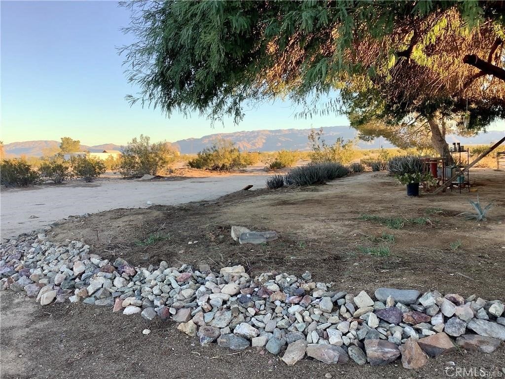 This charming Mediterranean style home offering value, space and classic style with warmth that feels like home. The 1692 sq ft boasts a real local rock fireplace in the living room as well as a smaller red real brick FP in the dining room. The home looks fresh and new when you first walk in with its entire interior receiving new smooth wall texture and paint, all new outlets, switches GFIs, recessed lighting and fixtures. The floors throughout the house are custom stained and sealed concrete. The one bathroom inside the home is very large and newly remolded with tiled walk-in shower and the new tiled tub surround. When guests arrive you also have the oversized 2 car garage with a bathroom with very large shower and small bedroom/laundry with a door to the back yard. The garage is large enough to set up a full 2 bedroom apartment complete with kitchen and living space with more nooks for a fridge, stove, storage as well as two long counter’s for work space and still has a carport for your cars. There is an outdoor stairway leading to a roof top deck with unobstructed views as far as you can see during the day and twinkly lights of the Marine base at night, but the real show stopper is the stary nights. Fully fenced back yard also includes a large spa, ocotillo, palm and fruit trees, and still enough room to add a swimming pool and outdoor bath with shower and more. This property offers great income opportunities for long term and no cap limitations on short term rentals since it is a county parcel. it also is on city water and great exposure for solar panels. This home does not know its age however, because though started build in 1954 it started out as a cabin in the space where the dining room is. It was a labor of love that evolved and grew over years by the owner/builder and improved until the house complete, 1989 garage was then built. There is way too much to list so you just need to come see it for yourself. Very private and rural setting, yet only 10 minutes to town or base. Closing items and repairs including septic certification are complete, for a quick close for next buyer. Seller is a licensed real estate agent.