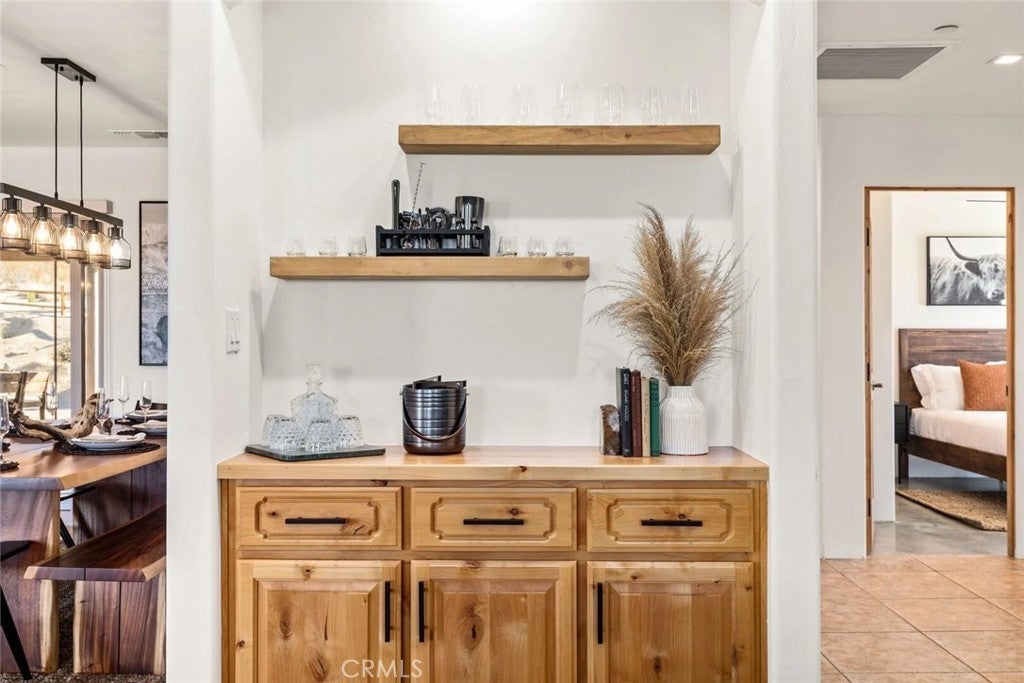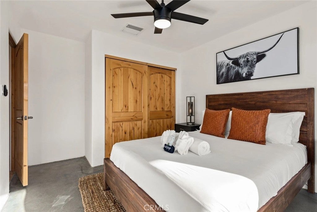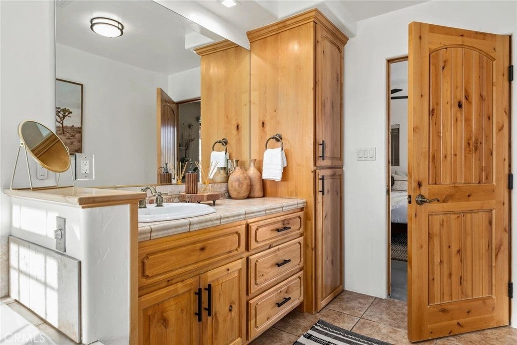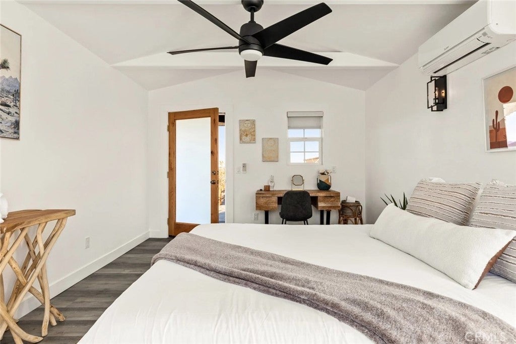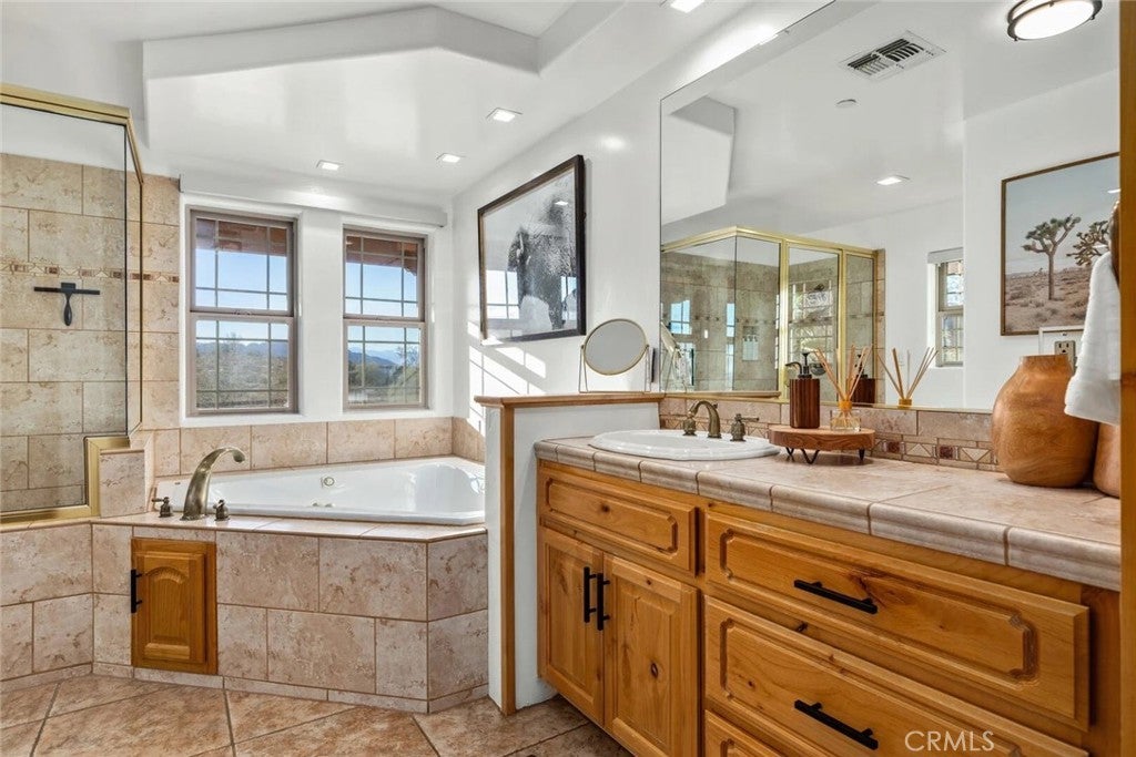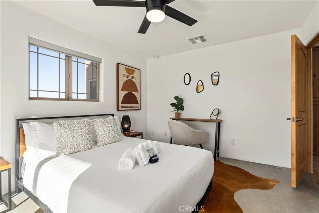 CASA MILLA: Tucked up near Joshua Tree National Park, this splendid property offers wilderness hikes from the backdoor and views of nearby boulder mountains from the back porch. Santa Fe style estate features panoramic views of the Park to the south, sweeping views of the ancient dry lakebed below to the north, and breathtaking sunsets over the mountains of Big Bear to the west. Spread out over 3 bedrooms, including a primary suite offers an ensuite bath, open living areas, in addition to a workspace, and private outdoor access. Active furnished, turnkey Airbnb. Management in place. Exterior includes a spa, firepit, BBQ, outdoor shower and two outdoor bathrooms with a double vanity, set against sprawling desert landscaped grounds. Ideal for large families, entourage, or guests, the home also features a large game room (pool table, TV and oversized games), as well as ample seating for indoor/outdoor dining. For those looking for a workcation, you'll find 3 bedrooms perfectly outfitted with desks/work spaces. Located in the premier South Joshua Tree area and only minutes to downtown Joshua Tree. Access to Interstate-10 leading to LA and Palm Springs International Airport.