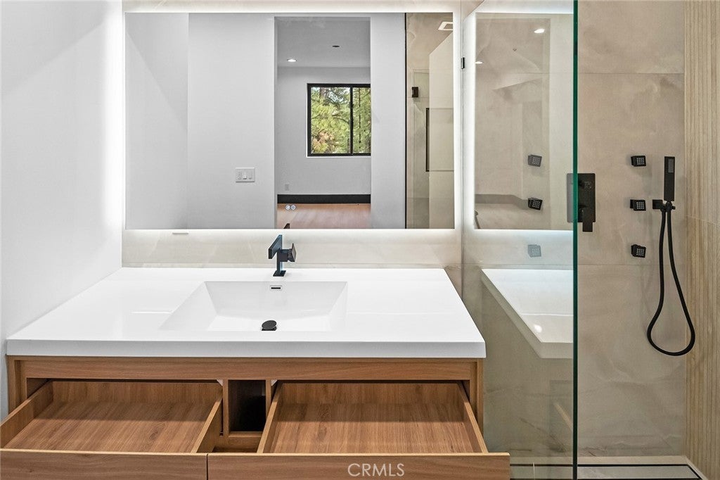 Beautiful New construction to be completed October 2024. This Modern home has 4 bedrooms, 3 bathrooms. Amenities include wall to wall bathroom tiles, smart toilets, bluetooth capable bathroom fans, floating vanities, extra large backlit mirrors, large minimalistic glass doors for the extra large showers, waterfall countertops in the Kitchen, modern appliances, dedicated coffee bar area & many more.