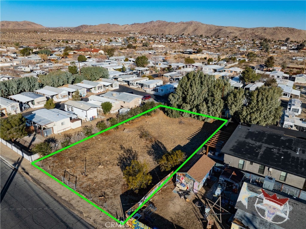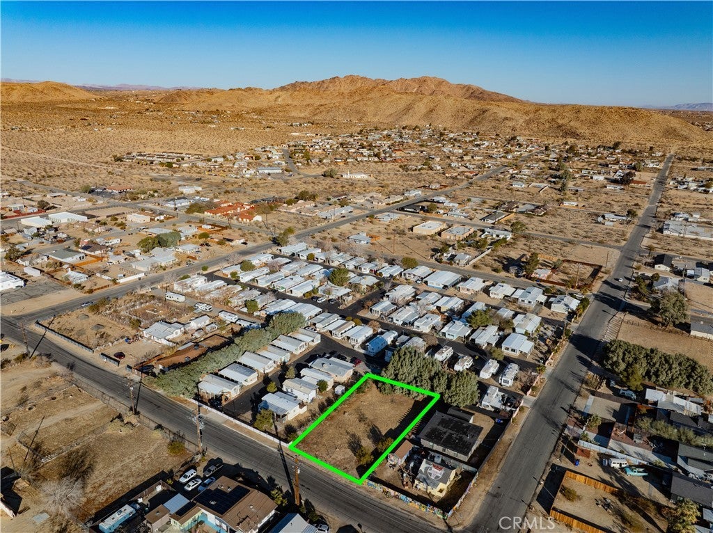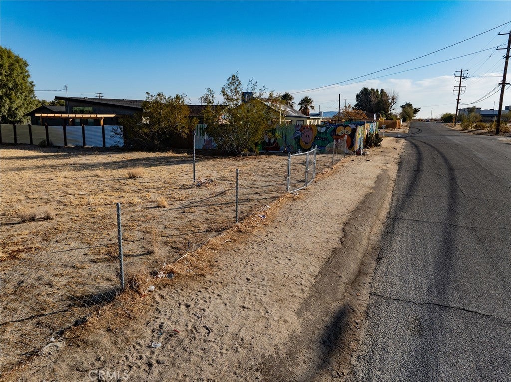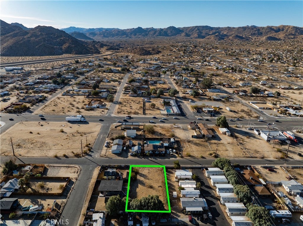 COMMERCIAL-ZONED: Per Fidelity Property Profile, this parcel is zoned commercial (buyer to check), among the most centrally located commercial parcel in town presently for sale. No known flood issues. Established area, near the new Dollar General. Fully-fenced. Buyer to investigate uses approved by County. For those searching for rarely offered and reasonably price commercial land in downtown Joshua Tree without any known flood issues and adjacent to utilities (water mains and electrical lines) on a paved road, only one block of Highway 62, this is your lot! NOTE: Green lines demarcating boundaries in pictures are approximate, property has not been surveyed; street address is not official – do not use address or google maps GPS to locate property. To find property, please locate with APN: 0603-213-07