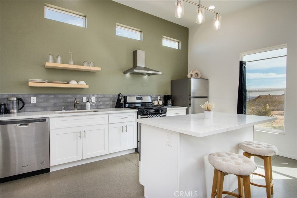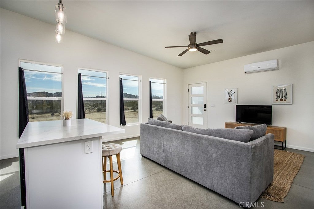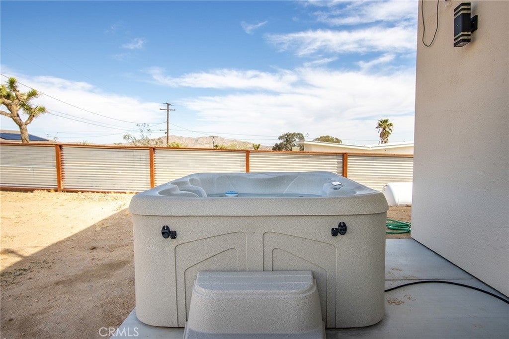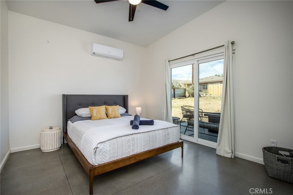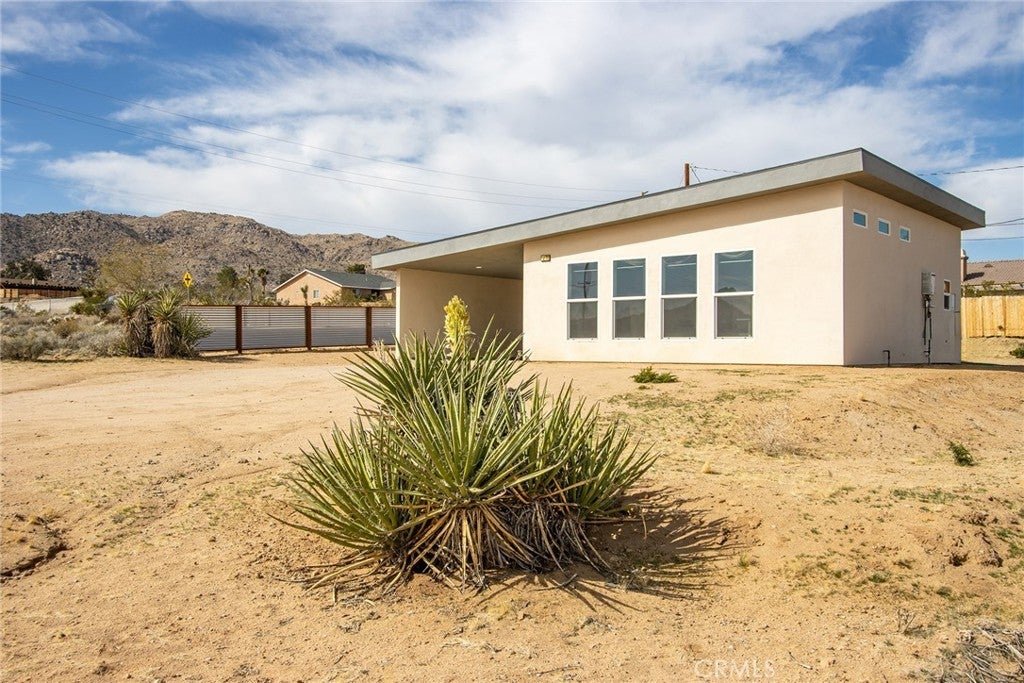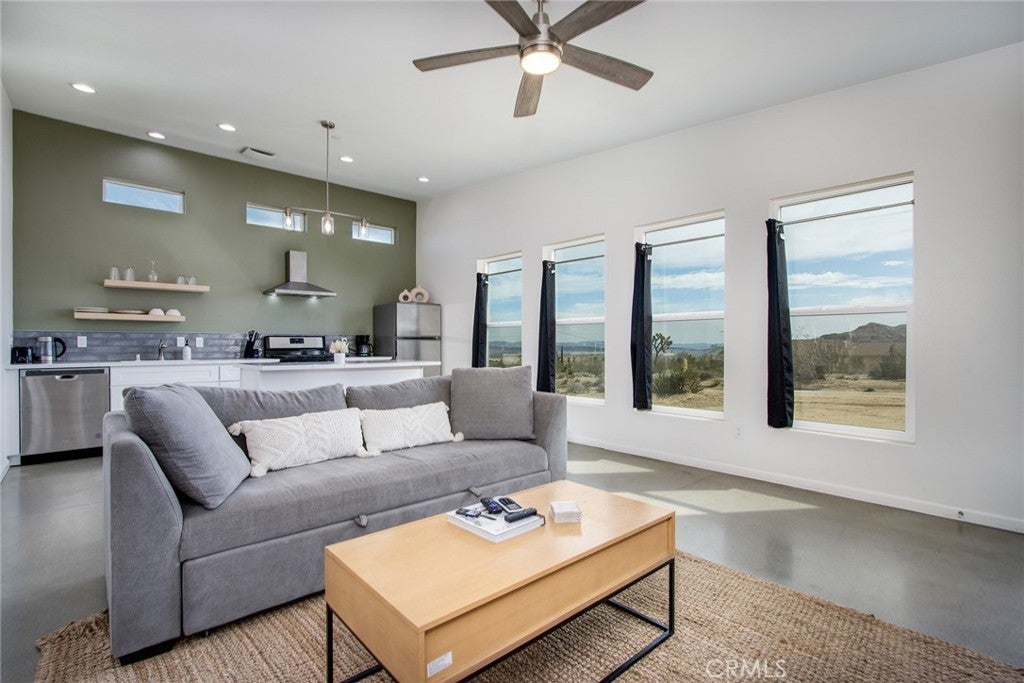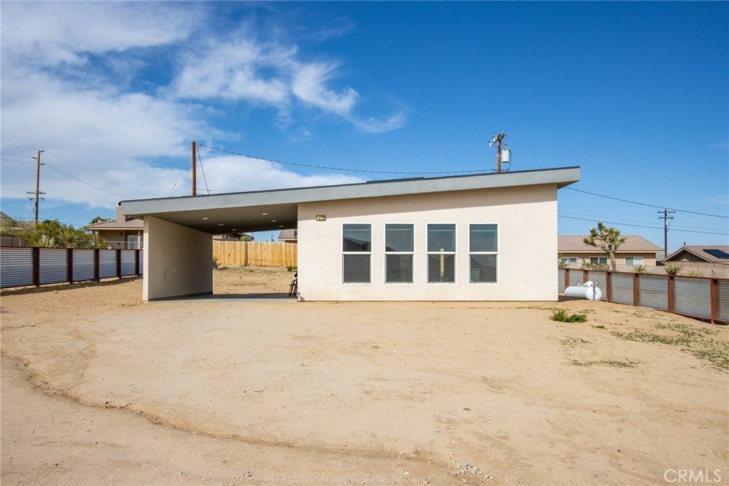 SEE THE VIDEO ABOVE! REDUCED TO SELL! A MUST SEE !! Welcome to this!*PERMITTED ESTABLISHED TURN KEY AIRBNB*BUILT IN 2022! Watch the sun rise and set from Joshua Tree National Park, sitting on your property. Modern Design home with an open-concept living space! Its modern amenities make this property ideal for those looking for additional income, a second home, or a full-time residence. It is a rare gem in JOSHUA TREE for the price! The property features an open floor plan, high-end appliances, ample natural light, and convenient entertainment spaces. The property is situated on a large, fenced lot with a stunning desert landscape and amenities, offering a serene, peaceful, and secluded environment. Also, R.V., ACCESS, PARKING, AND FENCING. This unique, modern home, as cute as a button, offers one bedroom and one bathroom, featuring high ceilings, a neutral color scheme, and abundant views from all windows. Indoor laundry! The kitchen is a chef's dream, equipped with tall white cabinets, granite countertops, and stainless steel appliances. And an area with a private spa fire pit, and a hammock where you can relax, breathe, and stargaze! Huge carport and Solar!. Enjoy a private oasis right in your beautiful backyard. Upon entering this bright and inviting space, an open floor plan will greet you, and the living room is a cozy retreat. These large view windows bathe the room in natural light. BEAUTIFUL modern kitchen. The home has ductless air conditioning and ceiling fans. This backyard is a true vacation retreat, designed for ultimate relaxation and entertainment. Ideally, just minutes from Joshua Tree National Park and Pioneertown for those seeking a peaceful getaway or a wise investment. Located just about 35 minutes from Palm Springs, this home enjoys a cooler, more comfortable climate due to its higher elevation while providing convenient access to the luxury amenities, events, and shopping in Palm Springs. It's the perfect balance of desert living and city convenience, making it attractive to buyers from major cities! It's positioned perfectly for those seeking a peaceful getaway or a wise investment, just minutes from Joshua Tree National Park and Pioneertown. For adventure seekers, Black Rock Canyon and Joshua Tree National Park offer hiking, rock climbing, and a breathtaking stargazing experience. Imagine the awe-inspiring beauty of Big Bear Mountain's breathtaking views and the stunning landscapes of Joshua Tree National Park!