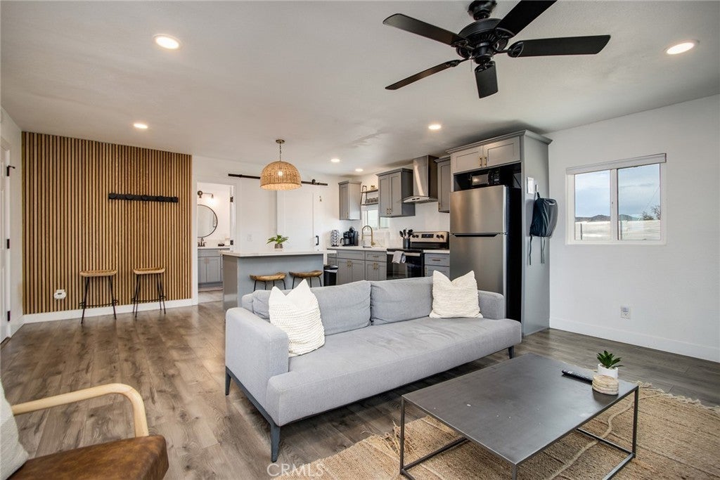 HUGE PRICE REDUCTION: Welcome to Moon Dust: Sharply renovated and well-appointed rural gateway. Surrounded by vast wilderness, this 1-bed 1-bath, fully-furnished, turnkey home is located in Landers, only a short drive to the Joshua Tree National Park. No light pollution for perfect stargazing and dark night skies. Spacious layout despite the modest size and includes a kitchen island, full bathtub, and sliding barn-style doors that work hand-in-hand with an abundance of natural light to make interior spaces livable and lovable. Fully fenced, 2.25-Acre property offers many amenities and opportunities to relax, such as relaxing the evening in the hot tub, lounging in permanent hammocks, sit around the fire pit, while running the BBQ. This property offers the quintessential desert experience— come find out what it feels like under the moonlight today.