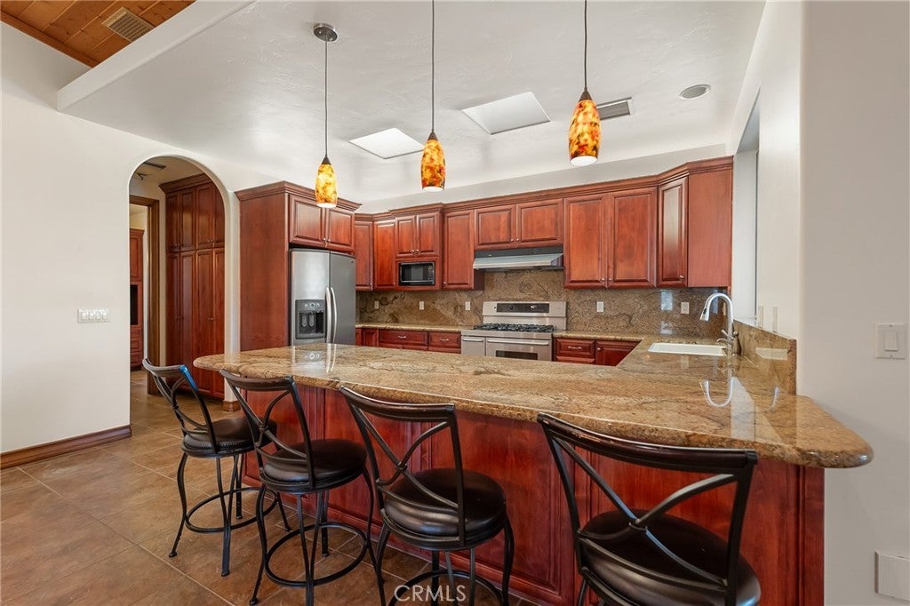 This is one of the most beautiful homes in the Upper Sky Harbor area. It was built by a well-known builder for himself and his family, so he used only the finest quality products. The home has nine-foot ceilings and eight-foot solid wood doors in every entry. All the cabinetry was crafted to his exact specifications. Most of the kitchen cabinets have soft-close and roll-out shelves. Beautiful granite counters are also found here and in all the bathrooms. In the master bath, you will find an extravagant walk-in two-headed shower with shelving and a large bench. There is also a fantastic spa tub to soak in on those stressful days. The open floor plan makes it so inviting for family and friends. There is an office area off the vast living room, and he built it so you could have a fourth bedroom or a private library. You have a split floor plan with the master suite on one side and the other bedrooms on the other. It is set up for a mother-in-law's quarters in one of the bedrooms with its separate entrance and easy access to the kitchen, so as not to disturb the rest of the household. The living room has a beautiful tiled gas fireplace, and surround sound throughout the home and the outside. Speaking of the outside! You have RV parking, water & dump. There is one of the largest outside kitchens and counter spaces I have seen in a while! The backyard is very private, and plenty of room to add a pool. The covered patio is huge and deep to enjoy our desert summer nights. Even the three-car garage is perfect. Come and see!!! You will not be disappointed.
