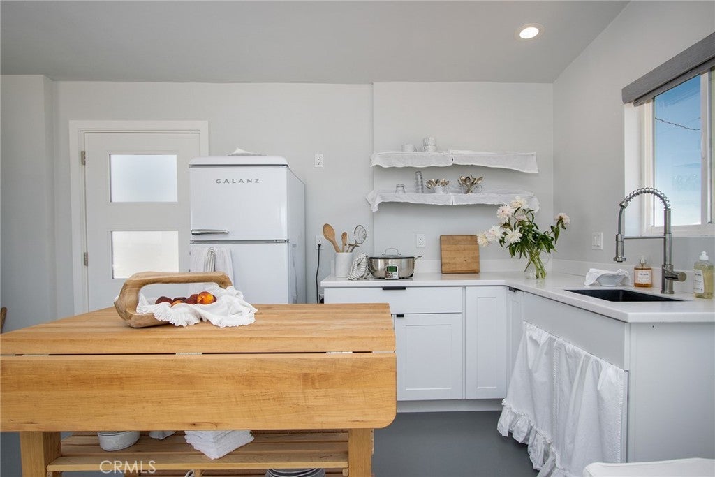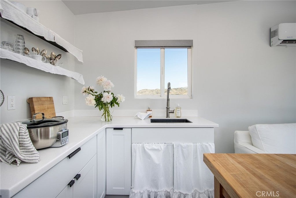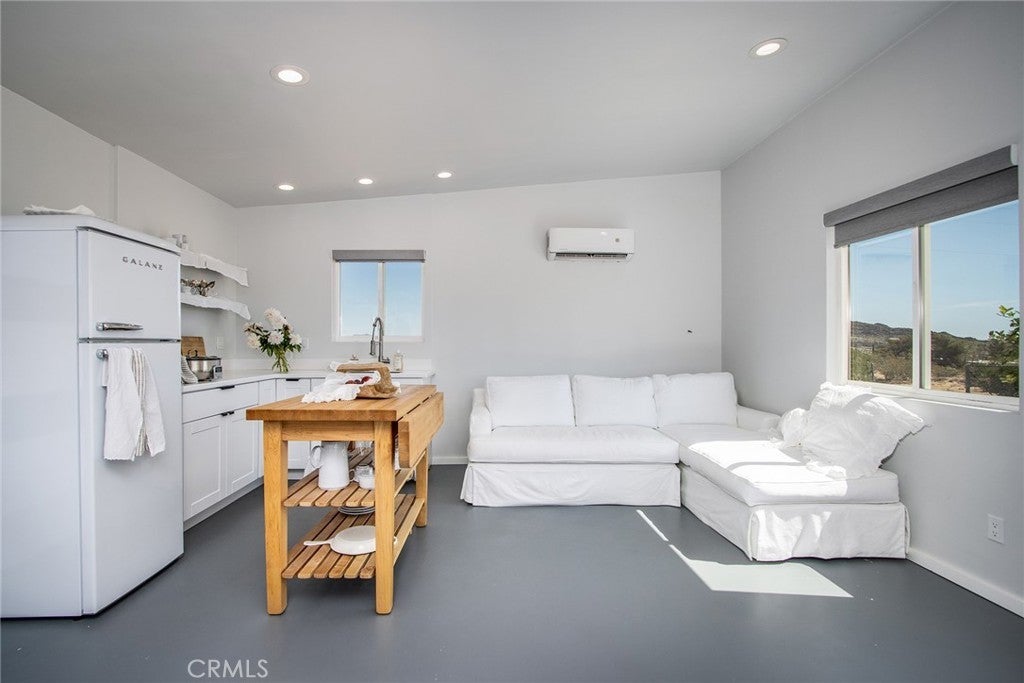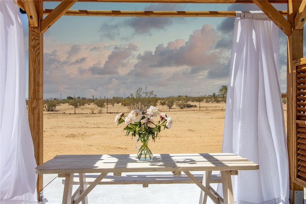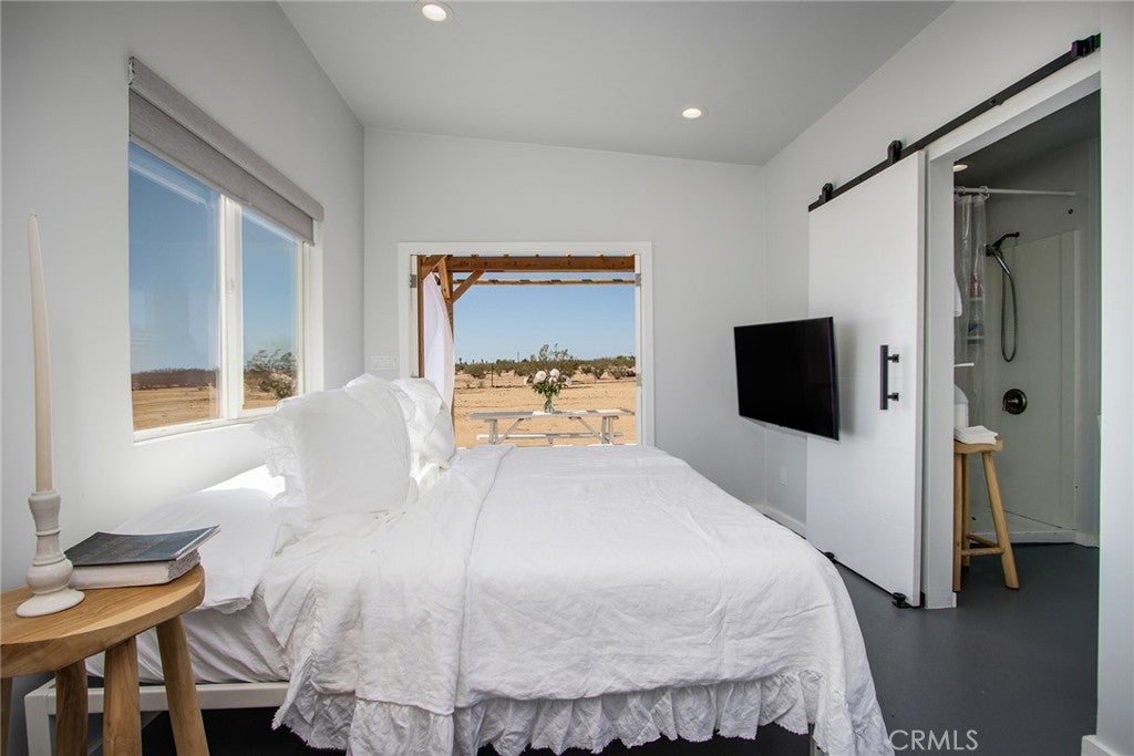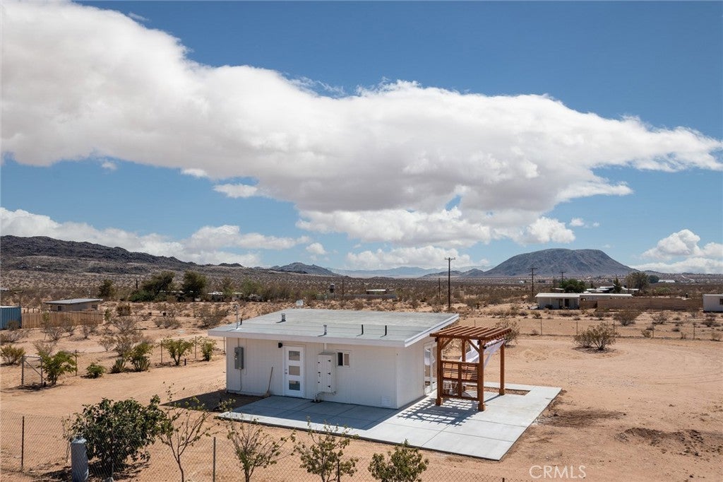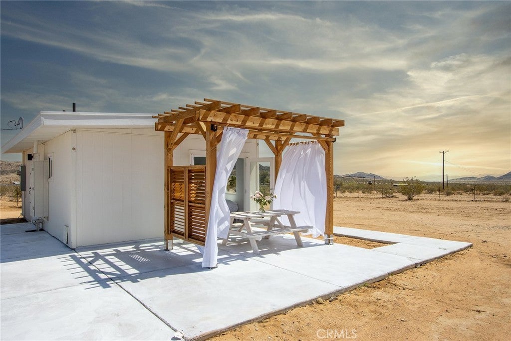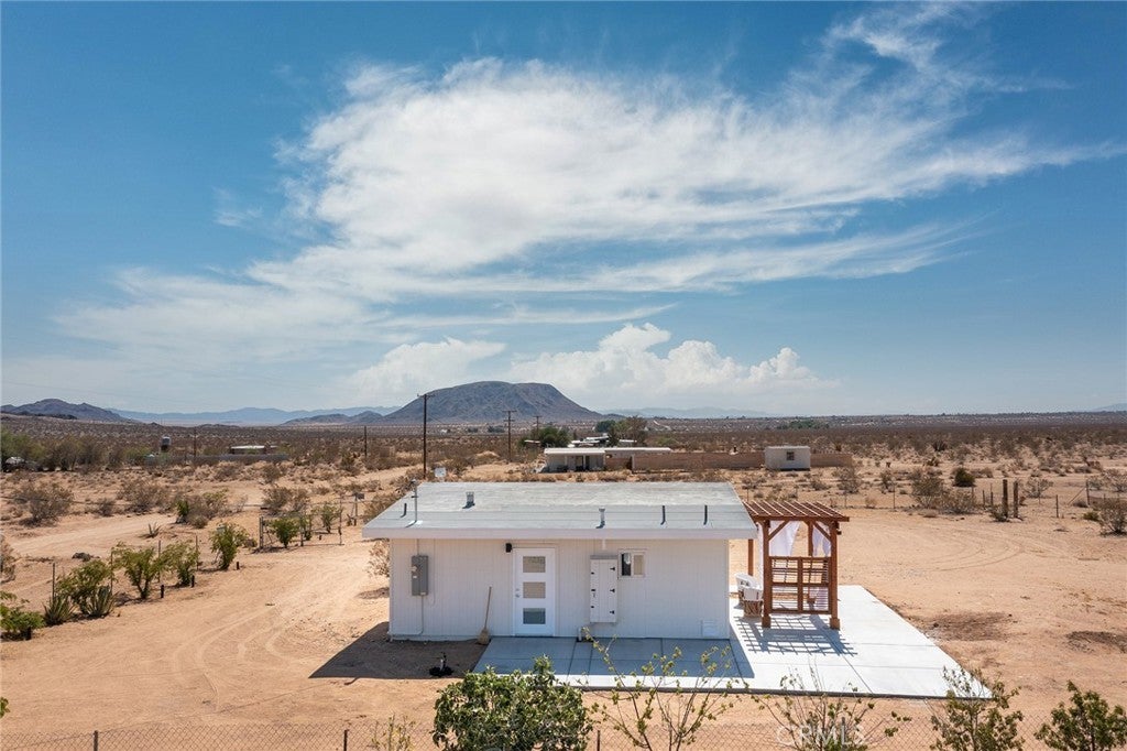 Landers Nexus Homesteader: Beautifully reimagined homesteader cabin – converted from Rec Cabin to SFR, allowing for vacation rental permits and conventional financing. Located at the nexus of Landers, with both the world’s largest freestanding boulder - Giant Rock - and The Integratron only minutes away. A short distance farther, La Copine gourmet restaurant serves up nationally acclaimed cuisine. Sit on the porch sipping coffee, while gazing at iconic Goat Mountain to the east – hike to the top from home after breakfast! Visit Gubler Orchard Nursery nearby, one of the highest-rated growers of orchids. Hang with your furry friends in the FULLY-FENCED yard. Relax in the splendor of this cozily appointed cabin, or sleep outside under the permitted pergola recently built on the concrete porch. Fresh drywall, paint, electric wiring and fixtures, as well as a 200 Amp electric panel. Custom roller window coverings, stackable washer & dryer, retro refrigerator and ductless mini- split AC/Heating. Bathroom fully updated with a modern touch including a walk-in shower, floating sink, over-sized medicine cabinet for storage, closet nook and low flow toilet. Stylized, high-quality modern remodel. Perfect in every way!