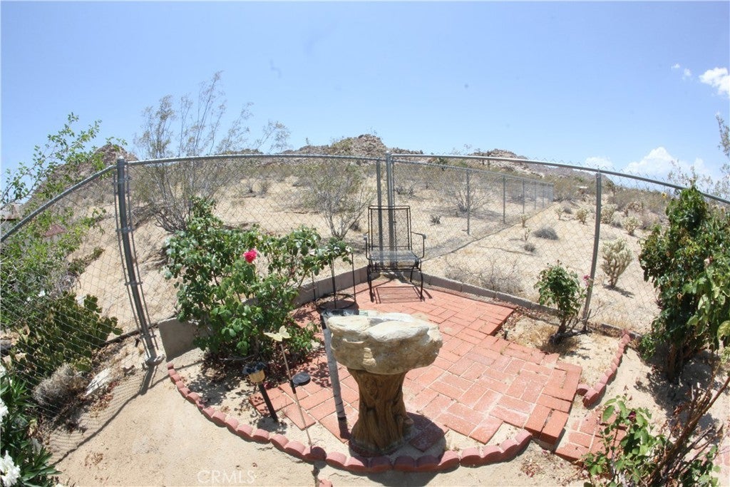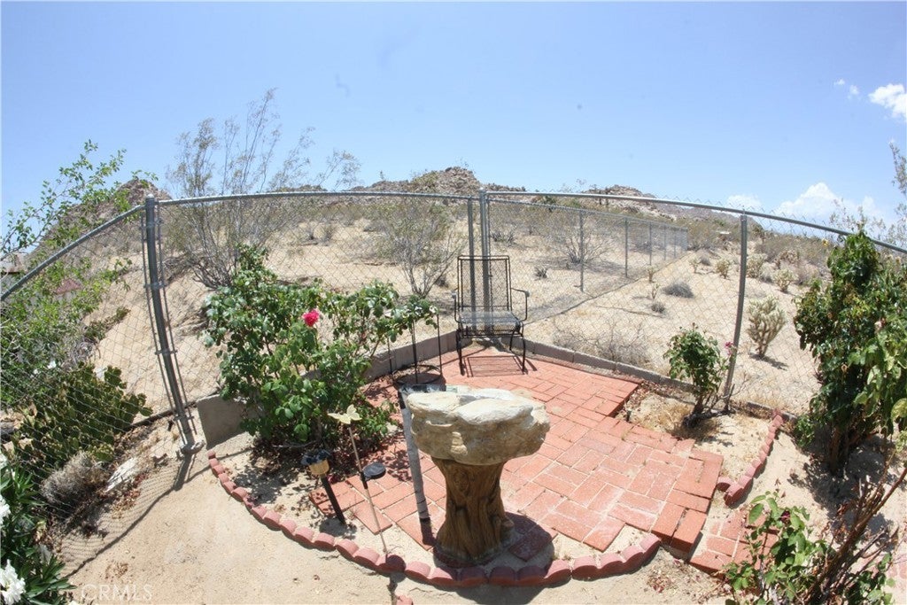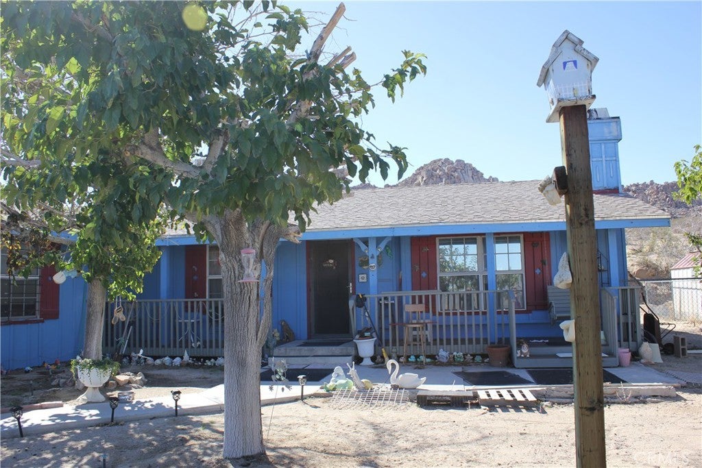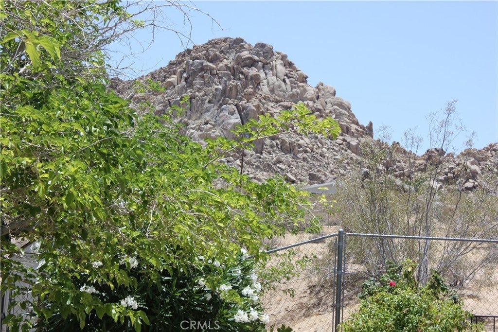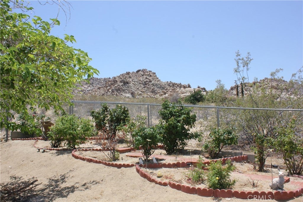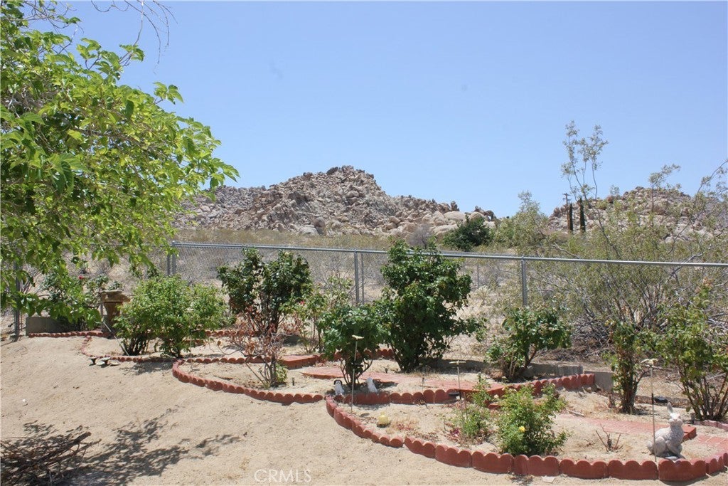 Beautiful home with forever views on 2.3 acres. Has views of the National Park, hills and boulders. Near hiking trail and wilderness areas. Perfect for night sky viewing. This property is all about the views and location. Nestled in the heart of nature, the property boasts an ideal location for outdoor enthusiasts and those who cherish serene landscapes. Whether savoring a sunset on your porch or trekking through nearby trails, this home is perfectly poised to offer uninterrupted moments of joy and discovery. The gentle whisper of the wind through the desert combines with the rugged beauty of the terrain, creating a harmonious balance between adventure and relaxation. A peaceful ambiance, this property is a sanctuary for those seeking tranquility and a connection to nature. The kitchen has a counter for eating. Propane gas supplied cooking and dining area. A large living room with a woodburning fireplace to enjoy and relax. The home offers 3 bedrooms and two baths, one with a sunken tub with separate walk-in shower. It has vaulted ceilings and fans in most room. The blend of comfort and charm, creating a warm and inviting atmosphere that welcomes you home. The separate laundry room, with propane washer and dryer. Hallway linen closet and more storage spaces. There is porch and rose garden sitting areas, cactus and several trees offer afternoon shade. Or you may savor a quiet morning coffee in the rose garden while the sunbathes the landscape in golden hues. Fenced back and side yards. This large property offers its own slice of paradise. The property also includes attached garage, with workshop offering ample storage space for vehicles, outdoor equipment, or hobbies. In addition, the home’s proximity to local amenities ensures convenience without sacrificing its tranquil setting. Whether you’re enjoying a quiet evening under a starlit sky or inviting friends and family for a weekend retreat, this property delivers an unparalleled experience of comfort and nature at its finest. All in beautiful Joshua Tree. Taking of images is limited to preparing appraisal and inspections or reports.