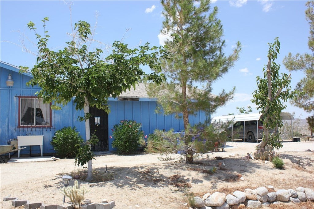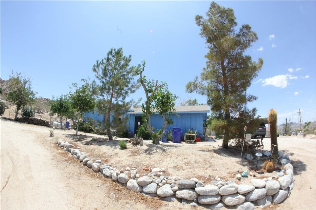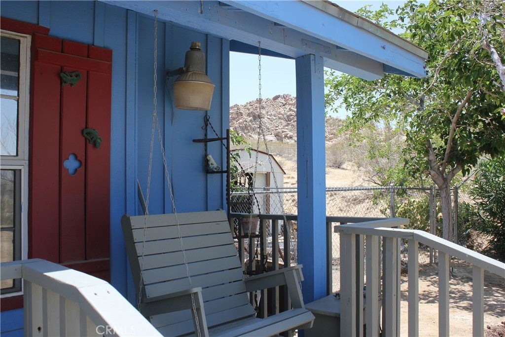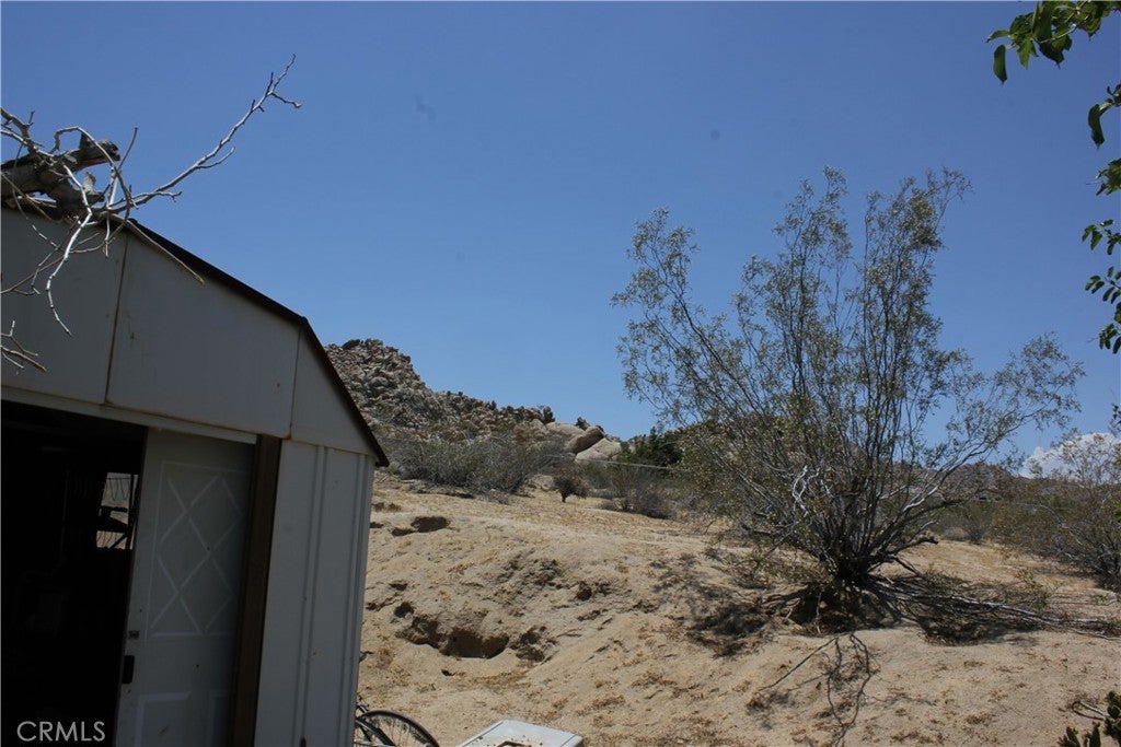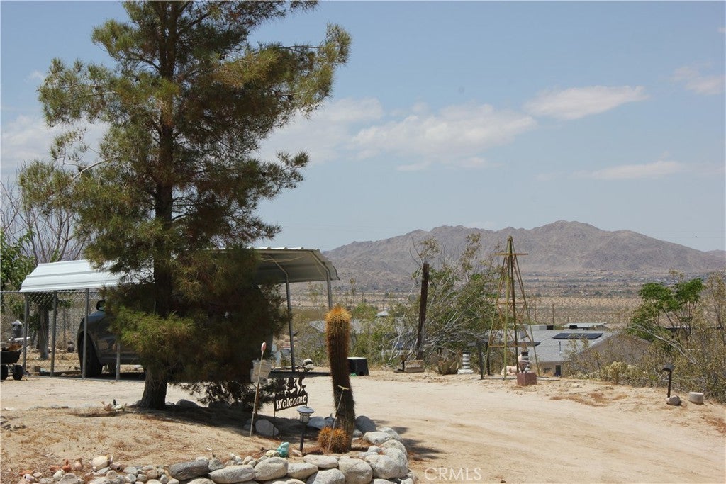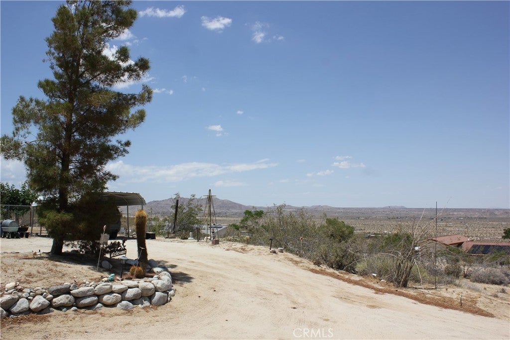 Beautiful home with forever views on 2.3 acres. Has views of the National Park, hills and boulders. Near hiking trail and wilderness areas. Perfect for night sky viewing. This property is all about the views and location. Nestled in the heart of nature, the property boasts an ideal location for outdoor enthusiasts and those who cherish serene landscapes. Whether savoring a sunset on your porch or trekking through nearby trails, this home is perfectly poised to offer uninterrupted moments of joy and discovery. The gentle whisper of the wind through the desert combines with the rugged beauty of the terrain, creating a harmonious balance between adventure and relaxation. A peaceful ambiance, this property is a sanctuary for those seeking tranquility and a connection to nature. The kitchen has a counter for eating. Propane gas supplied cooking and dining area. A large living room with a woodburning fireplace to enjoy and relax. The home offers 3 bedrooms and two baths, one with a sunken tub with separate walk-in shower. It has vaulted ceilings and fans in most room. The blend of comfort and charm, creating a warm and inviting atmosphere that welcomes you home. The separate laundry room, with propane washer and dryer. Hallway linen closet and more storage spaces. There is porch and rose garden sitting areas, cactus and several trees offer afternoon shade. Or you may savor a quiet morning coffee in the rose garden while the sunbathes the landscape in golden hues. Fenced back and side yards. This large property offers its own slice of paradise. The property also includes attached garage, with workshop offering ample storage space for vehicles, outdoor equipment, or hobbies. In addition, the home’s proximity to local amenities ensures convenience without sacrificing its tranquil setting. Whether you’re enjoying a quiet evening under a starlit sky or inviting friends and family for a weekend retreat, this property delivers an unparalleled experience of comfort and nature at its finest. All in beautiful Joshua Tree. Taking of images is limited to preparing appraisal and inspections or reports.