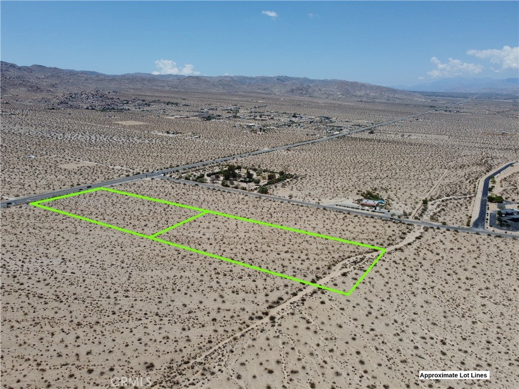 Prime 10 acres with highway frontage on the east side of Joshua Tree. Great investment opportunity. JT/RL-5 Zoning. Close to Copper Mountain Community College. Short drive to popular downtown shops, attractions, and amenities. 15 minutes from the Joshua Tree National Park entrance. Property does not have an assigned address - for listing purposes only. Includes 2 parcels of 5 acres each. APN: 0608-151-01-0000 and 0608-151-04-0000. GPS: (34.1354050, -116.2103497).