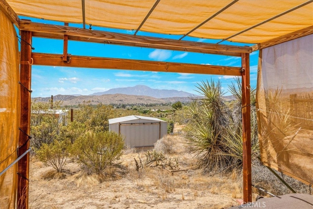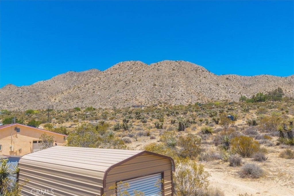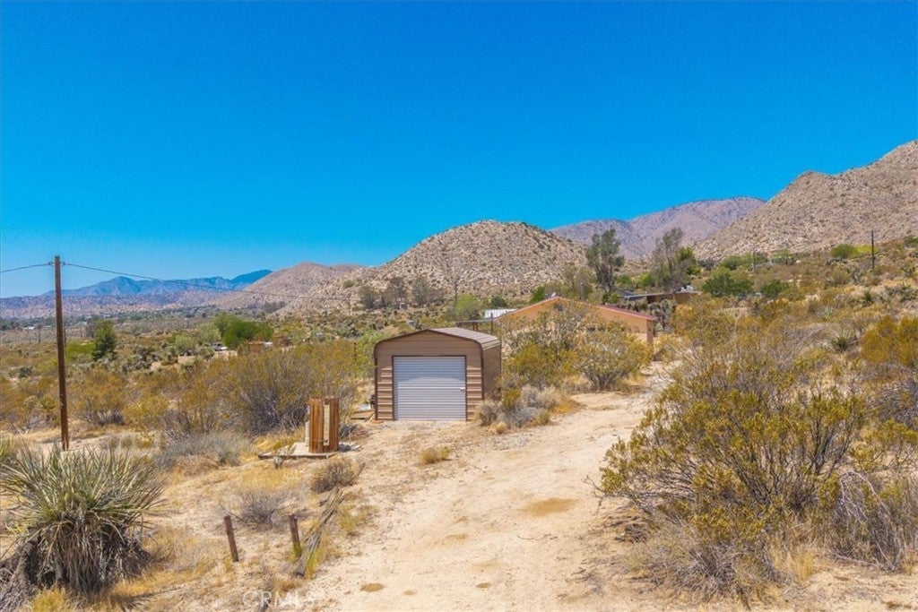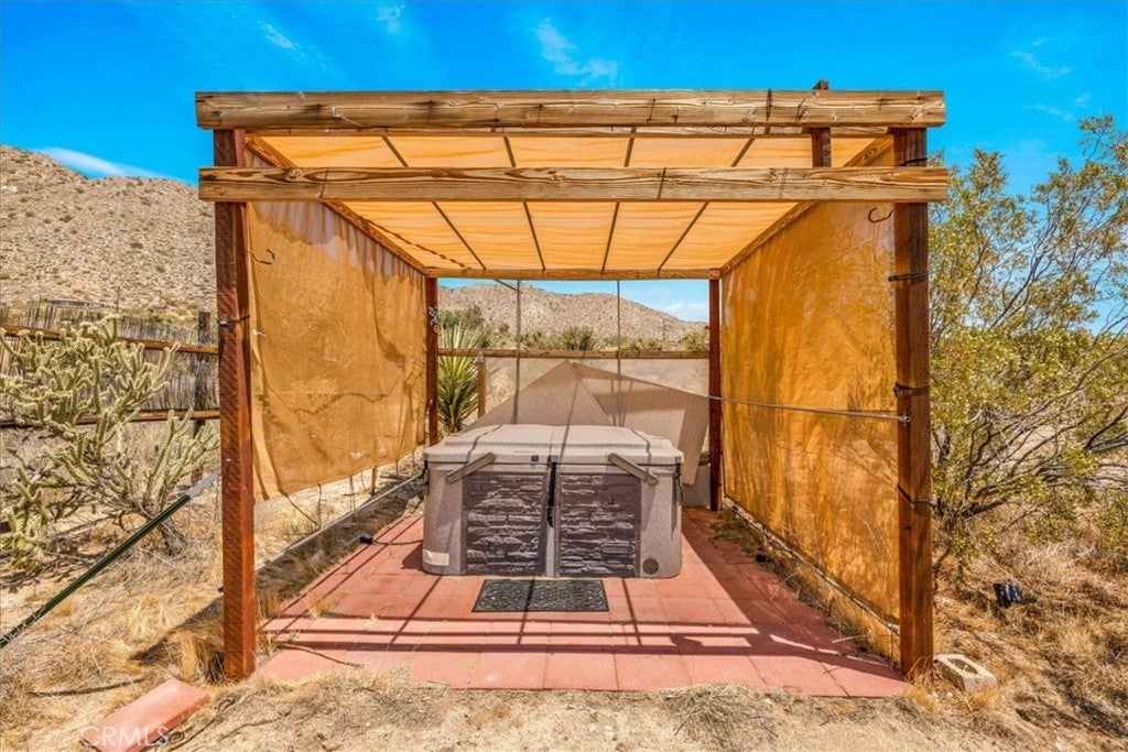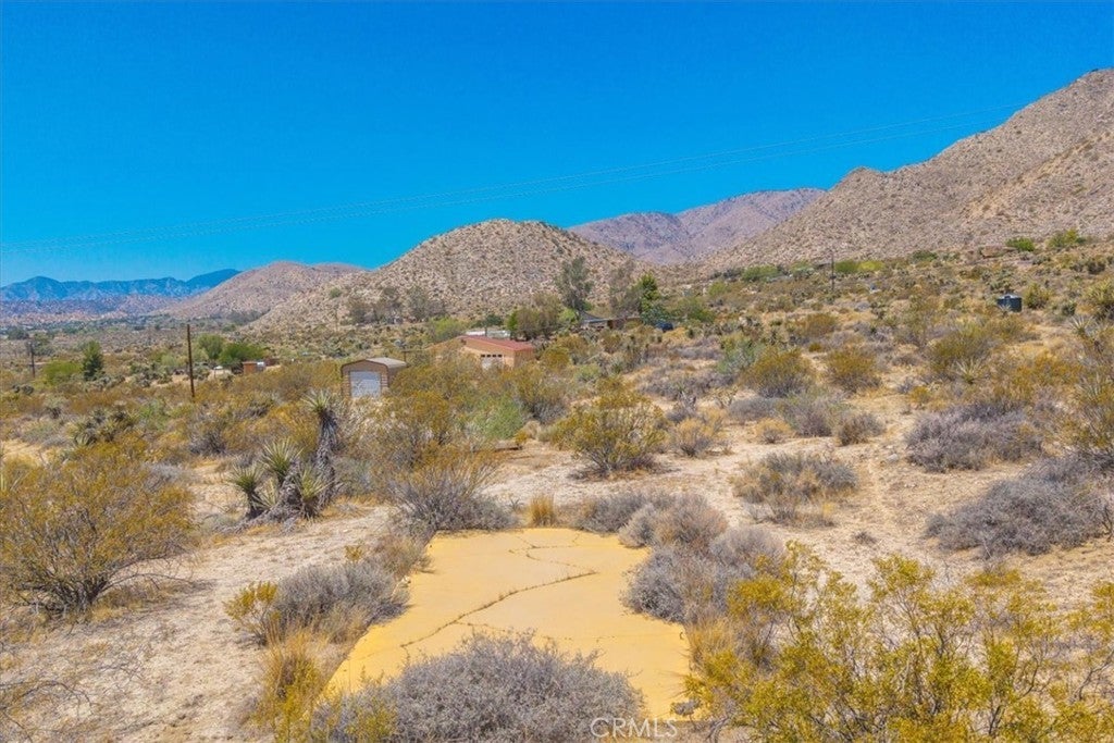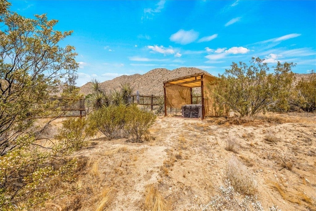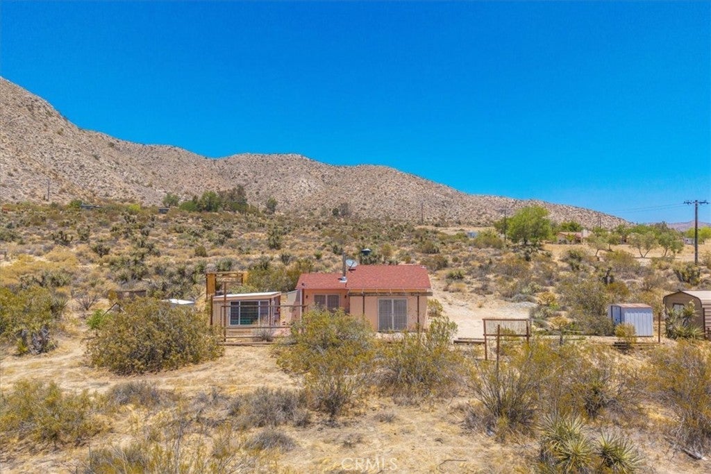 Discover rustic elegance and desert tranquility in this beautifully remodeled and permitted 1-bedroom, 1-bathroom home, originally a classic cabin, now transformed into a stylish retreat. Situated on a little over 7 acres (4.53 acres + additional 2.5-acre parcel), this property offers space, privacy, and unmatched views of the Morongo Valley landscape. Inside, the home features thoughtful upgrades that blend modern comfort with cabin charm with an open-concept layout, including a roll up door that brings the outside in! The main part of the home has stained concrete floors to keep it cool in the summer, and the kitchen has a wood burning stove for extra heat to create a warm and inviting atmosphere. There's also mini split for heat and a/c for even more climate control. Did we mention that it's on its own well??? Installed in 2013, and has just been inspected. The spacious bedroom opens to wide desert skies and serene mornings with access to the south facing patio. Step outside to your private outdoor living area, designed for entertaining or peaceful evenings under the stars. Relax in the hot tub while taking in views of the surrounding hills and open desert—perfect for stargazing or soaking after a long day. If you're looking for a weekend escape, full-time residence, or unique investment property, this one-of-a-kind desert gem offers a rare combination of character, land, and lifestyle. Just minutes from Joshua Tree, Pioneertown, and the Big Morongo Canyon Preserve, and a short drive "down the hill" to Palm Springs and the low desert!