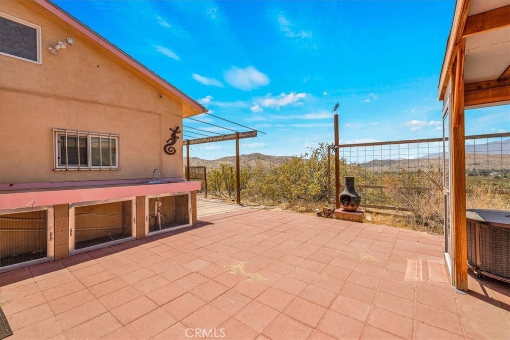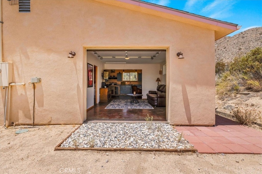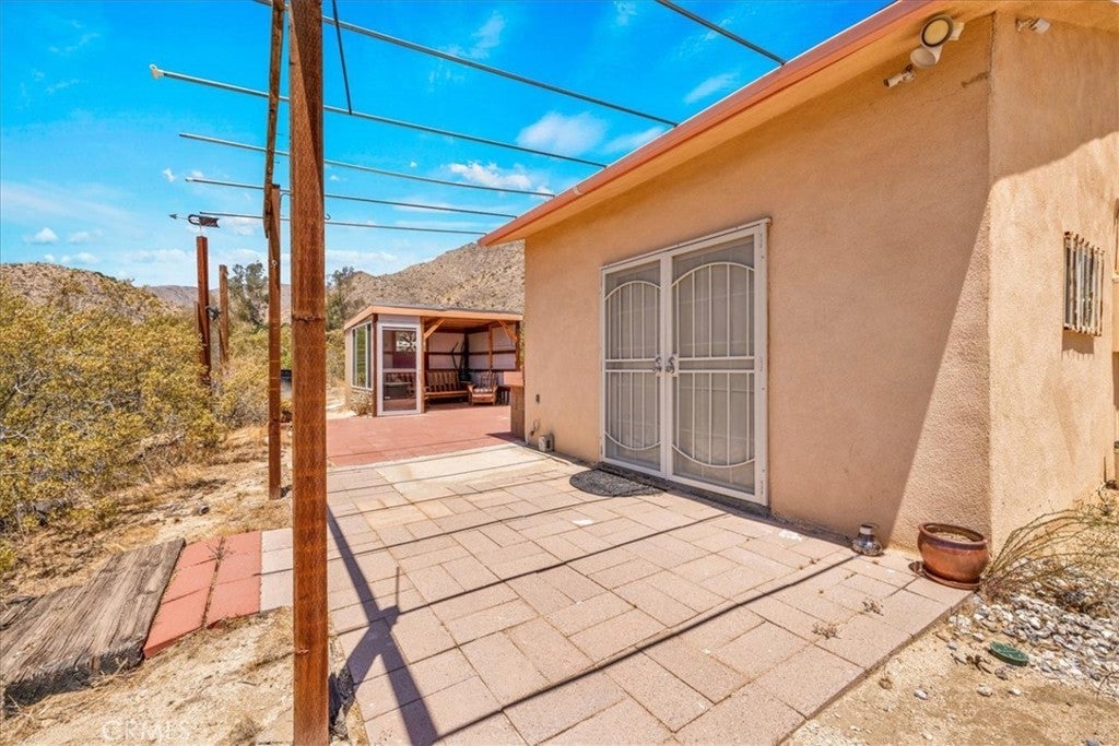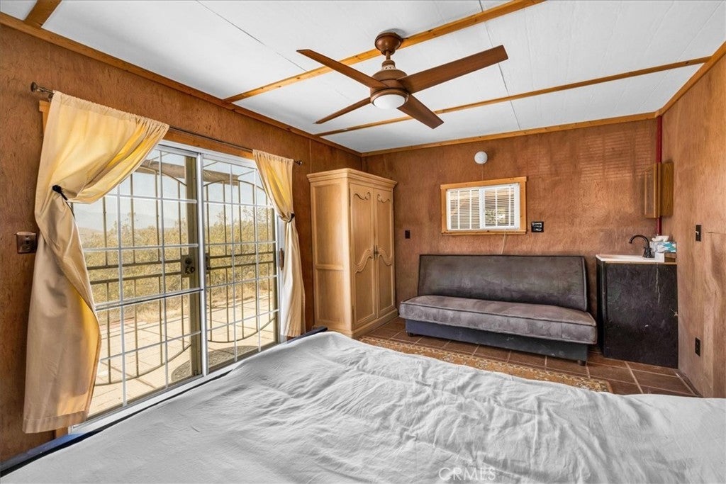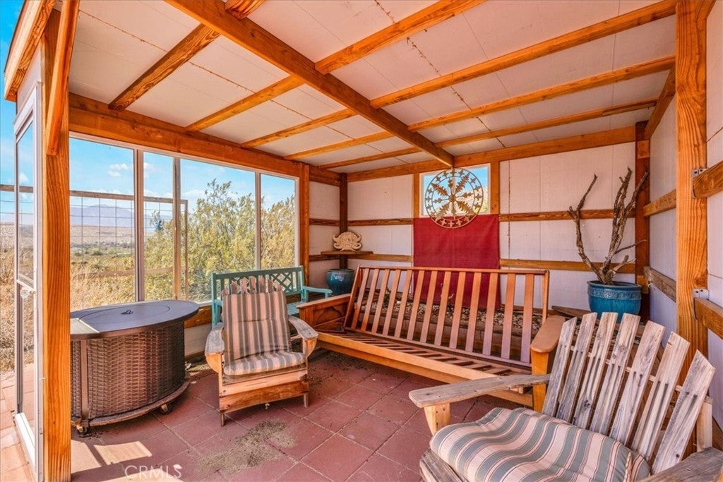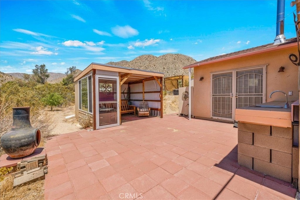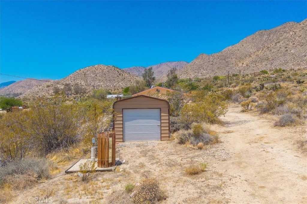 Discover rustic elegance and desert tranquility in this beautifully remodeled and permitted 1-bedroom, 1-bathroom home, originally a classic cabin, now transformed into a stylish retreat. Situated on a little over 7 acres (4.53 acres + additional 2.5-acre parcel), this property offers space, privacy, and unmatched views of the Morongo Valley landscape. Inside, the home features thoughtful upgrades that blend modern comfort with cabin charm with an open-concept layout, including a roll up door that brings the outside in! The main part of the home has stained concrete floors to keep it cool in the summer, and the kitchen has a wood burning stove for extra heat to create a warm and inviting atmosphere. There's also mini split for heat and a/c for even more climate control. Did we mention that it's on its own well??? Installed in 2013, and has just been inspected. The spacious bedroom opens to wide desert skies and serene mornings with access to the south facing patio. Step outside to your private outdoor living area, designed for entertaining or peaceful evenings under the stars. Relax in the hot tub while taking in views of the surrounding hills and open desert—perfect for stargazing or soaking after a long day. If you're looking for a weekend escape, full-time residence, or unique investment property, this one-of-a-kind desert gem offers a rare combination of character, land, and lifestyle. Just minutes from Joshua Tree, Pioneertown, and the Big Morongo Canyon Preserve, and a short drive "down the hill" to Palm Springs and the low desert!