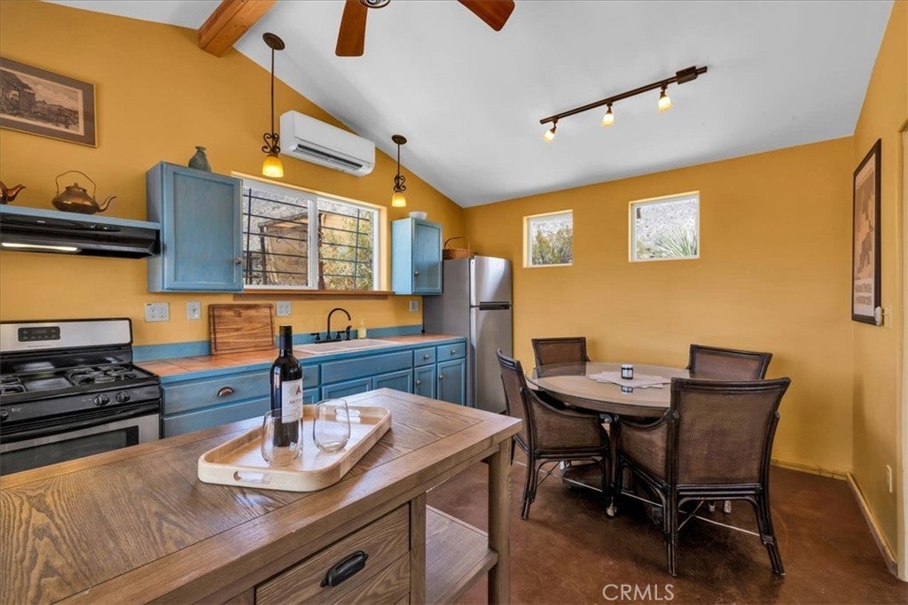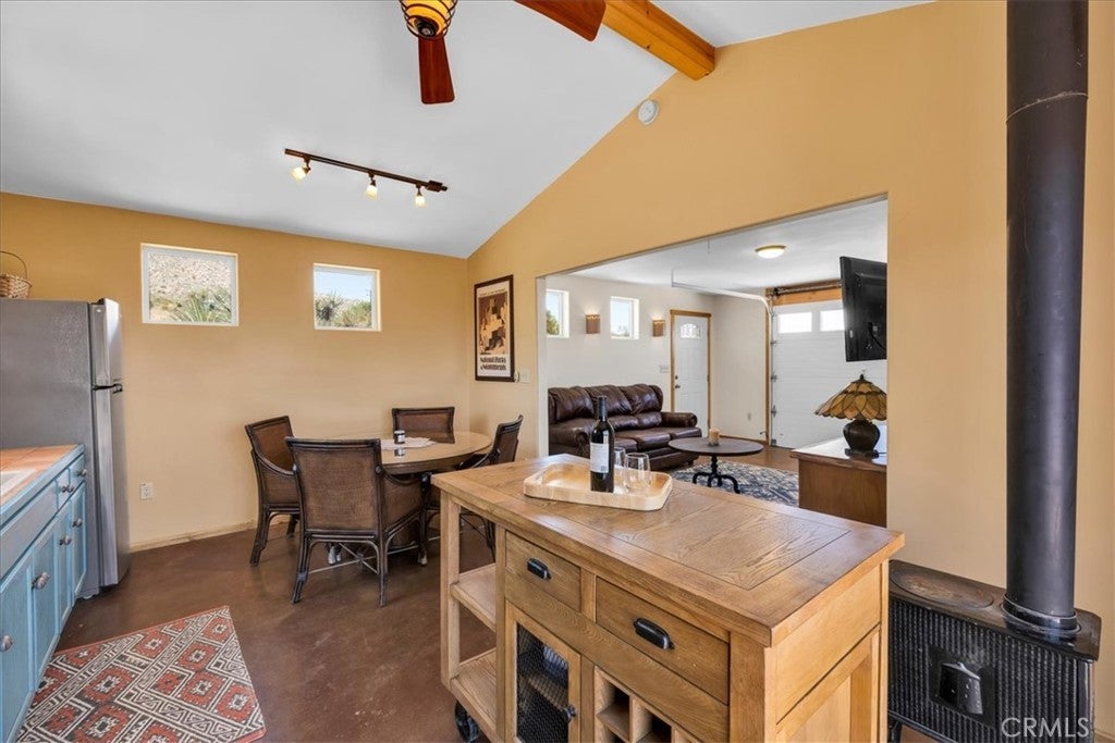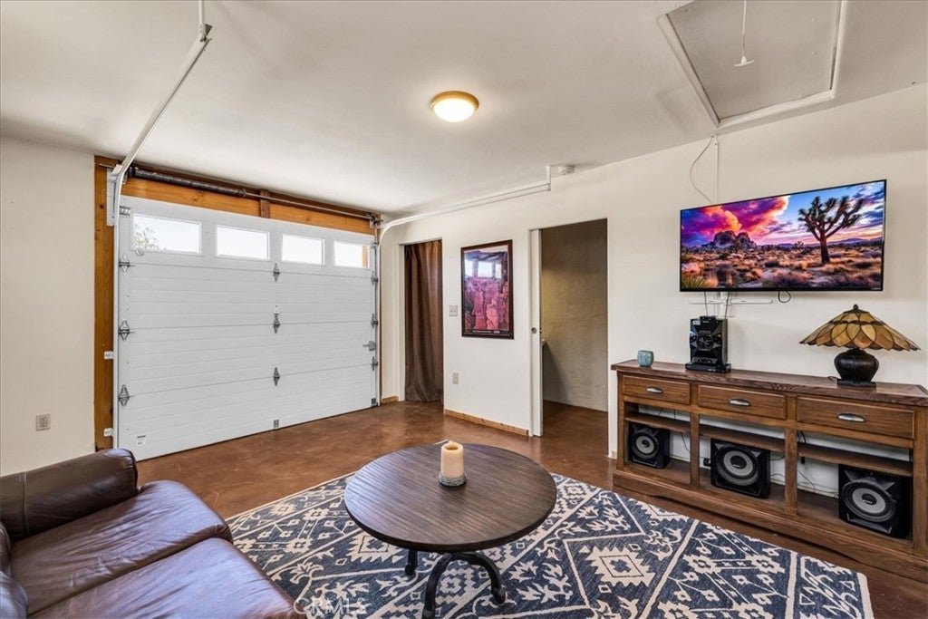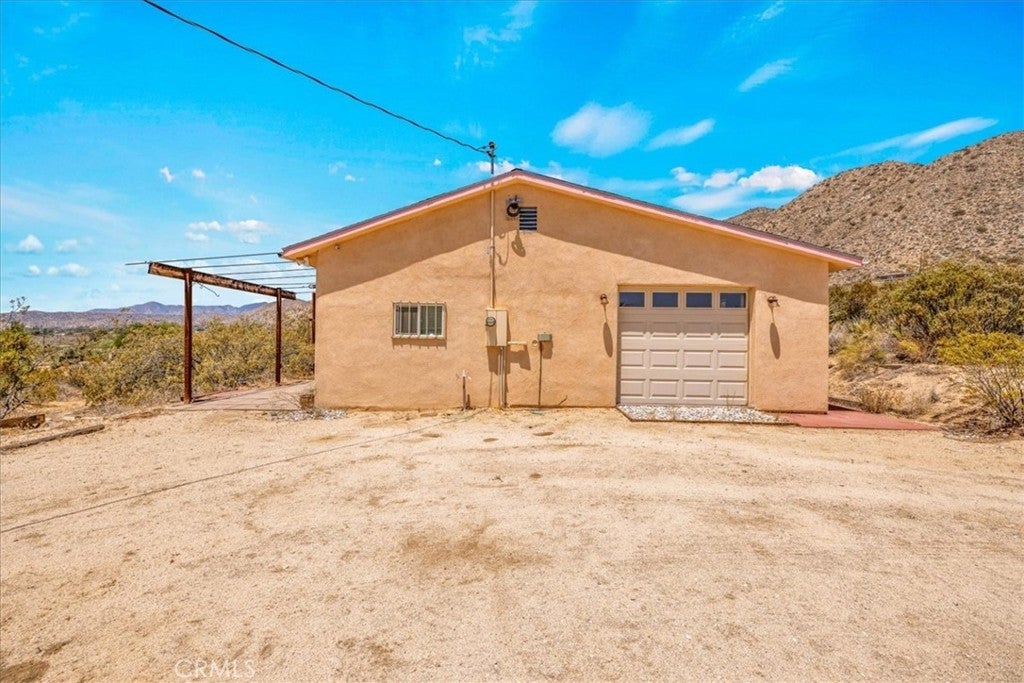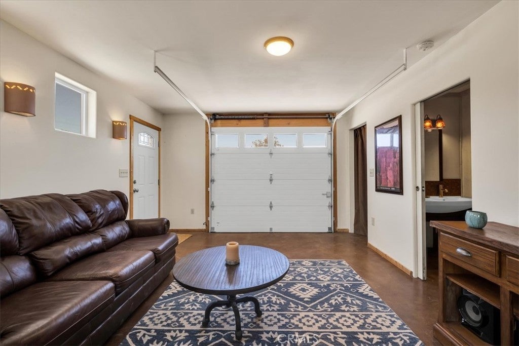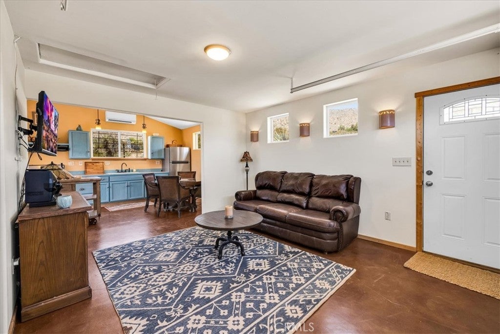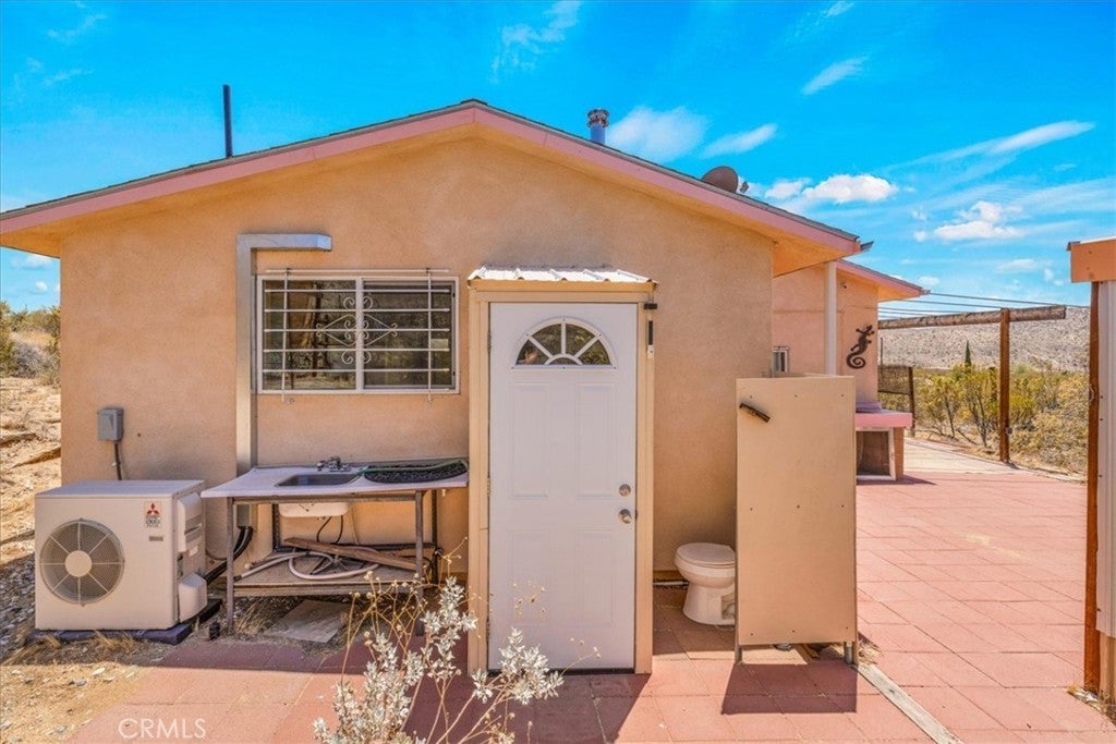 Discover rustic elegance and desert tranquility in this beautifully remodeled and permitted 1-bedroom, 1-bathroom home, originally a classic cabin, now transformed into a stylish retreat. Situated on a little over 7 acres (4.53 acres + additional 2.5-acre parcel), this property offers space, privacy, and unmatched views of the Morongo Valley landscape. Inside, the home features thoughtful upgrades that blend modern comfort with cabin charm with an open-concept layout, including a roll up door that brings the outside in! The main part of the home has stained concrete floors to keep it cool in the summer, and the kitchen has a wood burning stove for extra heat to create a warm and inviting atmosphere. There's also mini split for heat and a/c for even more climate control. Did we mention that it's on its own well??? Installed in 2013, and has just been inspected. The spacious bedroom opens to wide desert skies and serene mornings with access to the south facing patio. Step outside to your private outdoor living area, designed for entertaining or peaceful evenings under the stars. Relax in the hot tub while taking in views of the surrounding hills and open desert—perfect for stargazing or soaking after a long day. If you're looking for a weekend escape, full-time residence, or unique investment property, this one-of-a-kind desert gem offers a rare combination of character, land, and lifestyle. Just minutes from Joshua Tree, Pioneertown, and the Big Morongo Canyon Preserve, and a short drive "down the hill" to Palm Springs and the low desert!