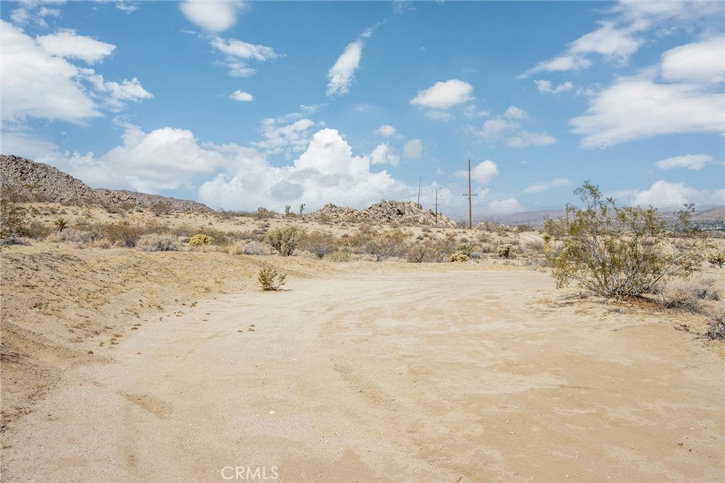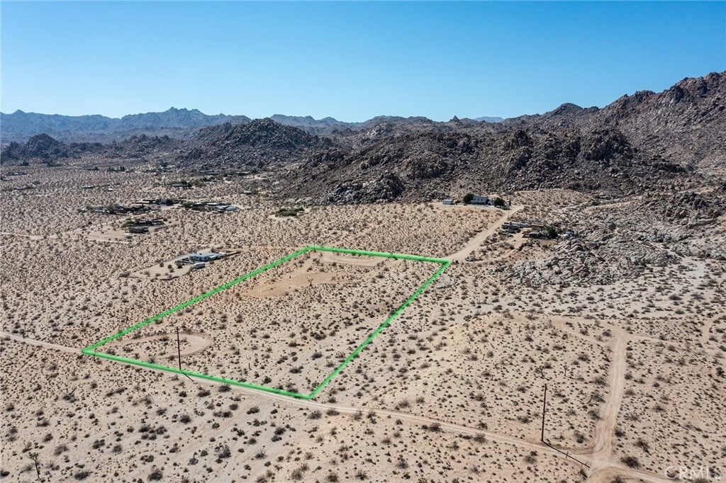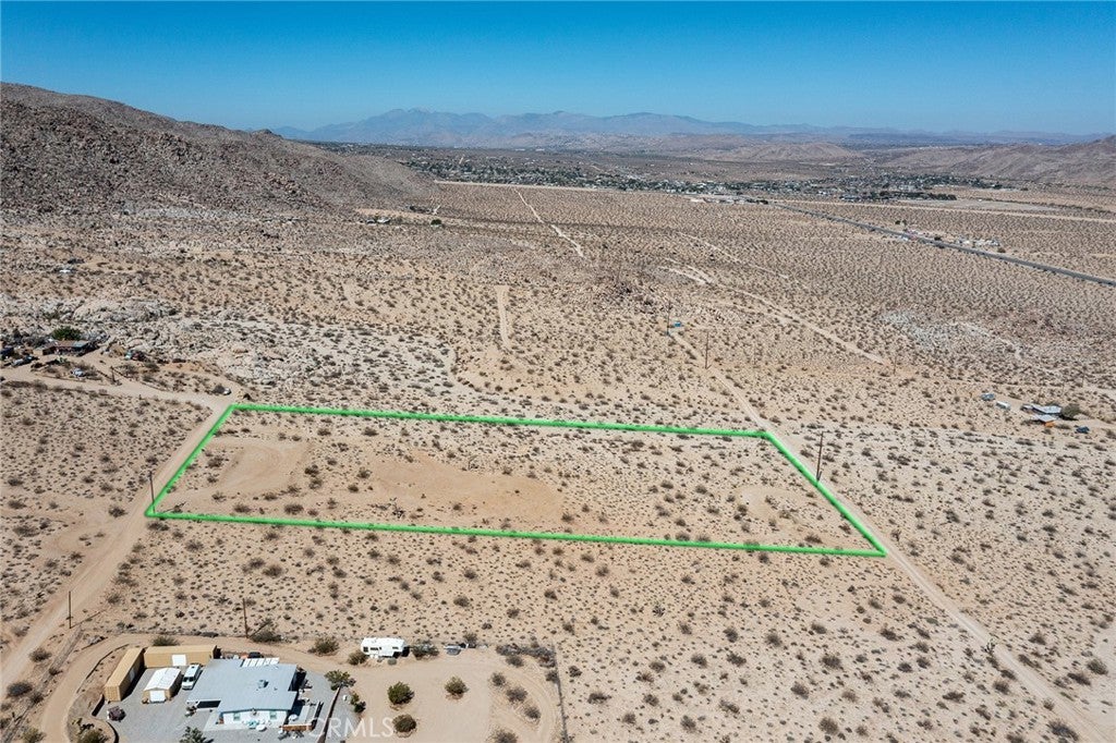 5+ Big Acres located in Prestigious Panorama Heights. Close to National Park and BLM-government-owned property. Boulder mountains nearby. Approved plans by SB County. Water and electricity nearby. Ready to develop. Rural feel and location, yet convienent to downtown Joshua Tree for dining and shopping. Great parcel for individual or general contractor seeking large, rural parcel to develop. NOTE: Green lines demarcating boundaries in pictures are approximate. APN: 0604-061-09