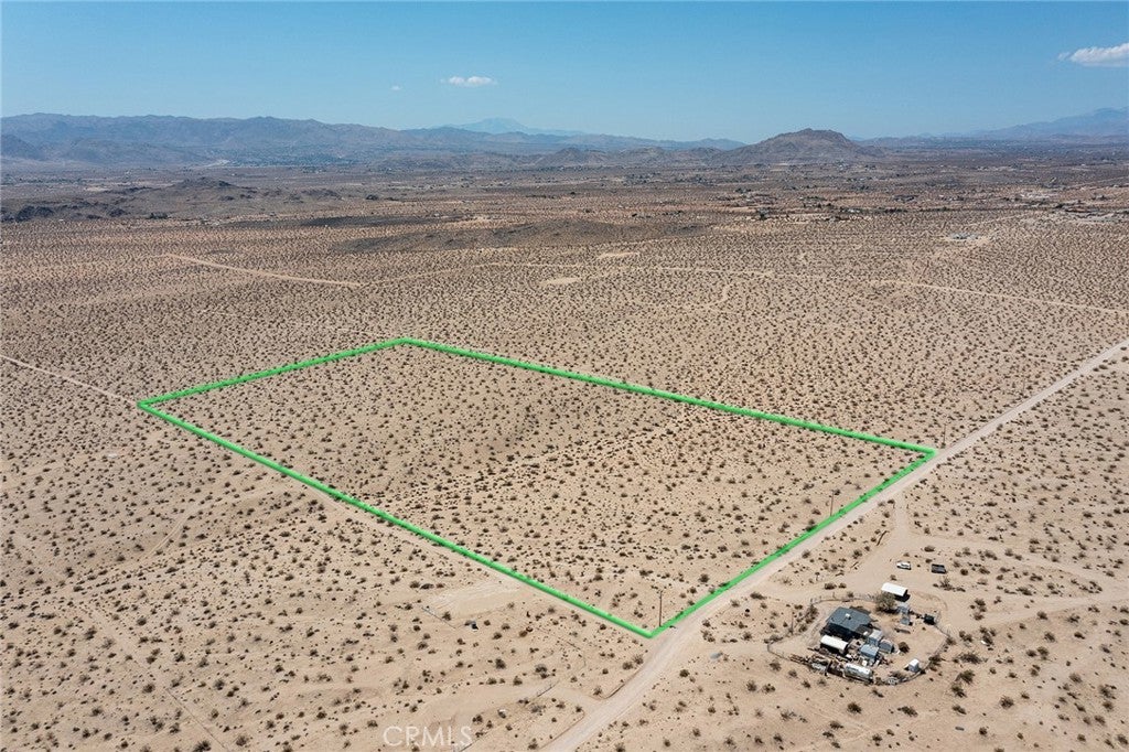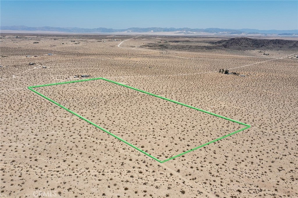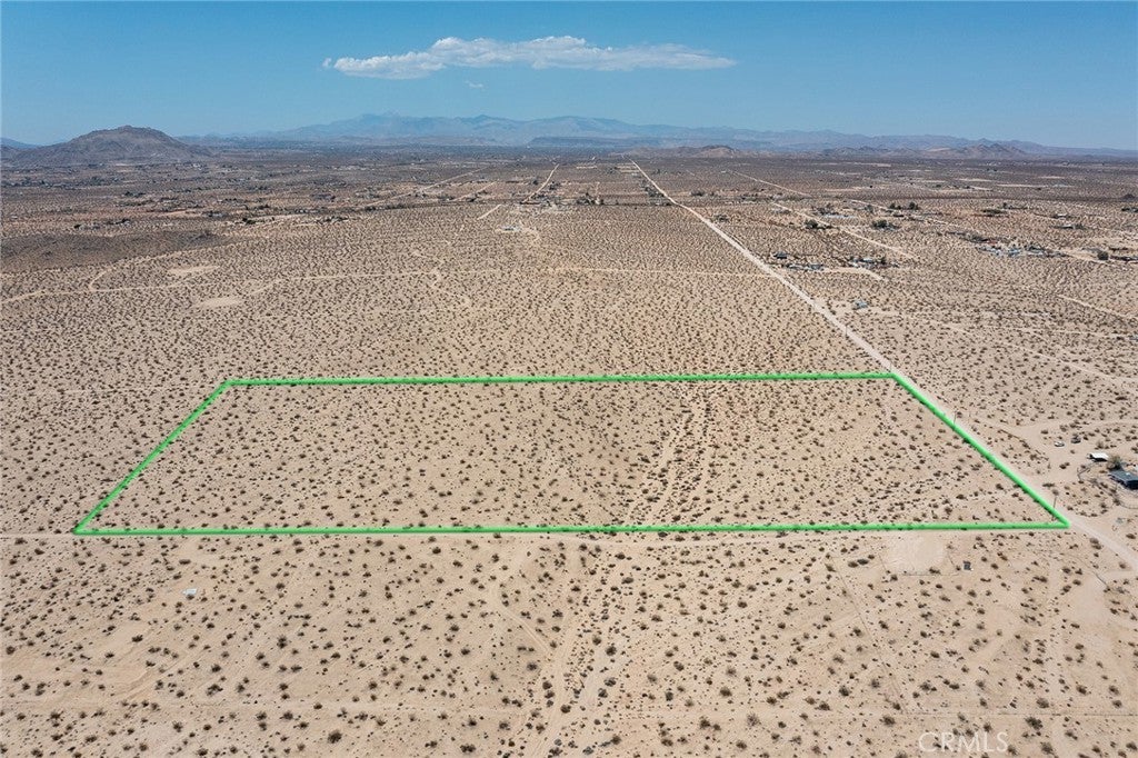 19+ ACRE PARCEL: Rural desert with spectacular views of the dry lakebed and the National Park mountains in the distance to the south. Great parcel to build an estate in an up-and-coming neighborhood, with architecturally significant homes planned nearby. NOTE: Green lines demarcating boundaries in pictures are approximate, as property has not been surveyed; street address is not official – do not use address or google maps GPS to locate property. To find property, please locate with APN: 0606-321-13