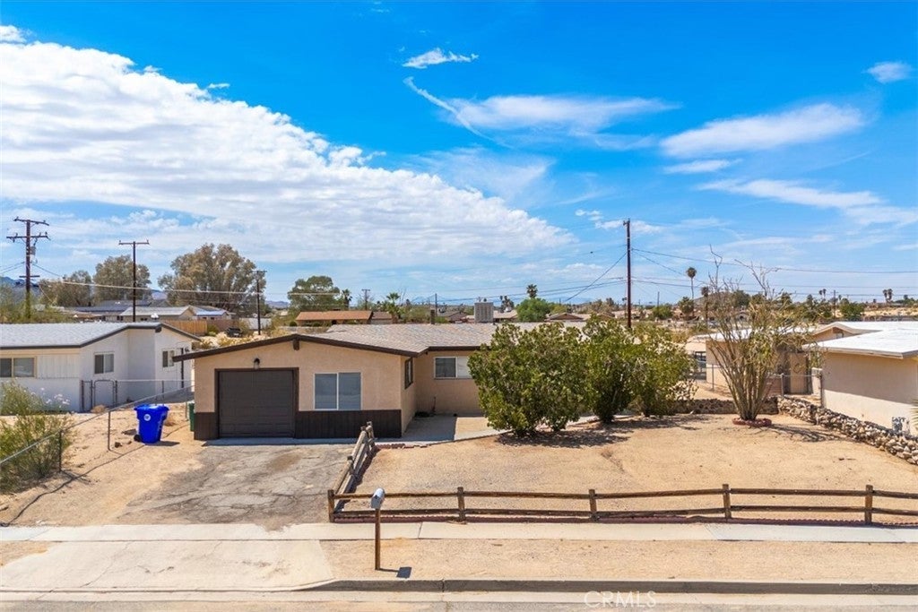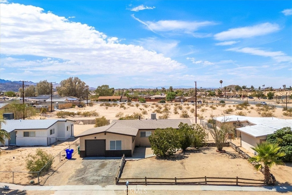 Charming Home in the Heart of 29 Palms! This inviting 3-bedroom, 2-bathroom home spans 1,328 sq ft and offers the perfect blend of comfort and convenience, ideal for first-time buyers or Investors. Step inside to discover a bright, open-concept living space with ample natural light, perfect for relaxing or entertaining. The kitchen with appliance's flows seamlessly into the dining area, while the versatile bonus room offers endless possibilities—think home office, playroom, or cozy den. Retreat to the spacious primary suite, complete with an en suite bath for added privacy. Two additional bedrooms provide plenty of space for family, guests, or rental potential. Outside, enjoy a fenced backyard with a covered patio, perfect for savoring warm desert evenings or hosting barbecues. The attached one-car garage offers convenience and storage, while the low-maintenance lot keeps upkeep simple. Nestled next to 29 Palms High School and just minutes from Joshua Tree National Park, local schools, and a vibrant shopping center, this home combines serene desert living with urban accessibility. Don't miss this turnkey gem—whether you're starting your homeownership journey or seeking an investment property, this home delivers unmatched value in a prime location. Schedule your tour today! Buyer to independently verify all MLS information, including, but not limited to, permits, property use, bedroom/bathroom counts, square footage, school districts, and enrollment availability. Buyer is strongly encouraged to conduct their own investigations and inspections to confirm the accuracy of all information provided.