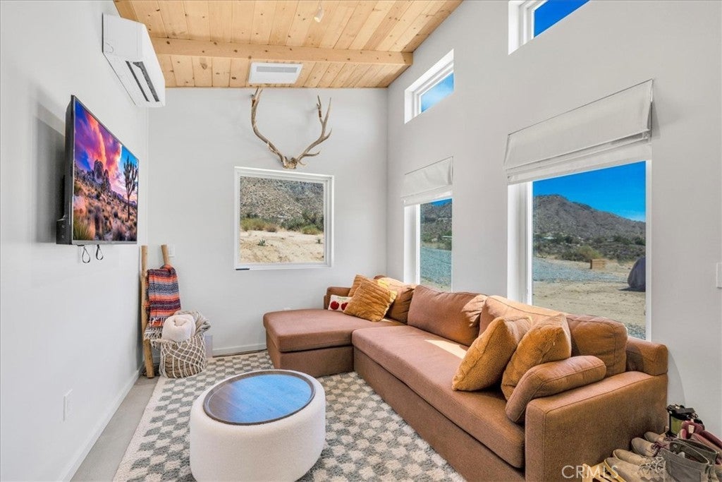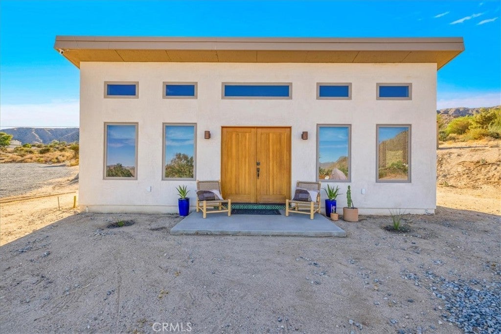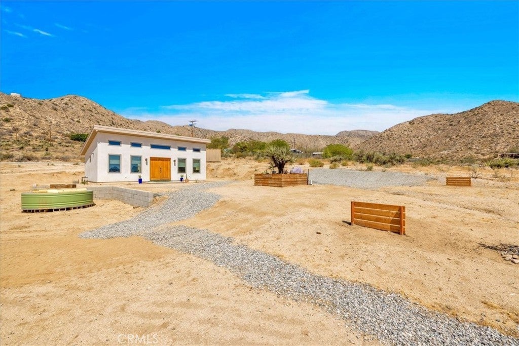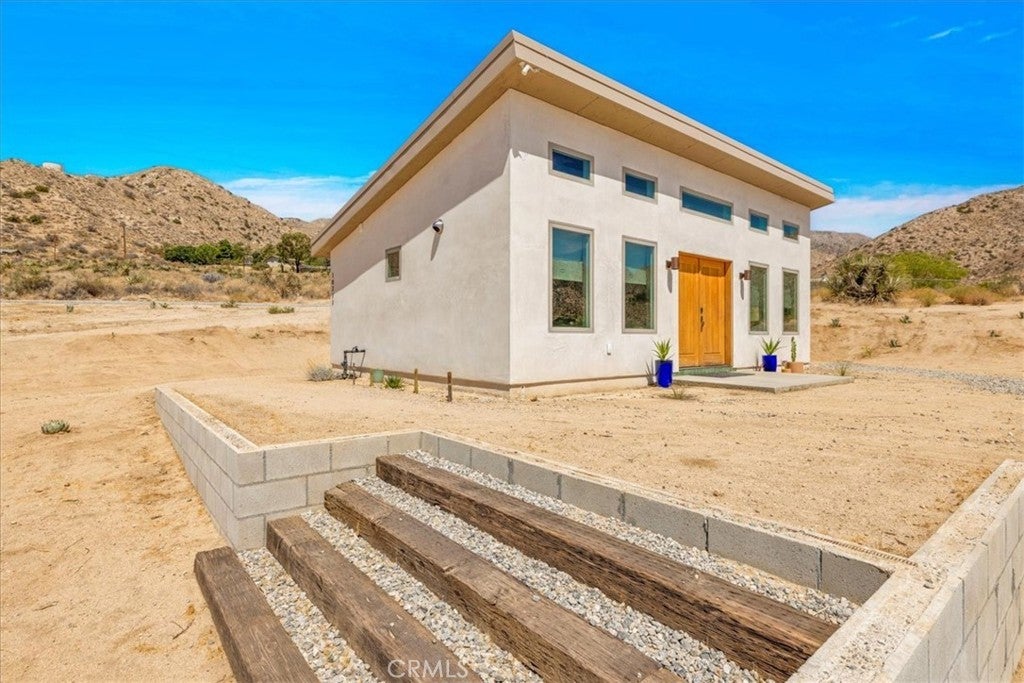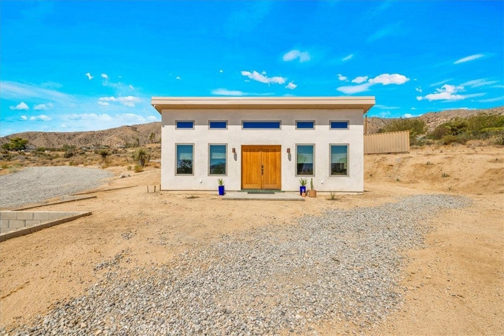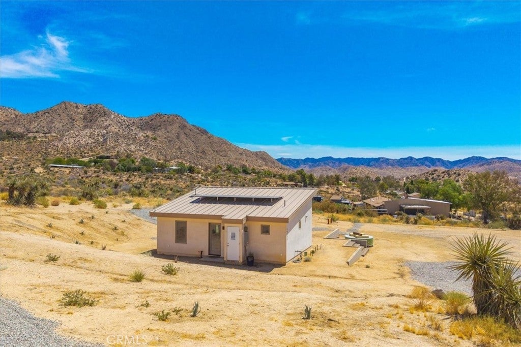 Wake up to stunning desert sunrises, sip coffee on your front patio, and spend your days exploring trails right outside of your door! Whether you’re here for a weekend retreat or a longer stay, this brand-new (2023) 600 sq ft modern build set on corner acreage is the perfect desert getaway. Inside, you’ll find an open floor plan featuring polished concrete floors, a bright and airy living space with every window framing views, and a spa-like bathroom with porcelain tile and a soaking tub/shower combo—the ideal spot to unwind at the end of the day. Every detail was designed for comfort: thermally efficient windows and doors, solid wood entry and interior doors, SIP construction that offers great insulation (R-42 roof/R-26 walls), and three ductless mini-splits to keep each space perfectly cool or cozy. This is an all-electric, solar-powered home, so you can enjoy modern comforts while living lightly on the land. You’ll love the cowboy pool, perfect for cooling off while soaking in the 360° panoramic mountain views after a day full of desert exploration. For practical needs, there’s also a shipping container on-site, giving you plenty of storage space for gear, tools, or toys. The property itself is designed with the future in mind—there’s an upgraded water meter and oversized septic system big enough for another, larger single-family home, and the site has already been graded for the next build. The location? Couldn’t be better. Set in one of the most desirable areas of Morongo Valley with epic views of Mt. San Jacinto, you’re less than 1/2 hr away from Palm Springs and Joshua Tree National Park, while being just minutes from local favorites like Cactus Mart, Spaghetti Western, Coyote Cone, and Farmer in the Dale. Plus, you’ll be close to hiking and horse trails, with Sand to Snow National Monument and Big Morongo Canyon Preserve practically in your backyard. Whether you’re looking for a primary home, a short-term rental, or a long-term investment property, this little desert gem is a stylish, comfortable base for it all!