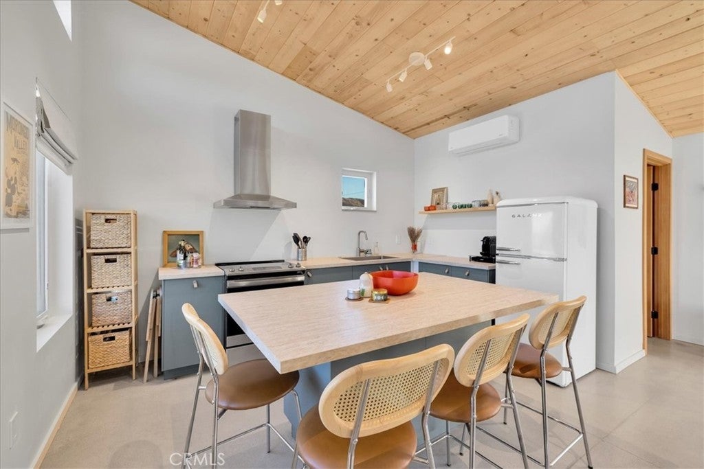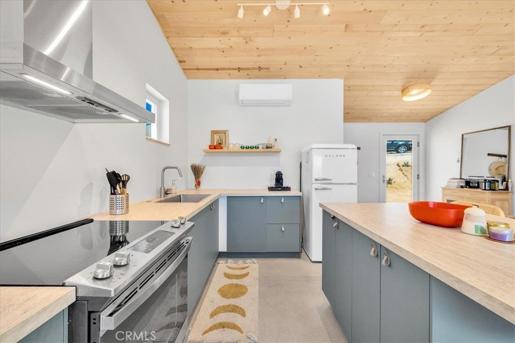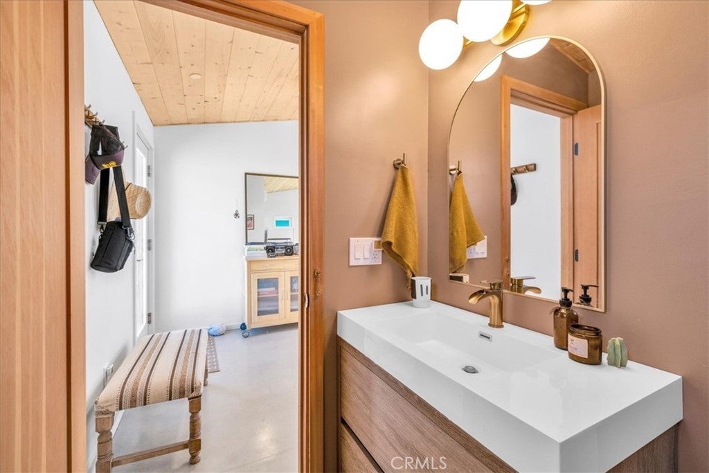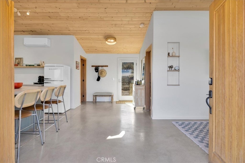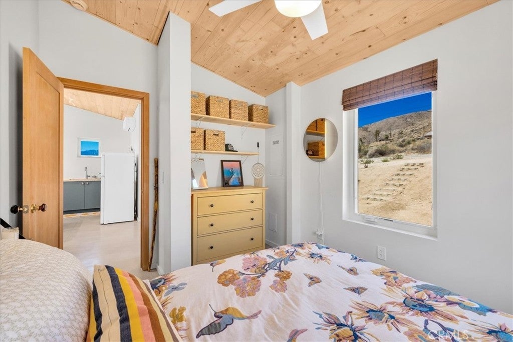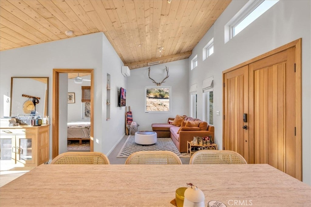 Wake up to stunning desert sunrises, sip coffee on your front patio, and spend your days exploring trails right outside of your door! Whether you’re here for a weekend retreat or a longer stay, this brand-new (2023) 600 sq ft modern build set on corner acreage is the perfect desert getaway. Inside, you’ll find an open floor plan featuring polished concrete floors, a bright and airy living space with every window framing views, and a spa-like bathroom with porcelain tile and a soaking tub/shower combo—the ideal spot to unwind at the end of the day. Every detail was designed for comfort: thermally efficient windows and doors, solid wood entry and interior doors, SIP construction that offers great insulation (R-42 roof/R-26 walls), and three ductless mini-splits to keep each space perfectly cool or cozy. This is an all-electric, solar-powered home, so you can enjoy modern comforts while living lightly on the land. You’ll love the cowboy pool, perfect for cooling off while soaking in the 360° panoramic mountain views after a day full of desert exploration. For practical needs, there’s also a shipping container on-site, giving you plenty of storage space for gear, tools, or toys. The property itself is designed with the future in mind—there’s an upgraded water meter and oversized septic system big enough for another, larger single-family home, and the site has already been graded for the next build. The location? Couldn’t be better. Set in one of the most desirable areas of Morongo Valley with epic views of Mt. San Jacinto, you’re less than 1/2 hr away from Palm Springs and Joshua Tree National Park, while being just minutes from local favorites like Cactus Mart, Spaghetti Western, Coyote Cone, and Farmer in the Dale. Plus, you’ll be close to hiking and horse trails, with Sand to Snow National Monument and Big Morongo Canyon Preserve practically in your backyard. Whether you’re looking for a primary home, a short-term rental, or a long-term investment property, this little desert gem is a stylish, comfortable base for it all!