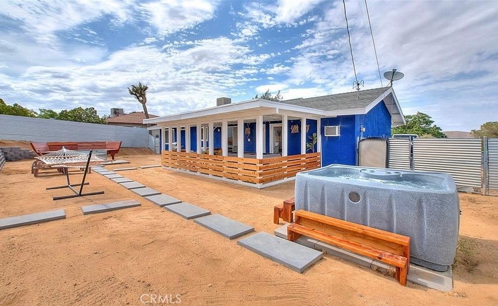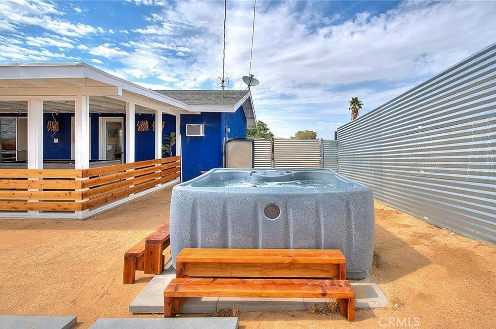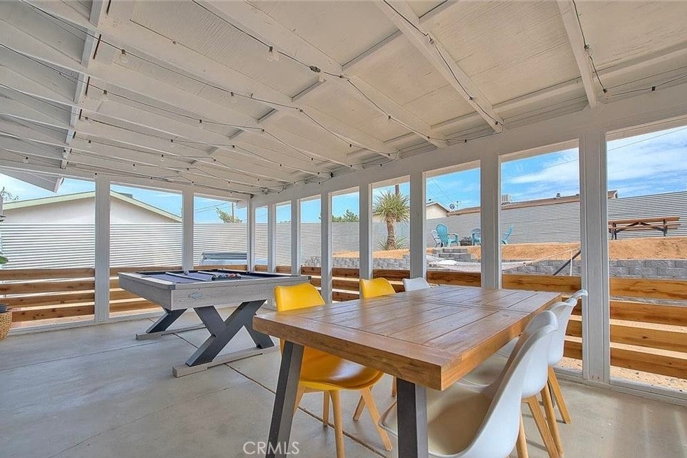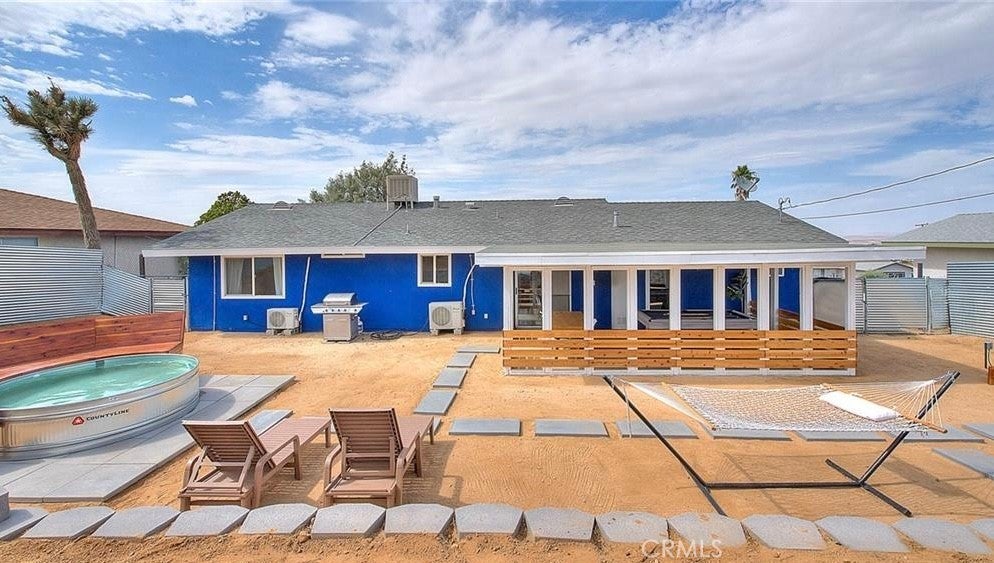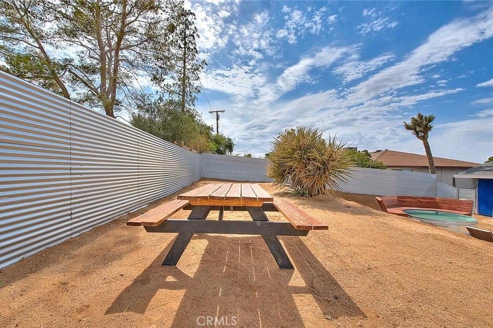 Welcome to 61627 El Cajon a thoughtfully updated 2 bedroom, 1 bath home just minutes from the Joshua Tree National Park entrance. Bright and inviting, the interior features a modern kitchen, cozy living space, and updated finishes throughout. Outside, enjoy a fully fenced yard with a covered patio, above ground pool, and space to relax or entertain. The attached garage offers extra storage or creative potential.