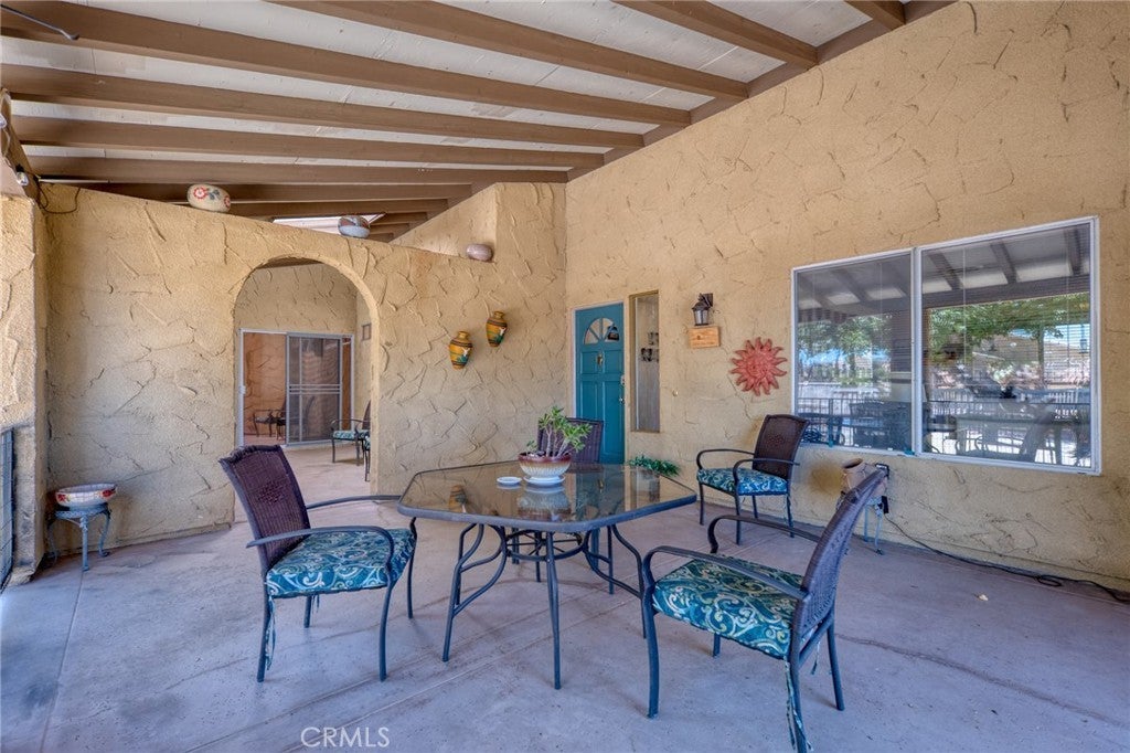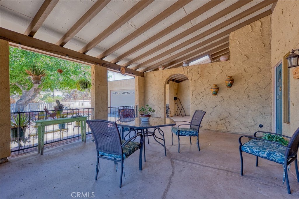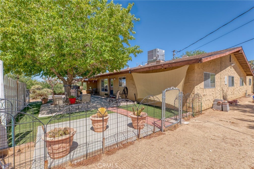 Such a lovely home that has been beautifully maintained and is in one of the nicest areas of Yucca Valley. You will find a large living room with a stunning stone fireplace. New dual-pane large windows that bring the outside in! New flooring throughout. A well-positioned kitchen featuring a newer cooktop, microwave, dishwasher, and sink, with ample cabinet space. The dining area is spacious, and with the large windows, you can enjoy the mountain views while having breakfast. Your laundry room is just off the kitchen for your convenience. All three bedrooms are large enough for king-size beds—the master you will enjoy because of the covered patio and slider for your early morning coffee. Speaking of the patios, there are three lovely patios to enjoy in the morning or evenings. One patio is fenced for the little critters or maybe a little person or two! Beyond this area is an enormous bake yard.