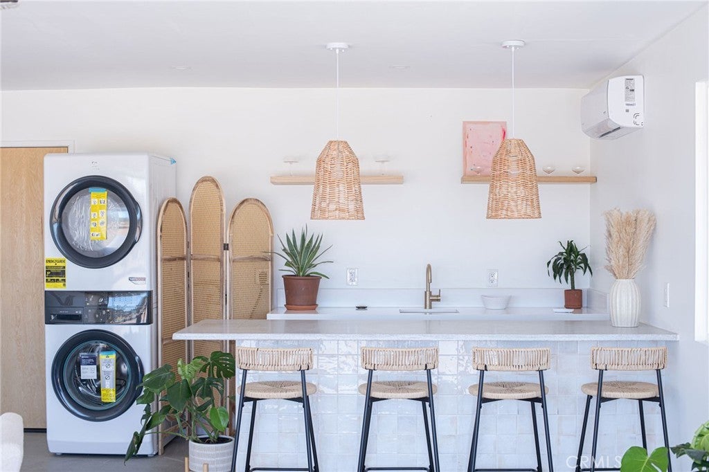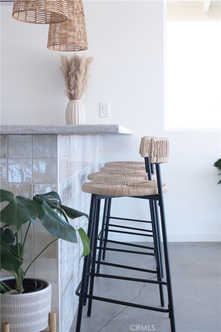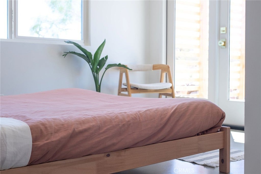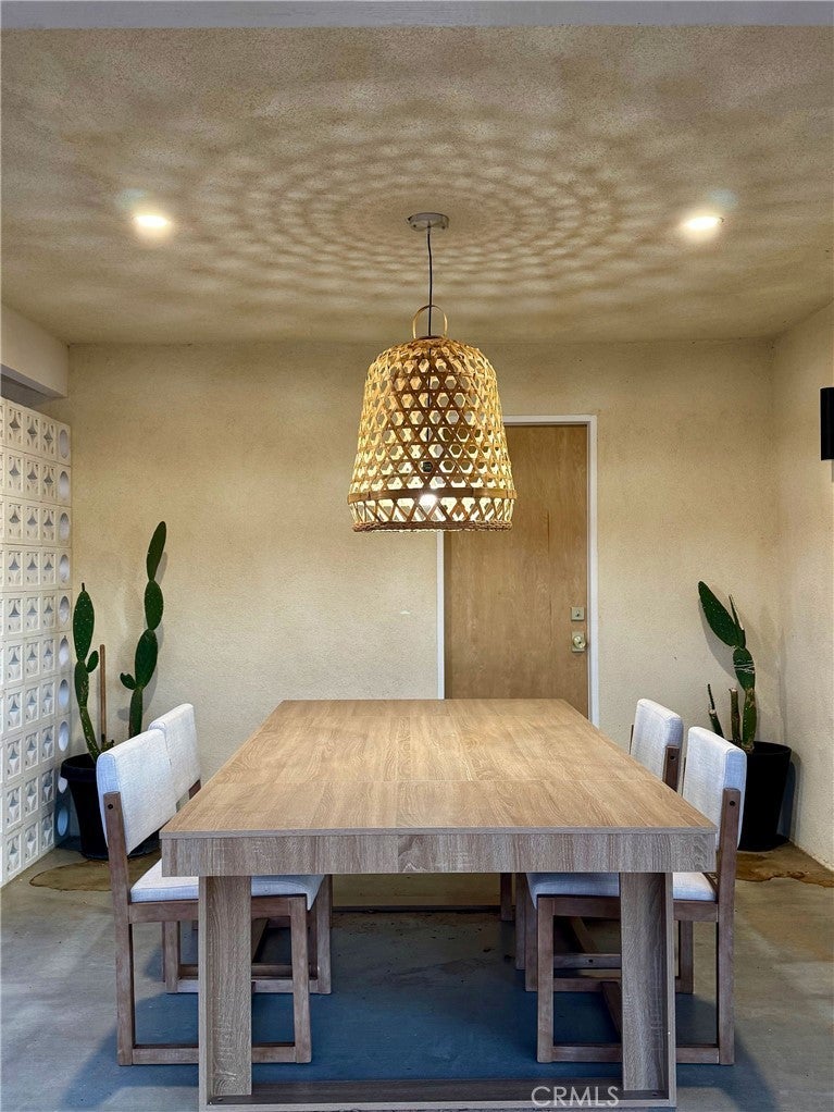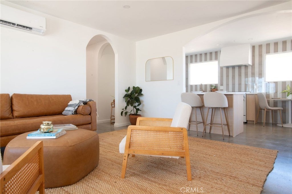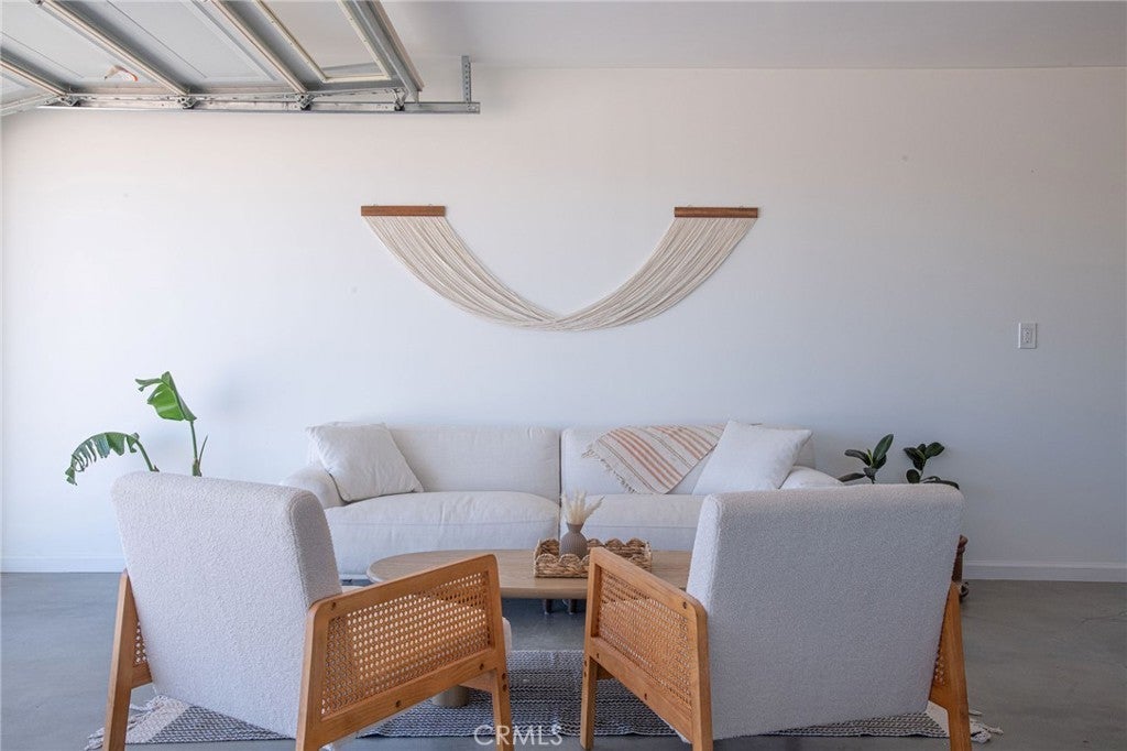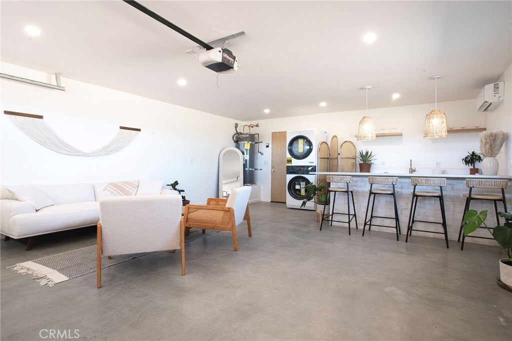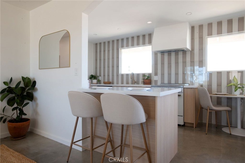 Welcome to 59676 Mitch Rd, where Bohemian Flair meets Desert Elegance. This gorgeous turn-key property has been completely remodeled with every feature intentionally chosen to bring you the perfect airbnb, desert home or weekend retreat. This house showcases 3 bedrooms, 2 bathrooms and 5 ACRES OF LAND with stunning panoramic desert & mountain views. Inside you'll find sleek concrete floors, tasteful decor & furnishings, rounded archways, recessed lighting and large windows that let in an abundance of natural light. The warm and welcoming living room flows effortlessly into the awe-inspiring kitchen and dining area complete with designer-style tile backsplash, bright quartz countertops, beautiful modern cabinetry, high-end FORNO appliances and bar seating. Each bedroom is well appointed with mini-splits for year-round comfortability, closets with custom built-in shelving and 2 of the 3 bedrooms adorn french doors that lead to their own private outdoor patios. Both bathrooms boast spa-like showers with sophisticated tile, glass panels and lovely new vanities with clean, modern finishes. The finished garage has been transformed into the ultimate hangout space equipped with a bar, wine fridge, sink, additional cabinetry, a mini-split and a cozy elevated lounge area (there is even a stacked washer/dryer for added functionality). It doesn't stop there; the serene outdoor living space includes a lovely covered patio for outdoor dining, an outdoor shower with a rainfall shower-head, ample space to entertain or relax around a firepit on a starlit summer night. Not to mention, there is more than enough room to build/expand and/or store all your desert toys! This exquisite property is located close to numerous desert attractions like Lander's famous Goat Mountain hiking trails, Giant Rock, La Copine, The Integratron, and only 15 mins from downtown Joshua Tree but still far enough away to fully immerse yourself in all the peace & tranquility this desert home has to offer. Come take a look & let the desert's allure do the rest. Your new desert home or weekend retreat awaits.