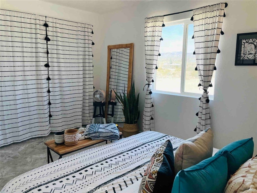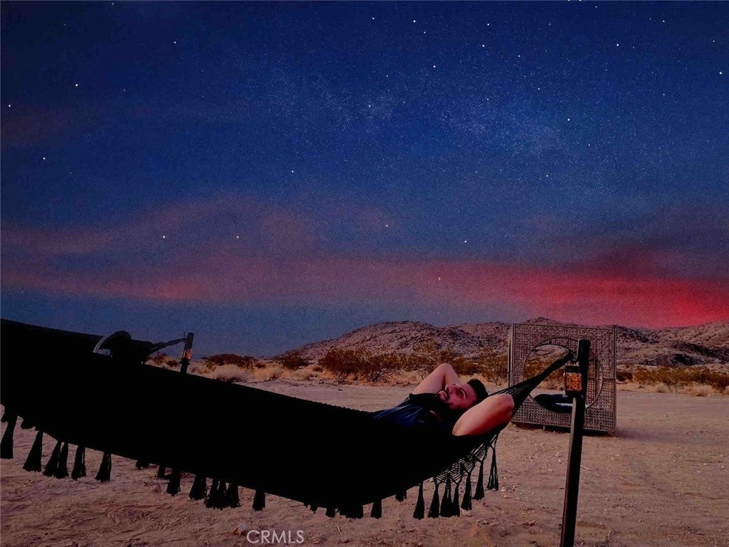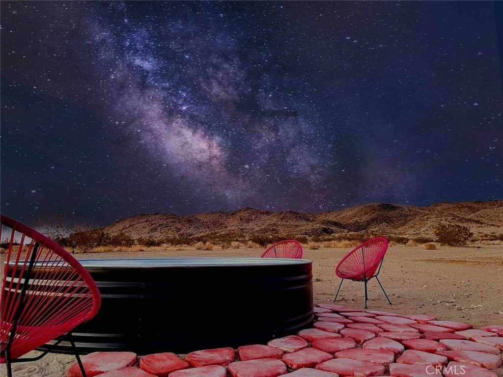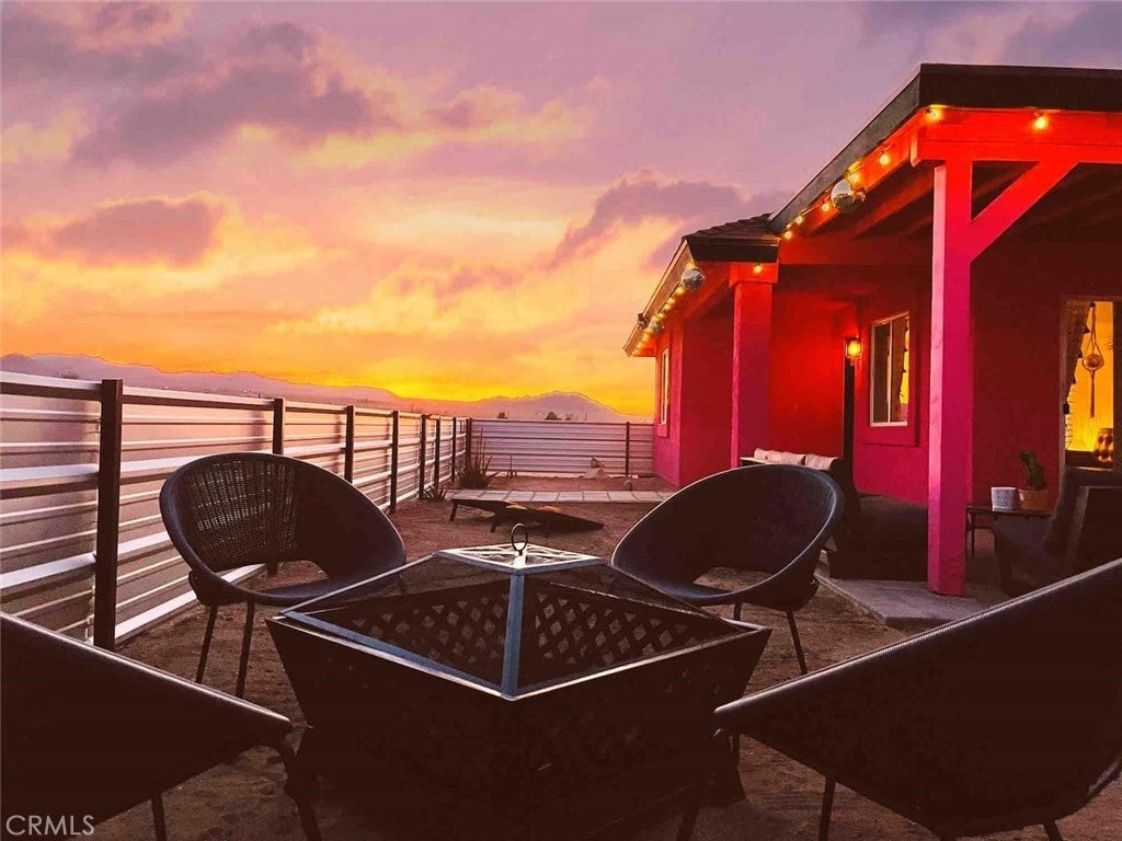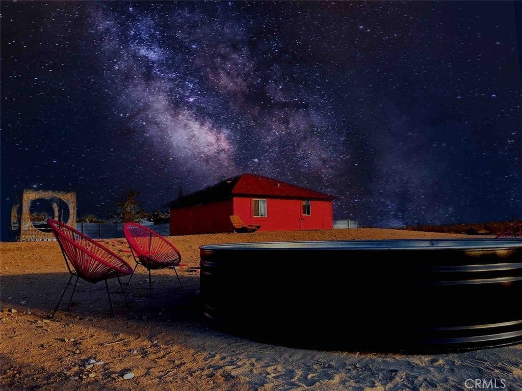 The desert getaway with you’ve been dreaming of has finally hit the market! Nestled in Landers in front of Goat Mountain, this modern retreat offers captivating unobstructed views and panoramic vistas that stretch for miles. Situated on a 2.5-acre lot and backing up to 490 acres of government land, it feels like having your very own 500-acre backyard! Whether you love hiking, biking, ATV adventures, or simply crave a private fortress of solitude, this is a rare opportunity you won’t want to miss. Built in 2019, this 2 bedroom, 1 bathroom home spans almost 800 sq. ft. and is move-in ready—just bring your furniture (or offer to purchase existing). Inside, you’ll find stylish modern & sleek tile flooring throughout, and a bright living space that flows seamlessly to the outdoors through sliding glass doors. The kitchen is fully equipped with plenty of cabinet storage, granite countertops, and appliances—including a built-in microwave, oven, and dishwasher. Both bedrooms are generously sized, each featuring textured designer wallpaper, tile floors, and large windows framing serene desert views. Step outside to the covered patio—perfect for BBQs, outdoor dining, or cozy evenings by the fire as you watch the stunning Landers sunsets. The property also includes a Hot Tub and 10 foot Oversized Cowboy Pool for Breathtaking stargazing nights under the endless desert sky. Located just off a paved road, you’ll be only a mile from the world-famous Integratron and Gubler’s Orchids, and right at the base of Goat Mountain. With stars stretching for miles, this desert gem is the ultimate place to relax, recharge, and call your own. Arrange your private tour today and experience the magic of the Pink House in Landers! Buyer to verify all MLS information, including but not limited to: permits and uses, bed/bath counts, square footage, school information and enrollment availability. Buyer is advised to independently investigate all aspects of the property, and to verify the accuracy of all information provided through personal inspections and with appropriate professionals to the buyer’s satisfaction.Buyer is solely responsible for verifying water, power, zoning, and county building requirements.Buyers are responsible for confirming the accuracy of all information and are encouraged to conduct their own due diligence or retain qualified professionals.