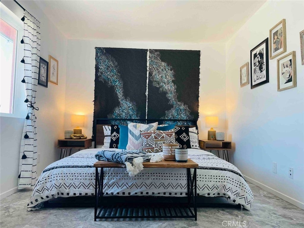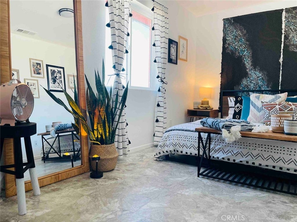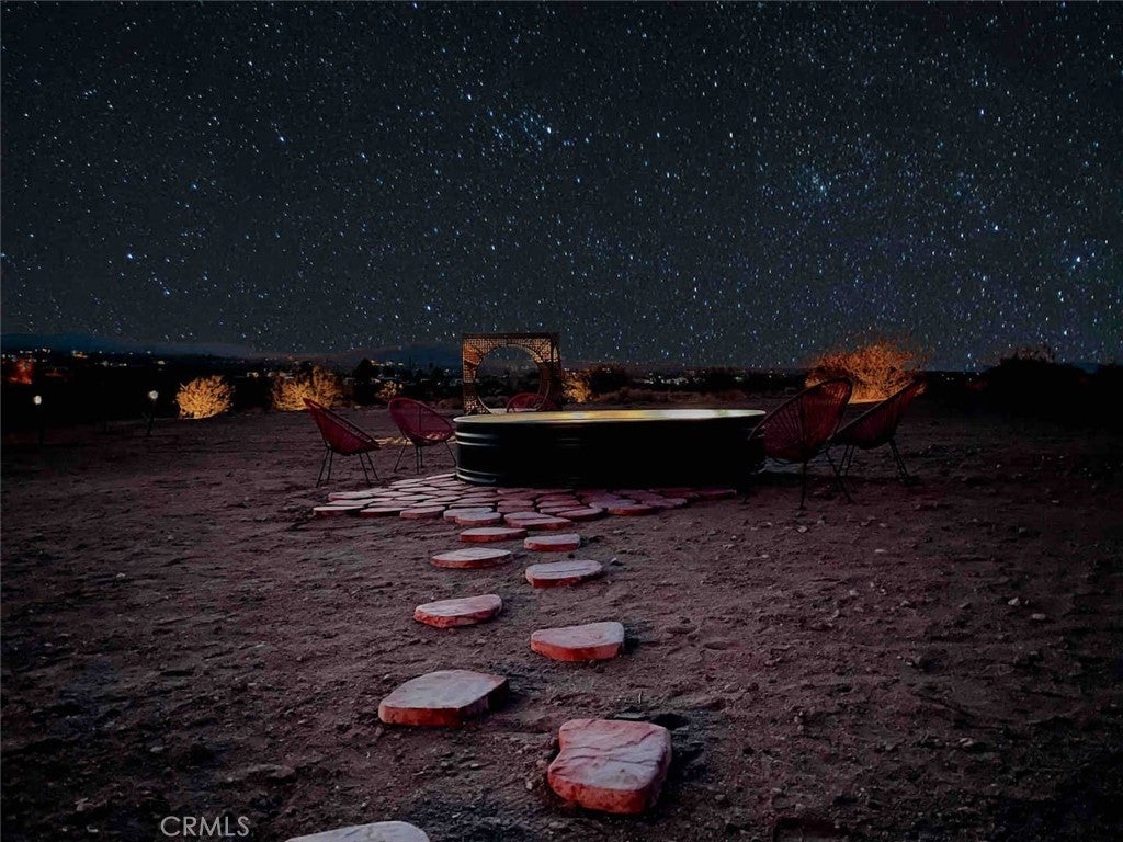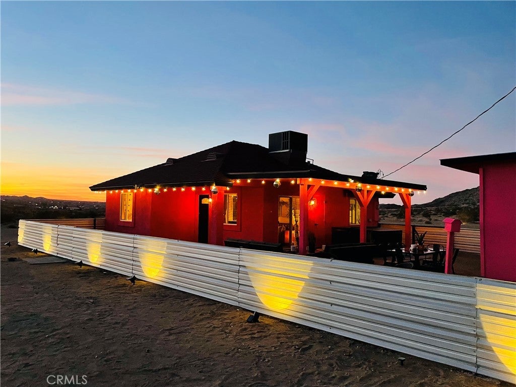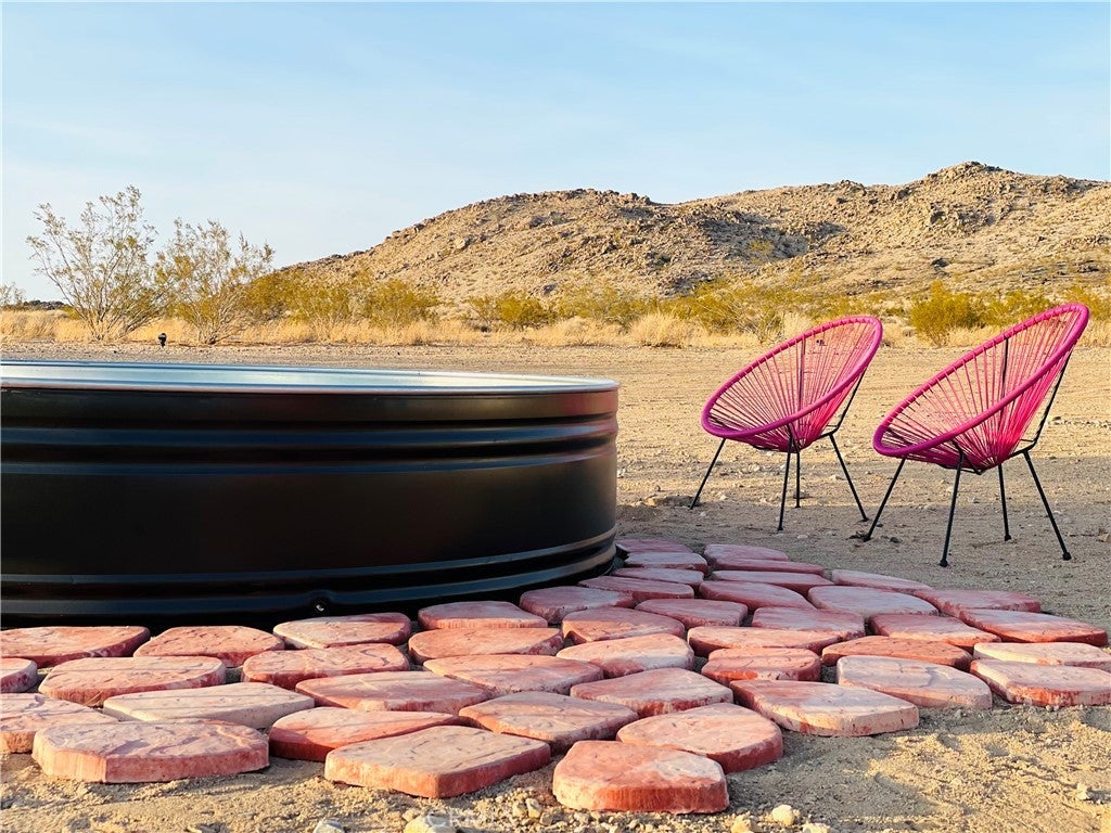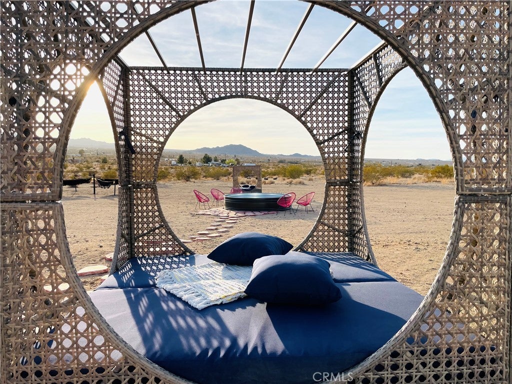 The desert getaway with you’ve been dreaming of has finally hit the market! Nestled in Landers in front of Goat Mountain, this modern retreat offers captivating unobstructed views and panoramic vistas that stretch for miles. Situated on a 2.5-acre lot and backing up to 490 acres of government land, it feels like having your very own 500-acre backyard! Whether you love hiking, biking, ATV adventures, or simply crave a private fortress of solitude, this is a rare opportunity you won’t want to miss. Built in 2019, this 2 bedroom, 1 bathroom home spans almost 800 sq. ft. and is move-in ready—just bring your furniture (or offer to purchase existing). Inside, you’ll find stylish modern & sleek tile flooring throughout, and a bright living space that flows seamlessly to the outdoors through sliding glass doors. The kitchen is fully equipped with plenty of cabinet storage, granite countertops, and appliances—including a built-in microwave, oven, and dishwasher. Both bedrooms are generously sized, each featuring textured designer wallpaper, tile floors, and large windows framing serene desert views. Step outside to the covered patio—perfect for BBQs, outdoor dining, or cozy evenings by the fire as you watch the stunning Landers sunsets. The property also includes a Hot Tub and 10 foot Oversized Cowboy Pool for Breathtaking stargazing nights under the endless desert sky. Located just off a paved road, you’ll be only a mile from the world-famous Integratron and Gubler’s Orchids, and right at the base of Goat Mountain. With stars stretching for miles, this desert gem is the ultimate place to relax, recharge, and call your own. Arrange your private tour today and experience the magic of the Pink House in Landers! Buyer to verify all MLS information, including but not limited to: permits and uses, bed/bath counts, square footage, school information and enrollment availability. Buyer is advised to independently investigate all aspects of the property, and to verify the accuracy of all information provided through personal inspections and with appropriate professionals to the buyer’s satisfaction.Buyer is solely responsible for verifying water, power, zoning, and county building requirements.Buyers are responsible for confirming the accuracy of all information and are encouraged to conduct their own due diligence or retain qualified professionals.