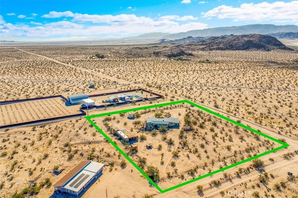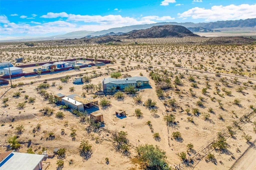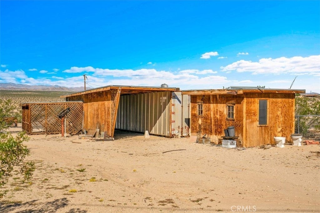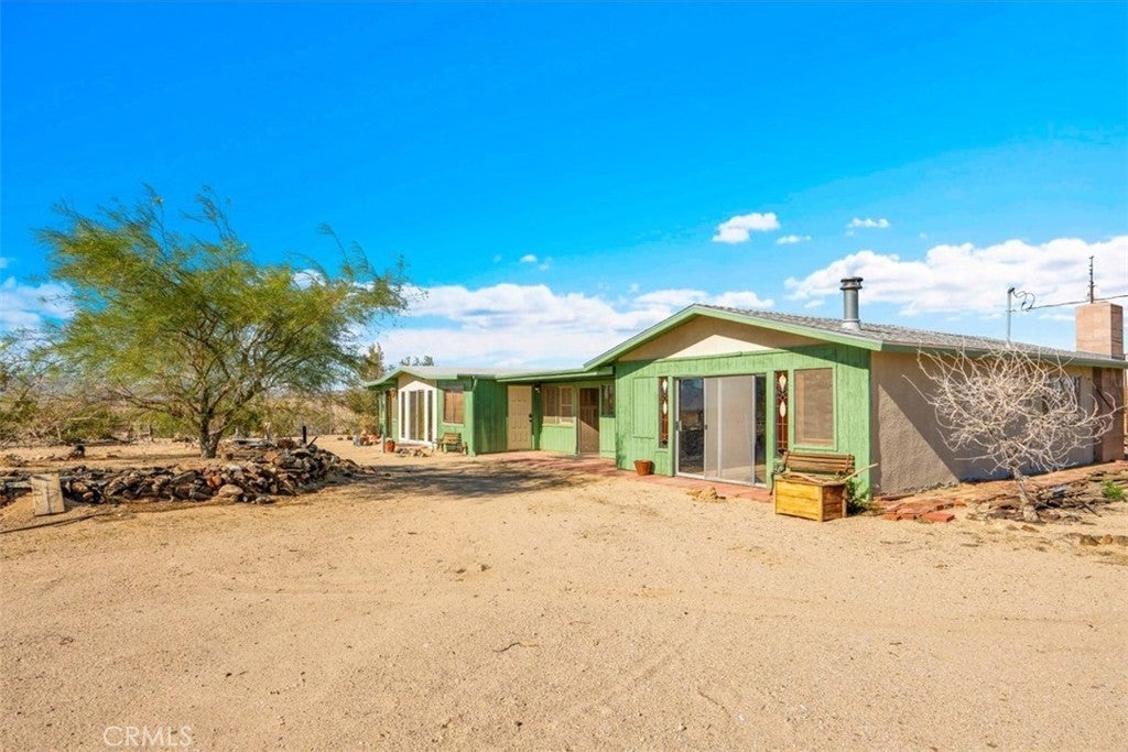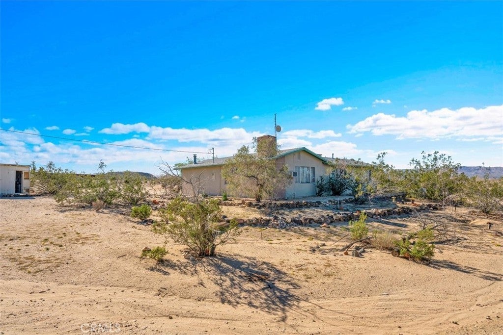 NEW ROOF, NEW EXTERIOR PAINT! Acreage & views! Come see this darling property, perched atop the Sunfair bluff overlooking the moonlight mesa area of north Joshua Tree! See both San Jacinto and San Gorgonio peaks from this location--many mile views! Its rustic and original condition offer a unique style filled with Joshua Tree character--not just another stucco box! On a fenced 2.5 acre lot, this large and roomy 2-bedroom 1-bath home features a living room with fireplace, open kitchen / dining area, a studio (converted garage) with wood stove, a storage container, carport structure, sheds and more! 15 minutes from downtown Joshua Tree and not much farther to the west entrance of Joshua Tree National Park. Come see today!