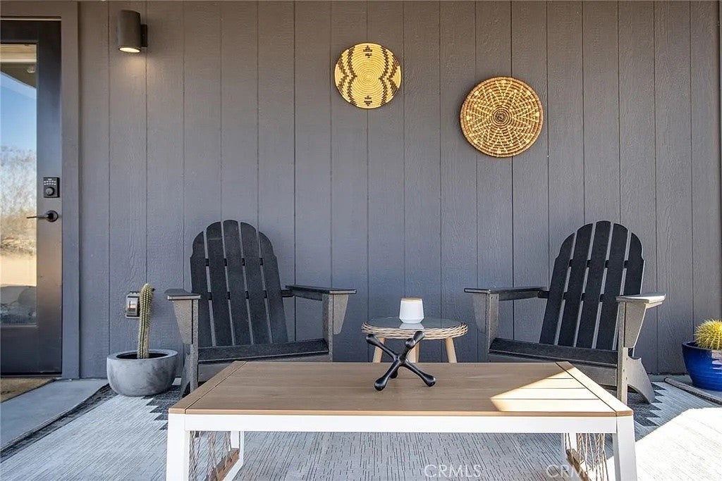 Welcome to your perfect desert getaway! Beautifully remodeled 2-bedroom, 1-bath home with bonus detached studio, offering a peaceful escape with modern style and comfort. Nestled on a massive 5-acre lot, the property also features a fully covered concrete patio and a cowboy tub, complete with a built-in filtration system and outdoor shower. Relax, unwind, and enjoy outdoor desert living at its finest. Also included is a charming 1-bedroom detached studio---perfect for visitors or extra income potential. Just a short jaunt from Yucca Valley and Joshua Tree--don't miss out on this opportunity to own your desert retreat!