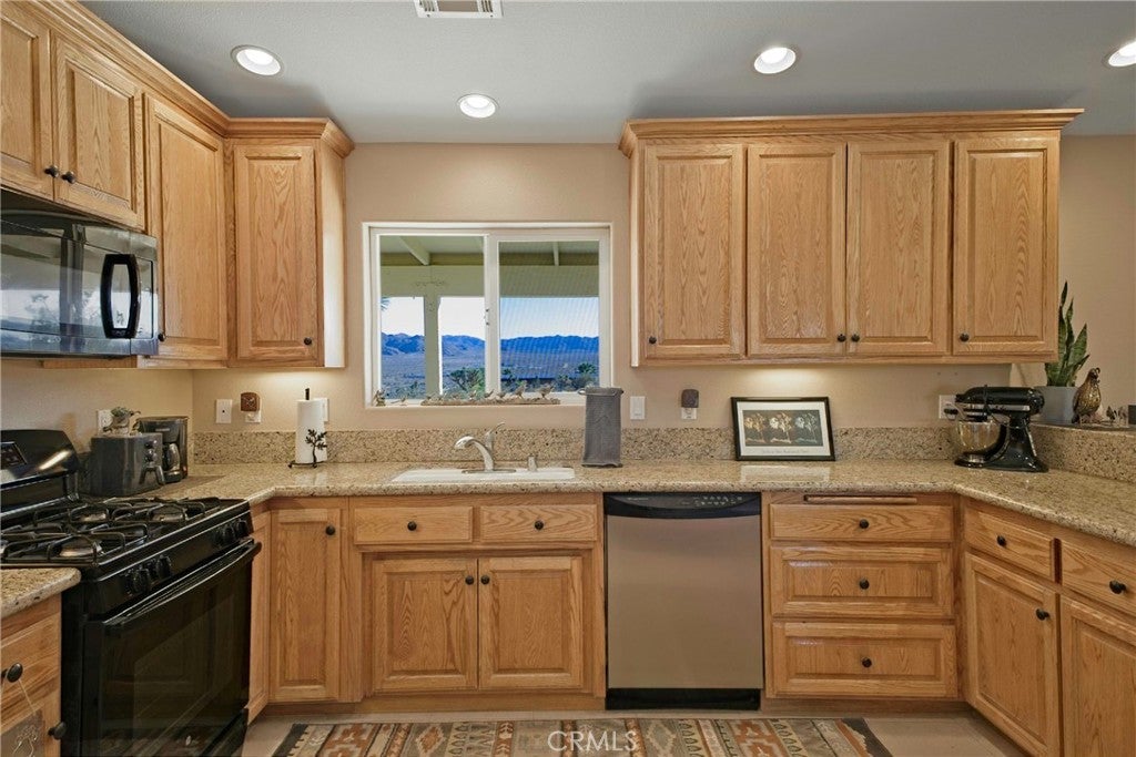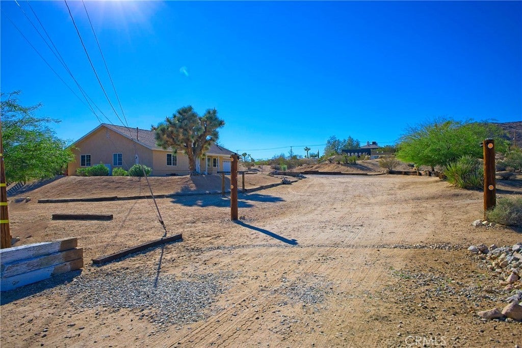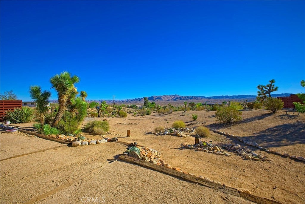 A Magical Desert Retreat with Sweeping Views—and a Bonus Lot! This charming single-level home includes an attached lot bursting with potential. Whether you envision expanding the home, creating lush outdoor spaces, adding a guesthouse, or crafting a one-of-a-kind desert sanctuary, the possibilities here are truly endless. Step inside and feel instantly at home. The spacious, light-filled interior features 3 bedrooms and 2 full baths, with an open-concept layout designed for comfort and connection. The kitchen glows with warm granite countertops, quality cabinetry, and generous space for cooking and gathering. Living and dining areas flow effortlessly, framed by large windows that invite in the serene desert light. The primary ensuite is a tranquil retreat with its own private bath, while the additional bedrooms are ideal for guests, a home office, or creative space. But it’s the outdoors that truly makes this property magical. From the front patio, watch the desert awaken each morning as golden light spills across the mountains, revealing breathtaking panoramic views of Joshua Tree National Park. This is a place to slow down, breathe deeply, and feel the quiet magic of the desert all around you.