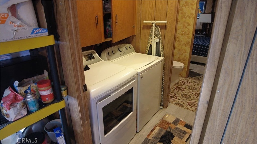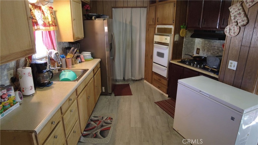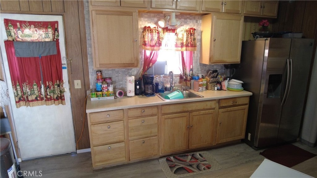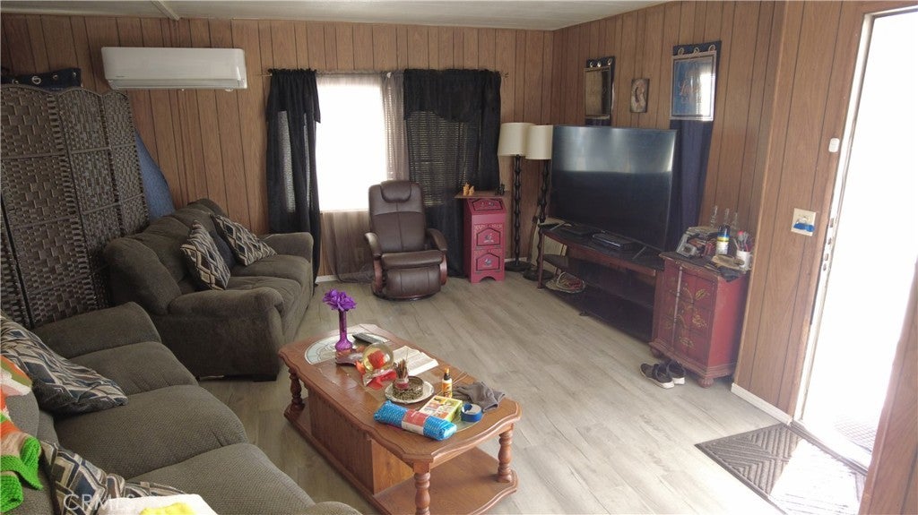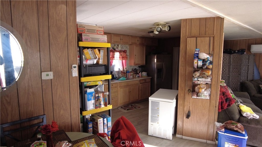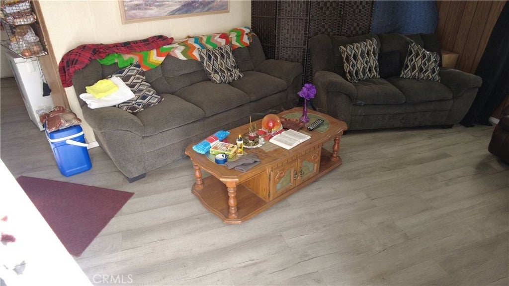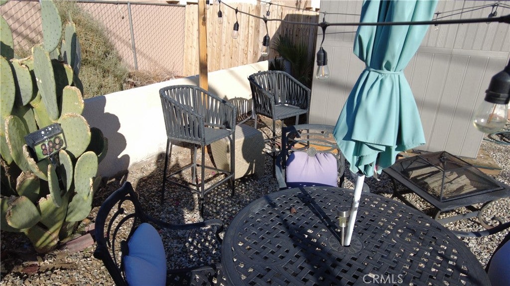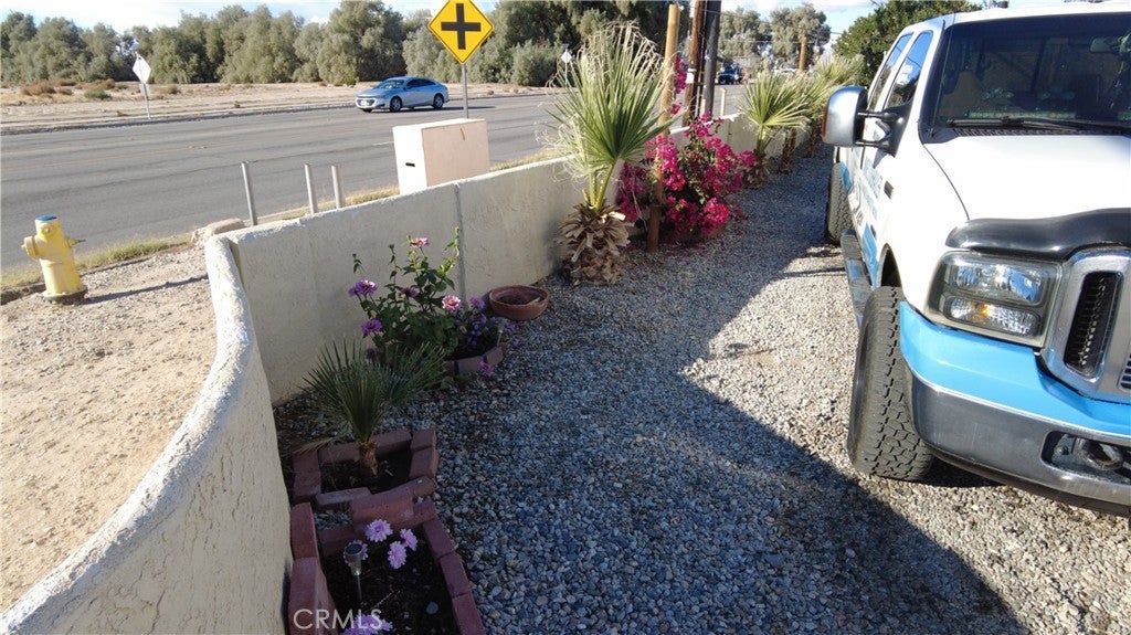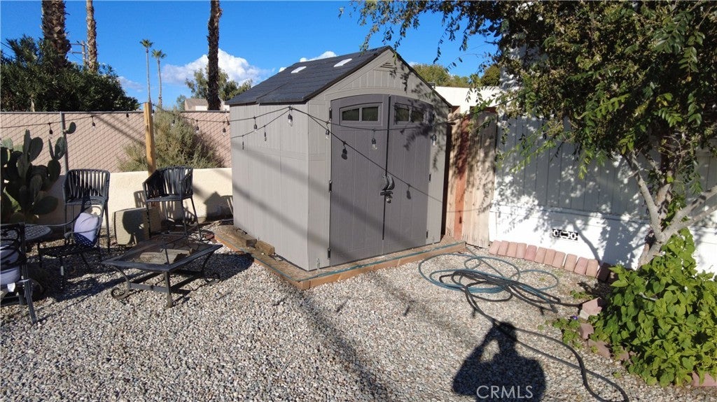 This is an all-age park. This mobile home features a covered patio, nice curb appeal, new flooring and new kitchen cabinets, separate dining area, back door that leads to side of the mobile home, mini spilter, security system, shed, washer and dryer area, with hookup and much more. There is plenty of room for parking, on both sides of the home, for cars, trucks and RV's. Enjoy the privacy in your covered patio, while enjoying the views of downtown 29 Palms. Motivated to sell. Land fee is only $650/per month. Must qualify with park manager to live in the mobile home park. Sold as-is. So hurry now. This is a must see. This will not last long.