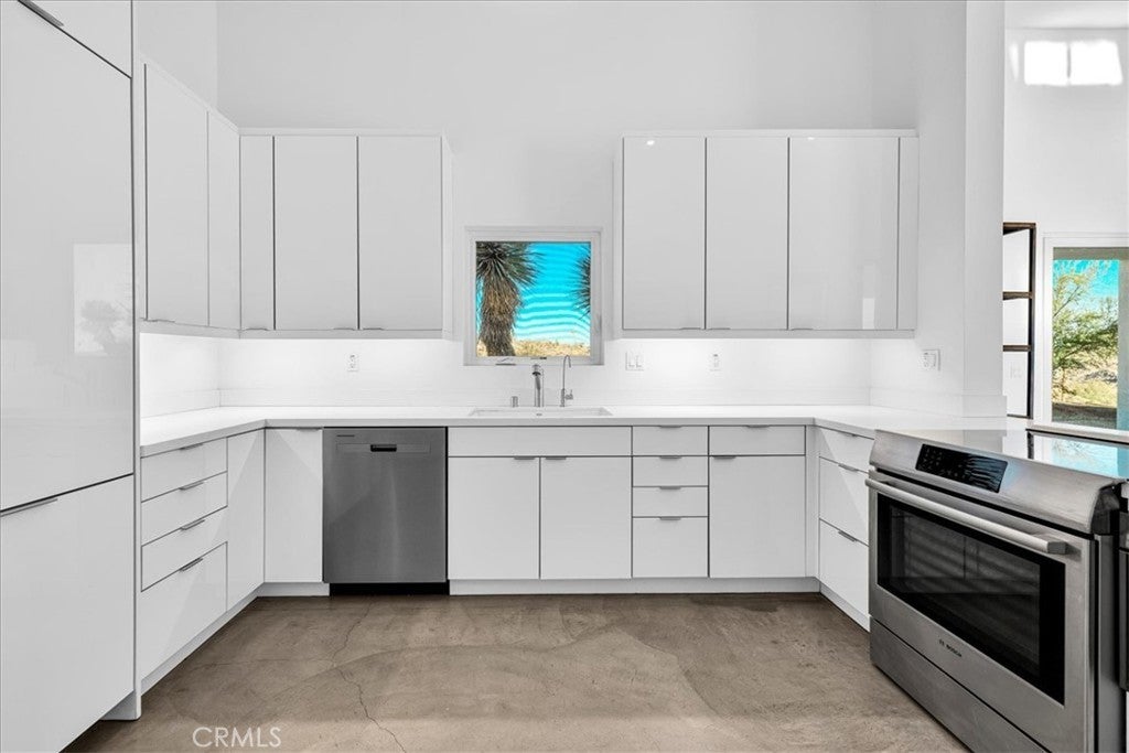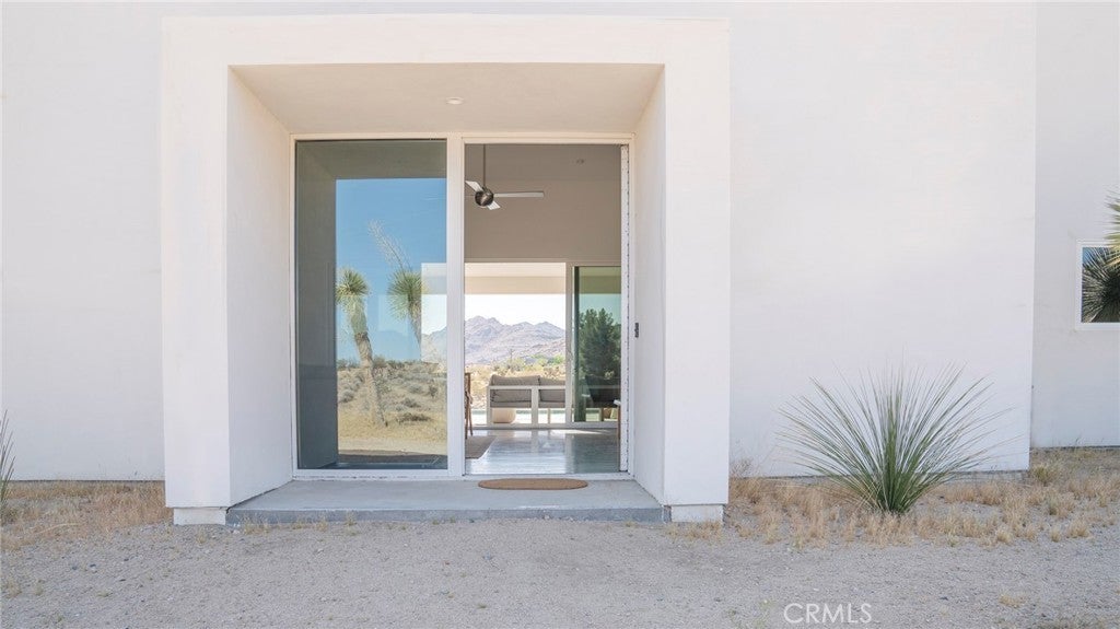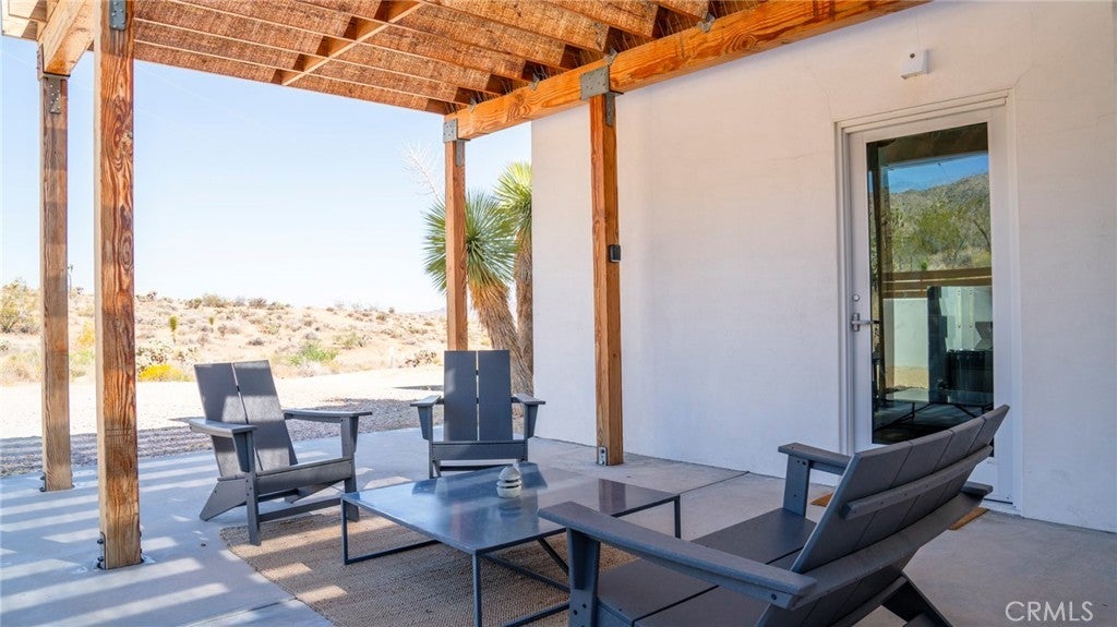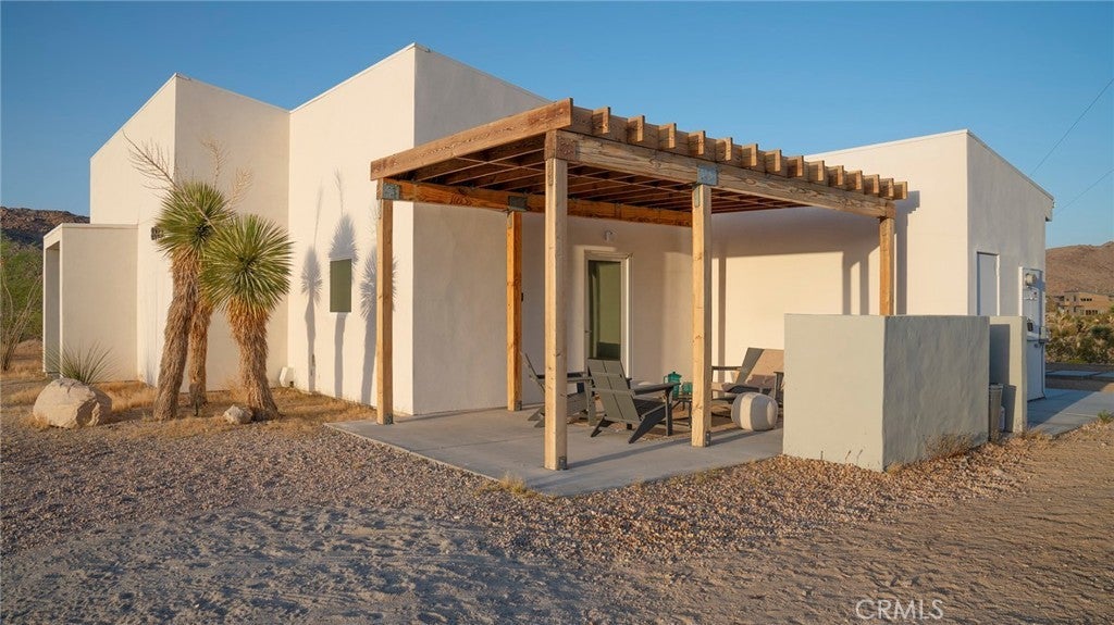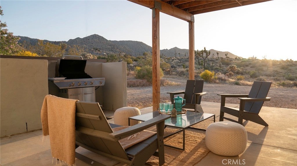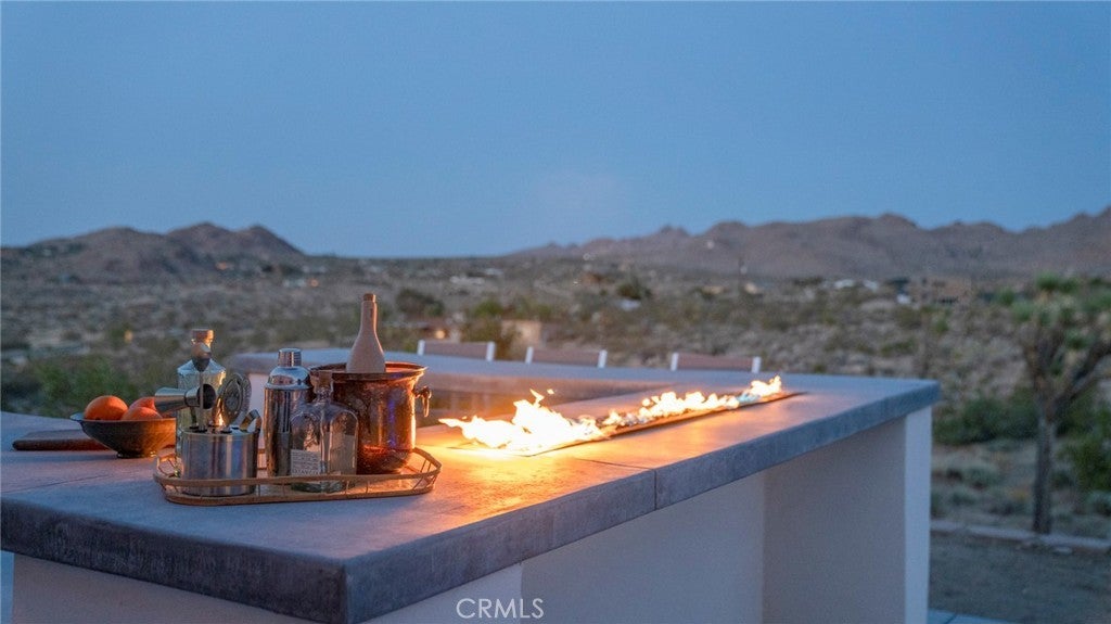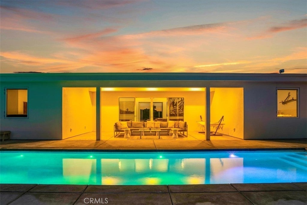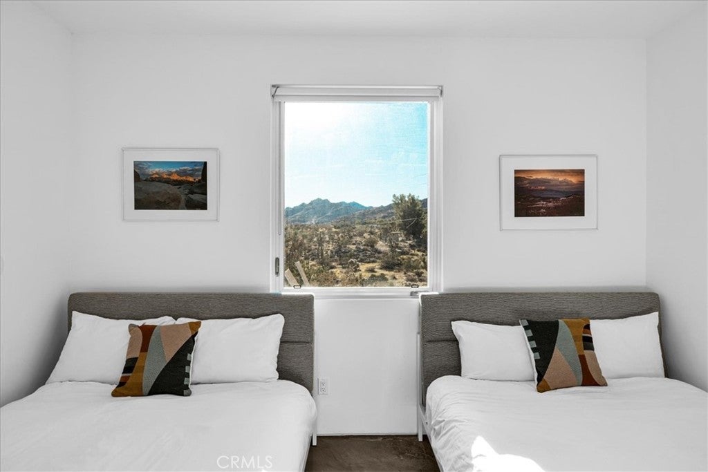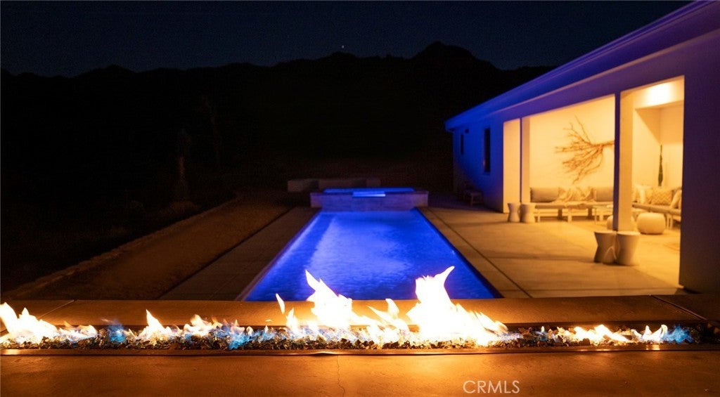 SHORT TERM VACATION RENTAL OPPORTUNITY! Set against the stunning backdrop of Joshua Tree National Park, this fully furnished 3-bedroom, 2-bath home is a rare offering in highly sought-after Monument Manor. Built in 2017 and thoughtfully designed with the modern desert dweller in mind, the home offers 1,806 square feet of contemporary living space nestled among rolling hills and lush, natural landscaping. From the moment you arrive, you’ll be struck by the property's serene seclusion and panoramic views, which frame the dramatic desert terrain in every direction. The landscaping is a work of art, featuring native species such as mesquite trees, yuccas, Joshua trees, ocotillos, acacia, and palo verde—all enhancing the sense of harmony with the natural surroundings. Inside, the home showcases sleek concrete floors, soaring ceilings, and 8-foot exterior doors that invite light and air throughout the open-concept floor plan. The expansive living and dining areas flow effortlessly into a custom-designed kitchen equipped with high-end Bosch appliances, an induction cooktop, a water filtration system, and custom cabinetry tailored for those who love to cook and entertain. Every detail has been considered for both luxury and functionality. The bedrooms are generously sized, while the bathrooms feature tasteful, high-end finishes and thoughtful design touches. Climate control is handled by a Nest-managed central HVAC system, and the home is powered by paid solar, making it fully electric and energy-efficient. Stepping outside, the property transforms into your own private resort. A custom in-ground pool and spa create the perfect setting to cool off or unwind under the stars. The outdoor bar, built-in firepit, and multiple patios and lounge areas provide ideal spaces for hosting gatherings, enjoying peaceful sunsets, or simply soaking in the tranquil atmosphere. While the property offers an exceptional sense of privacy and escape, it also functions as a permitted short-term rental, delivering strong investment potential. With its combination of luxury, thoughtful design, and unparalleled location, this is more than a home—it’s a lifestyle. Whether you're searching for a high-end vacation rental, a personal retreat, or a forever home, this extraordinary Monument Manor property offers it all.