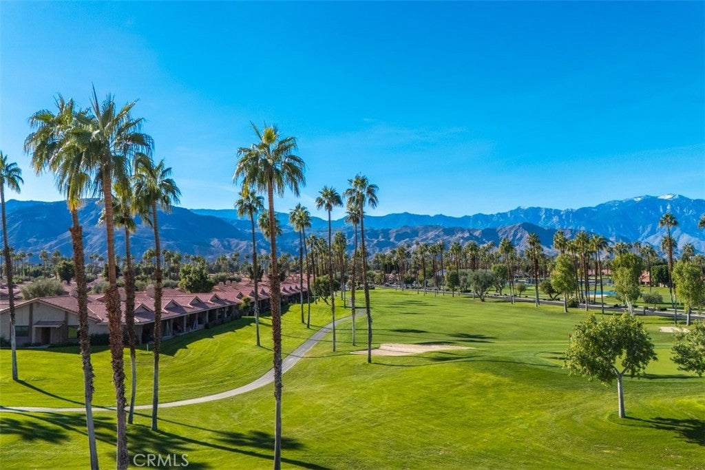Turnkey desert retreat with breathtaking views. Welcome to the prestigious Chaparral Country Club in Palm Desert, this 3-bedroom, 2-bath home is your gateway to effortless resort-style living. Move in and start enjoying sweeping snowcapped views of the majestic San Jacinto Mountains while overlooking the lush greens of the 7th fairway and its tranquil lake. Step onto the expansive patio with south, west, and north-facing views ensuring stunning vistas throughout the day. An electric awning provides shade for cool, comfortable outdoor lounging. Inside, the bright and open living space boasts vaulted ceilings, a cozy fireplace and a seamless flow to the stylishly updated kitchen. The quartz counters invite casual seating, while the dining area and al fresco patio dining offer multiple options for hosting. Situated in the center of the home is a sunlit tiled atrium. Two of the three bedrooms have sliding doors opening into this serene space. The spacious primary suite is a true retreat featuring a luxurious soaking tub, separate walk in spa-like shower, dual vanities, and a walk in closet. With top-tier upgrades, an unbeatable location, and a layout designed for comfort and style, this Chaparral Country club gem offers the perfect blend of relaxation and recreation. Just minutes from world-class dining, shopping , and country club amenities, this home is a must see.