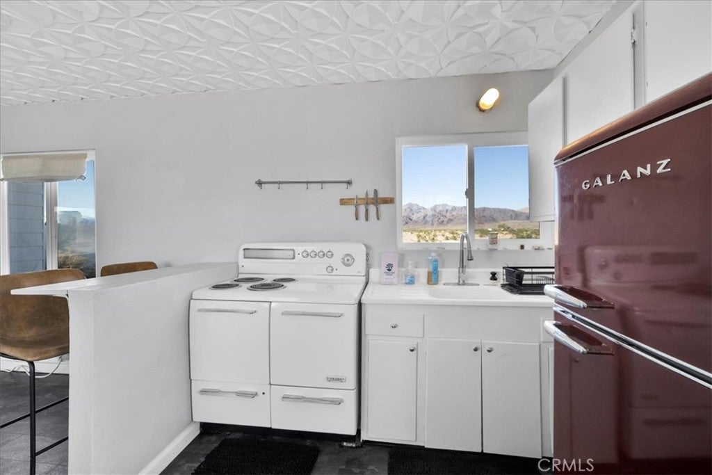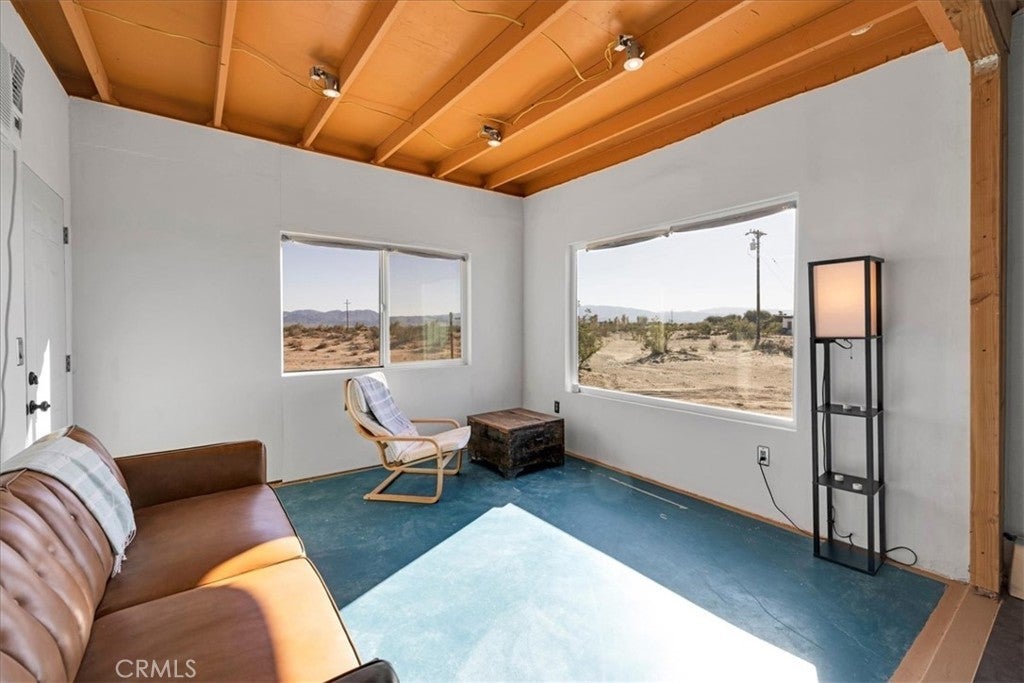 Escape to your own slice of high desert heaven in this adorable 1-bedroom, 1-bath single-family retreat nestled in the heart of Wonder Valley. With a charming retro vibe and timeless character, this cozy home offers the perfect blend of vintage flair and serene solitude. Features You'll Love: Spacious picture window framing breathtaking mountain views. Classic retro finishes that evoke mid-century charm. Open living area with natural light and desert warmth. Private bedroom with peaceful ambiance. On site laundry. Expansive lot offering true seclusion and starry night skies with large South facing patio. Whether you're seeking a weekend getaway, artist’s hideout, or full-time desert dwelling, this property delivers tranquility, inspiration, and a front-row seat to nature’s beauty. Just a short drive from Joshua Tree National Park, yet worlds away from the hustle. Come experience the magic of Wonder Valley—where the sunsets are cinematic and the silence is golden.