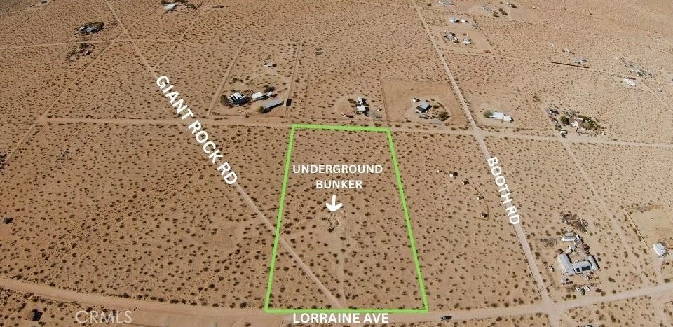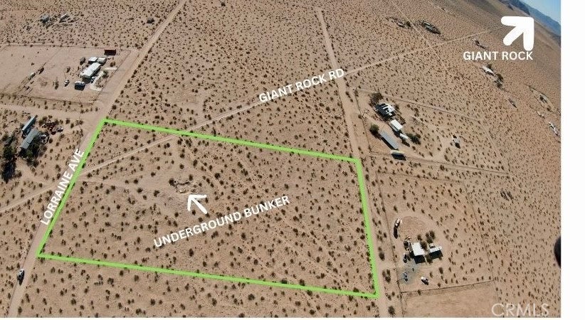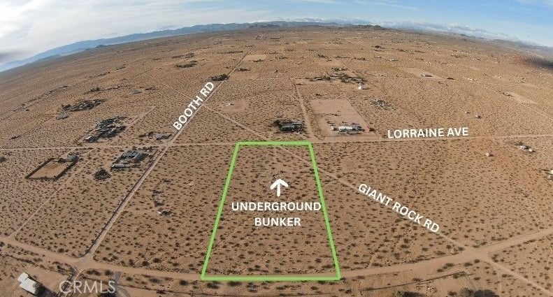 Rare opportunity in the heart of Landers. This expansive 5-acre desert parcel features an existing underground bunker (unpermitted)—a truly unique element that sets this property apart and sparks endless creative potential. Located just 5–10 minutes from the iconic Giant Rock, the property offers a deep sense of seclusion paired with sweeping panoramic desert and mountain views. The wide-open landscape delivers privacy, quiet, and a genuine connection to the high desert—ideal for those seeking something beyond the ordinary. Despite its peaceful setting, you’re still minutes from some of the area’s most celebrated destinations, including La Copine and Giant Rock Meeting Room, blending solitude with access to Landers’ vibrant local culture. Utilities are located in the street, offering a valuable head start for future development. Whether envisioned as a long-term land hold, creative retreat, or future build site, this property represents a rare chance to own a truly distinctive piece of Landers. Lot lines shown in photos are approximate. Buyer to verify zoning, permits, access, utilities, and all potential uses.