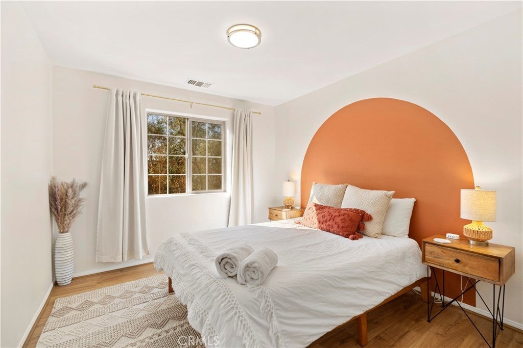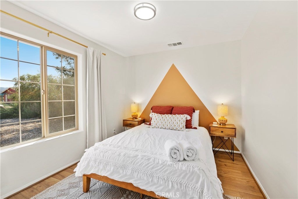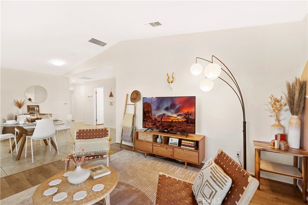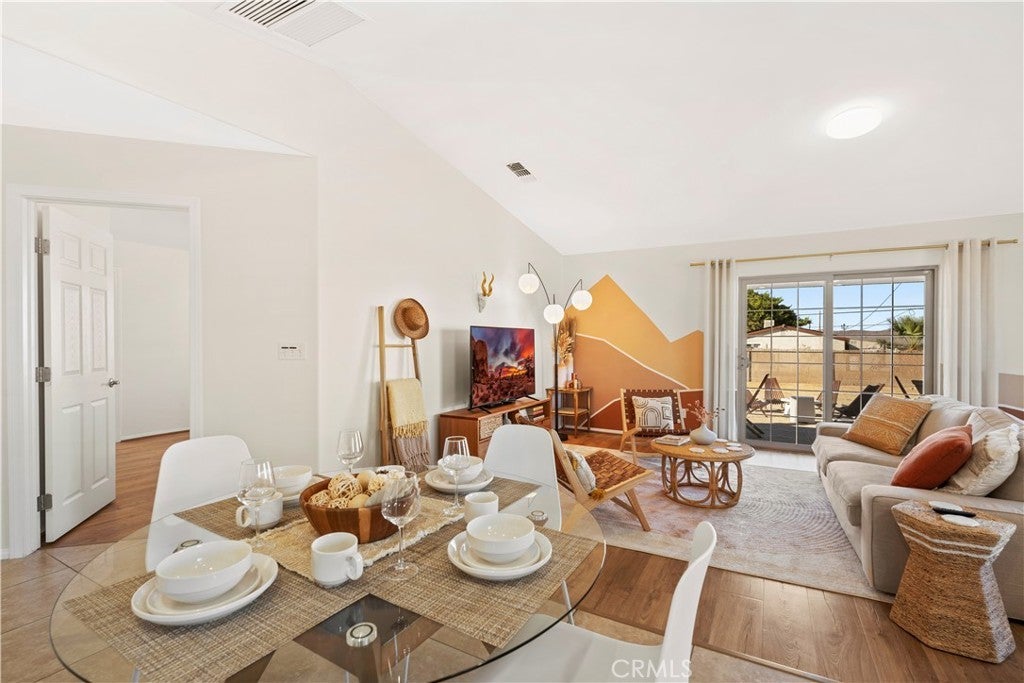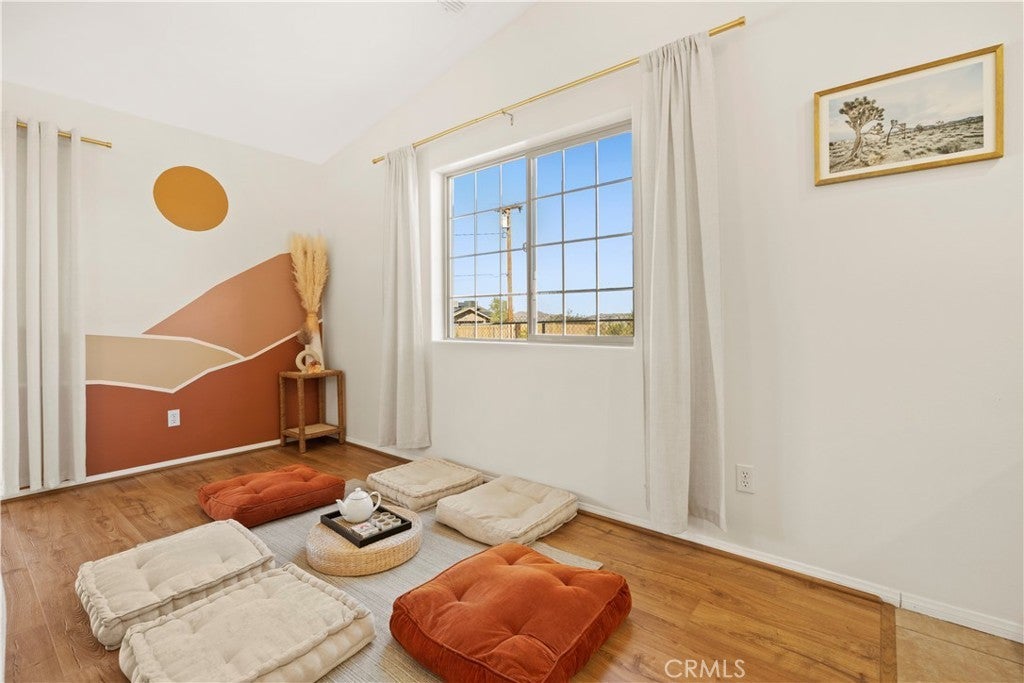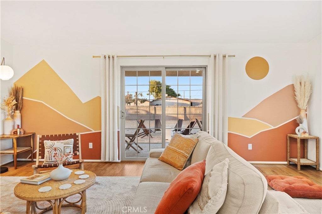 Welcome to this thoughtfully updated three-bedroom, two-bath Joshua Tree retreat, where modern comfort meets the timeless beauty of the high desert. Located just 15 minutes from the entrance to Joshua Tree National Park, this inviting home also places you near celebrated local landmarks including the Transmission Sculpture and the Simi Dabah Sculpture Garden. Whether you’re seeking a full-time residence, a stylish weekend getaway, or a ready-to-go investment property, this home offers the flexibility to fit your vision. Inside, an open, airy floor plan with vaulted ceilings creates a sense of space and ease, ideal for entertaining, working remotely, or simply unwinding. The home features modern finishes throughout, including quartz countertops, stainless steel appliances, updated bathroom vanities, and refreshed cabinetry with contemporary hardware, all complemented by durable hardwood laminate flooring. Comfort and efficiency are front and center with Tesla solar, central HVAC, and an evaporative cooler, while smart home features add convenience and peace of mind whether you’re on site or away. Set at the end of a paved cul-de-sac, the property enjoys a quiet, tucked-away setting within a small neighborhood that feels both private and connected. The fenced yard opens to expansive east-facing views of Copper Mountain, wide-open desert terrain, and nearby walking, biking and horse trails. Evenings here are made for gathering around a campfire, watching the moon rise over the mountains, and taking in brilliant night skies filled with stars. This is a rare opportunity to own a turn-key desert home that captures the spirit of Joshua Tree while offering modern livability—schedule your private showing and experience it for yourself.