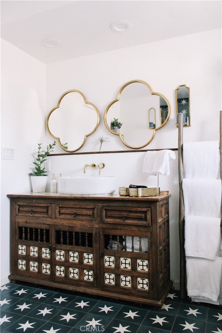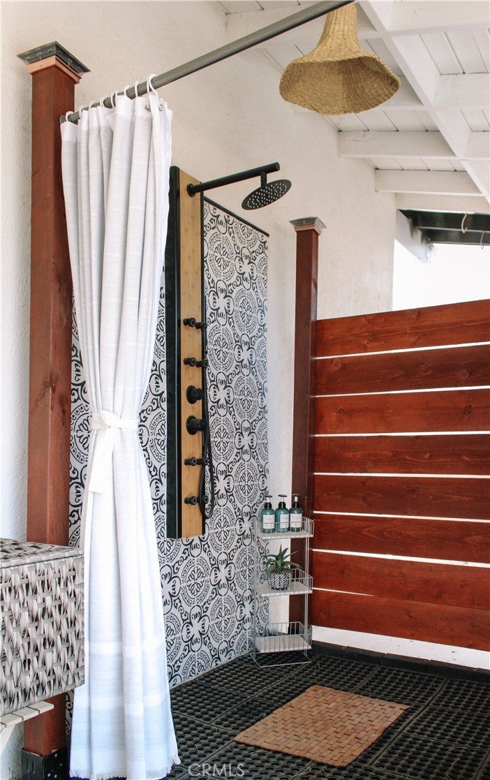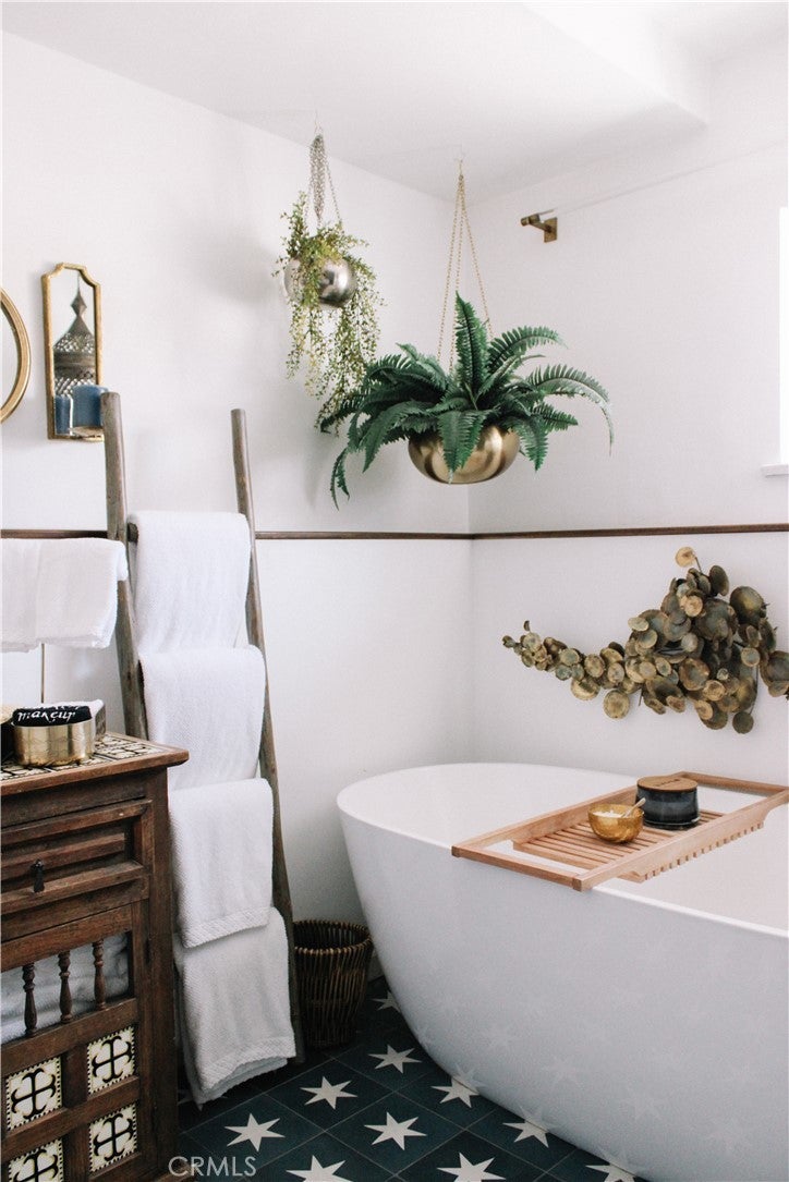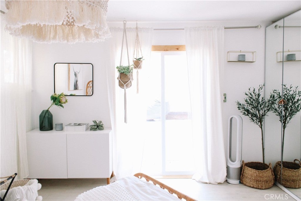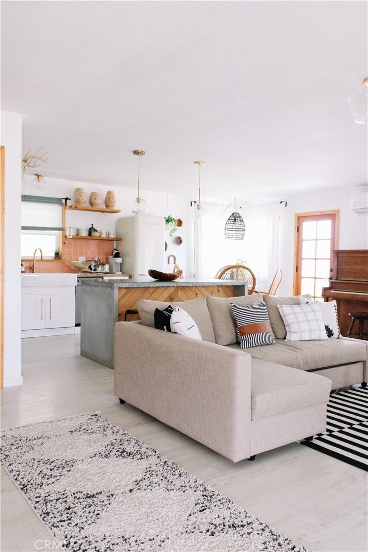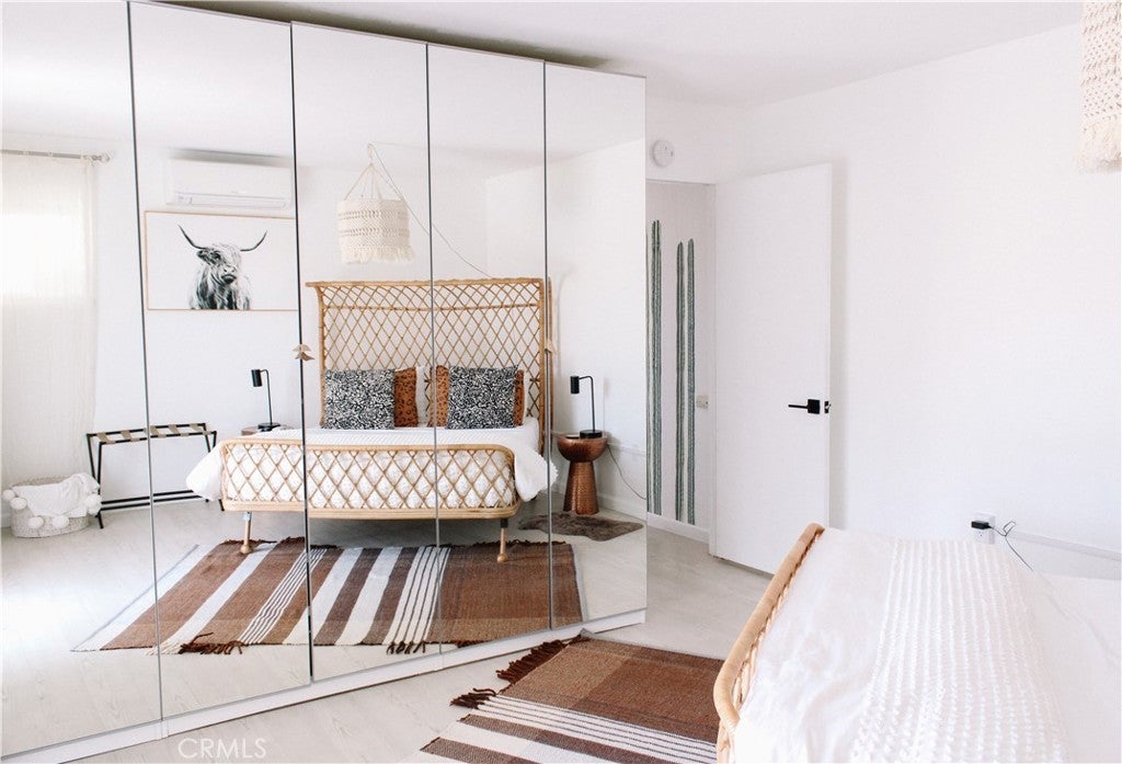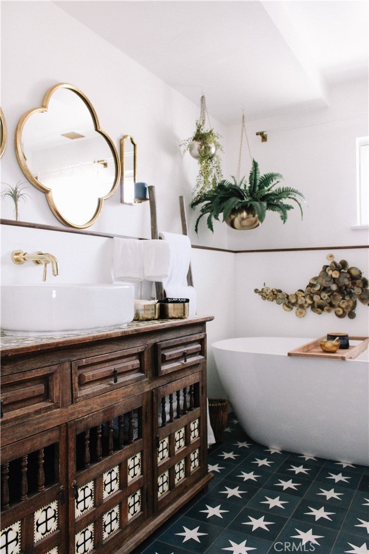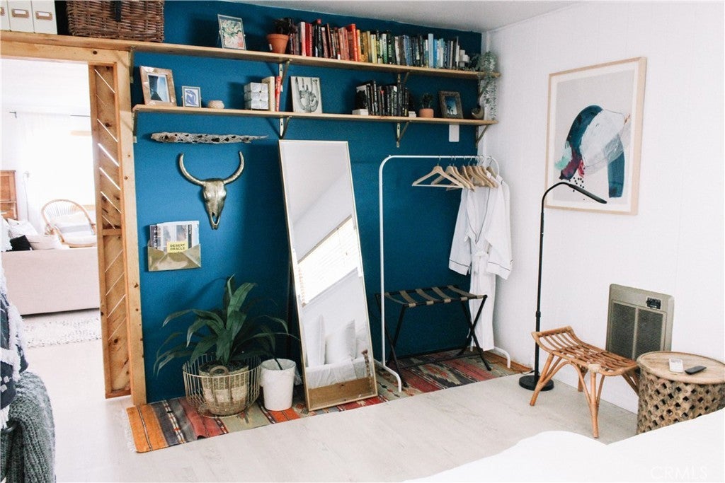 NEW ROOF installed Jan 2026!! Insurance companies love to see that! Be taken away by the curated, one-of-a-kind "Aum-Hanaya Desert". With its meaning of "willingness and courage to experience the unfamiliar in grace", this house will truly take you to another desert dimension. 2 bed, 1 bath. Closer to the Joshua Tree National Park than the Visitor Center, this location is par none. Walking/biking distance to the Downtown Village area with local restaurants, bars, and shopping. Situated on the famous Park Blvd, the street leading into the National Park but based far back off the road with mature landscaping. The inside is completely remodeled with no expense spared.  A beloved, successful vacation rental, the home is beautifully appointed with a new kitchen, custom concrete waterfall island, designer finishes including light fixtures, fireclay tile, large farm sink, a spa-like bathroom with Delta fixtures, and many carefully curated furnishings. Additional improvements include all new windows, efficient ductless mini-split (AC/heat), and fresh paint. Watch the sunrise over the boulders out front, the sunset over the backyard, and the city lights twinkling to the North. The sliding glass doors lead out to the fully fenced-in private backyard with an outdoor shower, gazebo, and heated/cooled cowboy tub. Boasting an outdoor living space with an abundance of potential, already primed for stargazing and lounging.