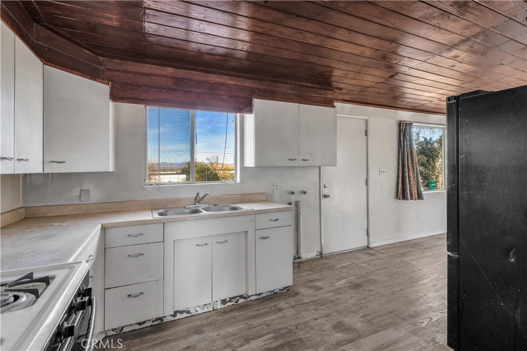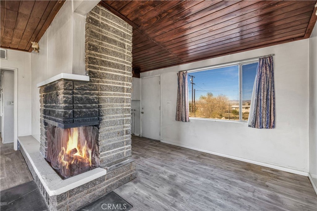 Affordable Mid-Century Modern 3-Bedroom Fixer on a Large Corner Lot in 29 Palms! This charming mid-century modern home offers an incredible opportunity for buyers looking for value and potential. Located on a large corner lot, this 3-bedroom, 1-bath home features classic architectural elements and a functional layout ready for your finishing touches. As you enter, you’ll be greeted by a warm and inviting living area, highlighted by tongue-and-groove ceilings and a stylish corner fireplace that serves as the centerpiece of the room. The dining area is well-sized, and the kitchen offers a practical layout with good flow and usability. The bathroom is centrally located, making it easily accessible for guests and all three bedrooms. Each bedroom is adequate in size, with potential to personalize and update to your taste. Additional features include an attached garage, a fully fenced backyard, and a large concrete patio—perfect for outdoor living. From the backyard, enjoy stunning desert and mountain views, adding to the peaceful ambiance of the property. This home is being sold as is, where is, making it a fantastic opportunity for investors, first-time buyers looking for a project, or anyone seeking to add value in a growing area. Don’t miss out on this affordable opportunity—schedule your private showing today!