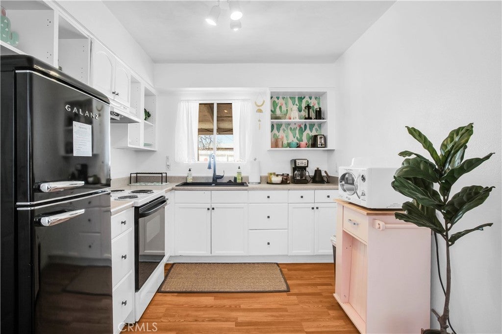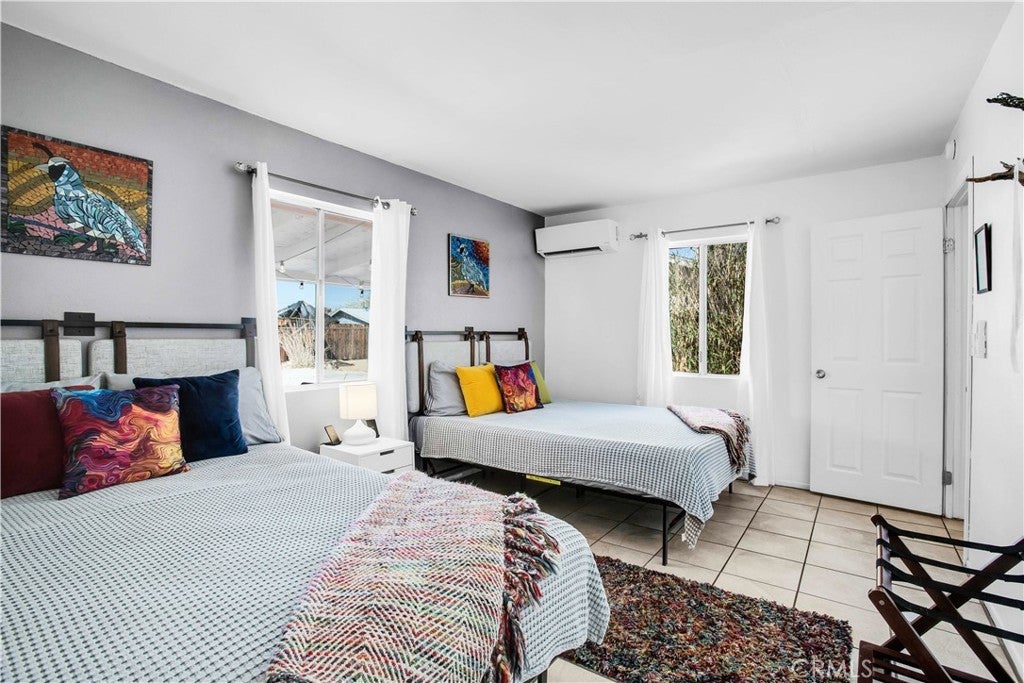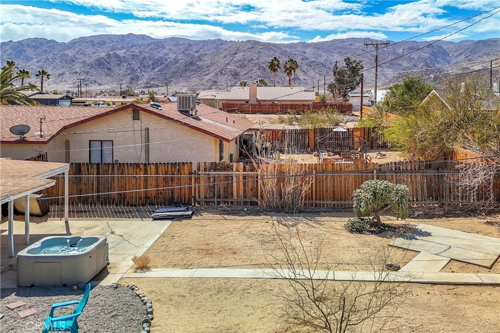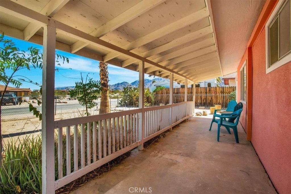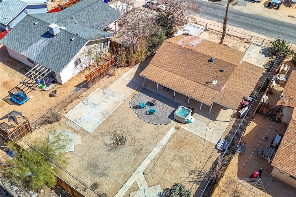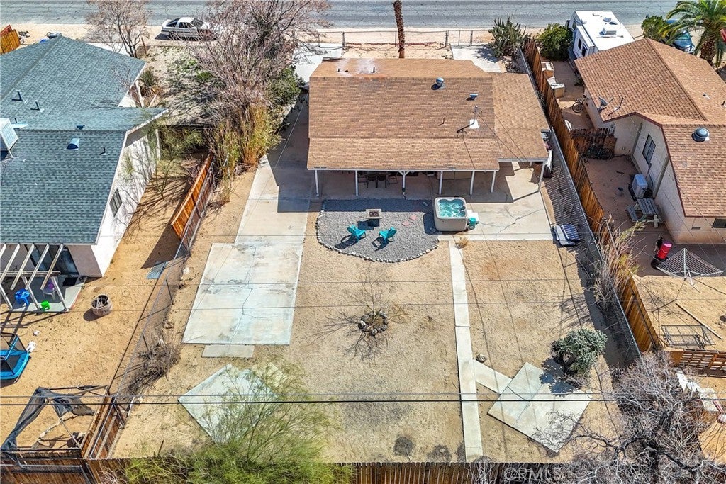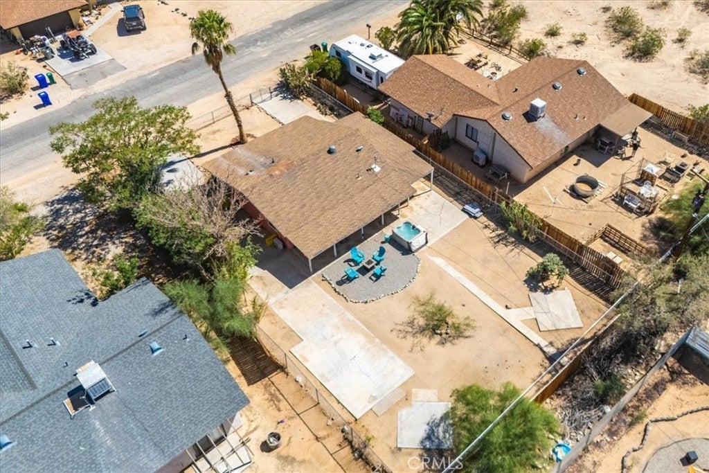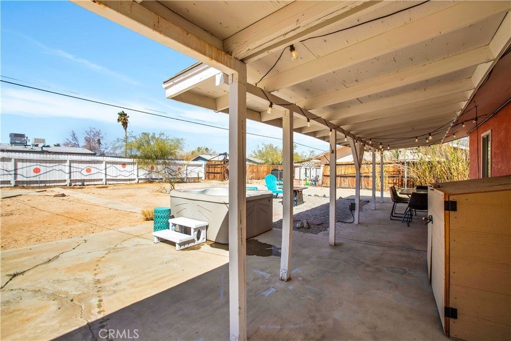 This home is turn-key and full of charm. This fully furnished 1-bedroom, 1-bath home is ready for you to move right in or start generating income. Offered fully furnished including a hot tub and all kitchen appliances, this home makes desert living effortless. Inside, the layout feels surprisingly spacious, featuring durable tile flooring throughout and a bathroom with a shower/tub combo plus a convenient linen closet. Home offers an energy-efficient mini-split heating and cooling system. Providing zoned climate control, allowing individual rooms to be independently heated or cooled for enhanced comfort and reduced energy costs. This ductless system offers quiet operation, improved efficiency. As you step outside and enjoy the beautiful wraparound covered patio, perfect for morning coffee or evening relaxation. The spacious backyard offers stunning mountain views, partial wood fencing for privacy along with chain-link fencing, and a covered shed housing the washer and dryer. A fire pit creates the perfect setting to stay warm while stargazing under the desert sky. Great for entertaining or relaxing solo. Ideally located the chocolate drop area, this home offers convenient access to the best of local amenities and desert living. Just minutes from downtown 29 Palms, enjoy nearby popular dining spots, coffee shops, breweries, and local favorites. Everyday conveniences such as grocery stores, banks, pharmacies, and gas stations are all close by along 29 Palms Highway. Outdoor enthusiasts will love the easy access to the north entrance of Joshua Tree National Park, as well as nearby parks, trails, and community recreation areas. The property is also near local schools, the public library, Theatre 29, and seasonal community events making it a great location for both full-time living, weekend escapes, or an investment property.