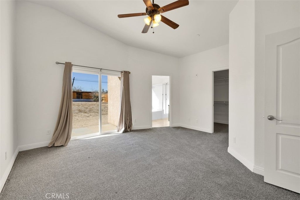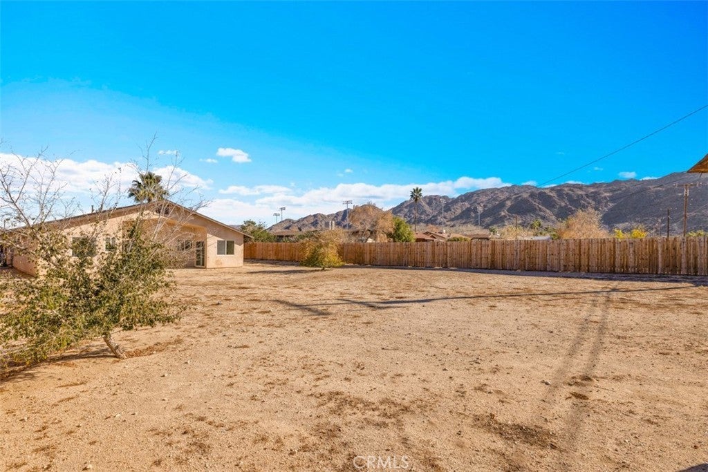 Welcome home—if you’re looking for a spacious, move-in-ready home in a great neighborhood, this 4-bedroom, 2-bath property in the Smoke Tree area of 29 Palms is a must-see. Built in 2013 and situated on just over 1/3 of an acre, this well-maintained home offers 1,827 sq ft of comfortable living space and has been recently refreshed with brand-new interior paint, new window blinds, new laminate flooring in the guest bedrooms, and a brand-new garage door, giving it a clean, updated feel throughout. The generously sized living room features a gas fireplace that adds warmth and ambiance, along with ceiling fans and multiple double-pane windows that fill the space with natural light. The open dining area flows seamlessly into the chef-inspired kitchen, complete with granite countertops, stainless steel appliances, ample cabinetry, recessed lighting, bar seating, and a sliding glass door that leads to the fully fenced backyard. Step outside to enjoy the covered concrete patio, perfect for entertaining, relaxing, or family gatherings. The primary bedroom is bright and well-sized, featuring an en-suite bathroom with tile flooring and a shower/tub combination. The guest bedrooms are cheerful and inviting, offering generous closet space and updated flooring. Additional highlights include a concrete driveway, an attached 2-car garage, a newer roof installed in 2018, and leased solar panels to help keep energy costs low year-round. Located on a paved road and directly across from Knotts Sky Park, this home is ideally positioned for convenience and everyday enjoyment. You’re just minutes from downtown 29 Palms, where you’ll find popular local restaurants, coffee shops, and unique boutiques. And for outdoor lovers, Joshua Tree National Park is a short drive away, offering world-class hiking, rock climbing, and iconic desert landscapes. With beautiful desert sunrises, a welcoming neighborhood feel, and easy access to town, this home offers space, comfort, and lifestyle. Schedule your showing today—this one won’t last.