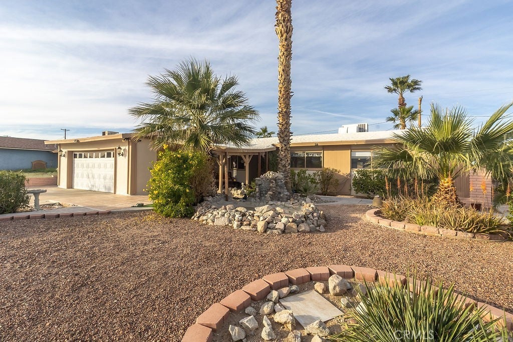 Back on the market!! (Buyer unfortunately had to cancel which means another opportunity for you to see this home) Beautifully maintained 3-bedroom, 2-bath home with a bonus room and sunroom, perfectly situated on a desirable corner lot with sweeping desert views. Step inside to a spacious layout featuring a large dining area ideal for entertaining and everyday living. The generous primary suite offers a relaxing retreat with a sizable walk-in closet and private bath. Enjoy indoor-outdoor living with a sunroom that fills the home with natural light. The beautifully landscaped backyard is designed for low maintenance while still offering plenty of space to relax or entertain. Out front, striking desert landscaping is enhanced by a tranquil waterfall feature, creating instant curb appeal. Located just minutes from the Colorado River, this home combines comfort, style, and a peaceful desert setting—perfect as a full-time residence or weekend getaway.