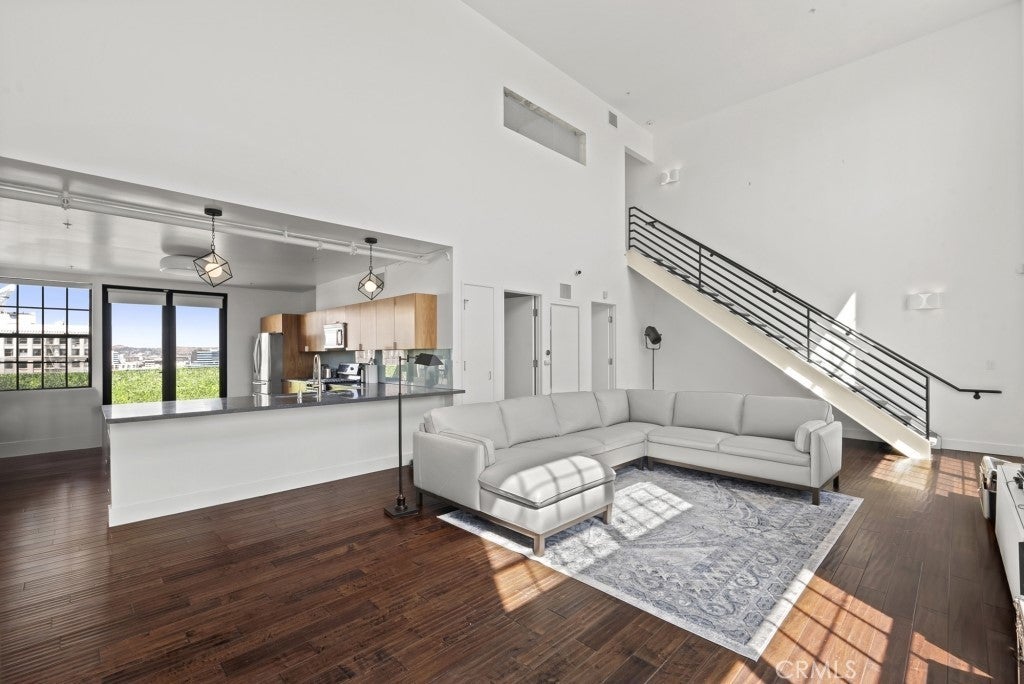 Two-story rooftop penthouse with 20 foot vaulted ceilings and panoramic views from every window of the downtown skylines, San Gabriel Mountains and Palos Verdes. With two private outdoor terraces, accessible from the kitchen and from both bedrooms. Building amenities include a 24-hour courtesy patrol and controlled access underground parking with your own 2 car parking space.