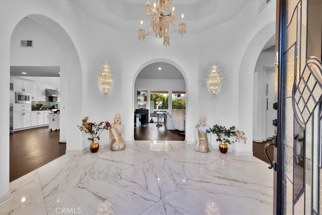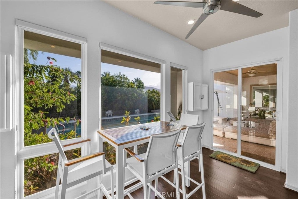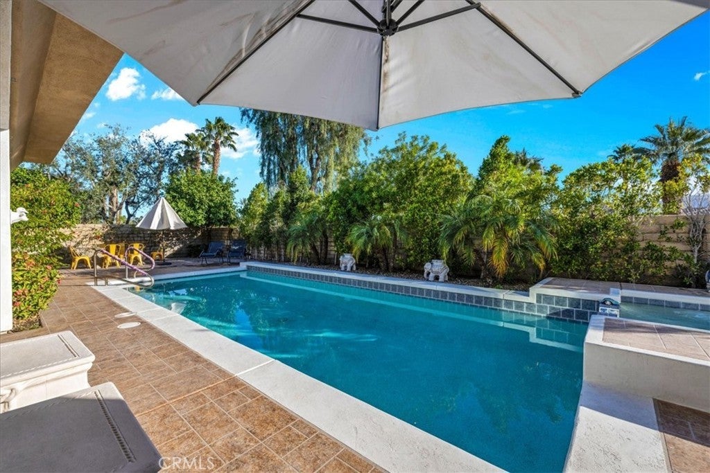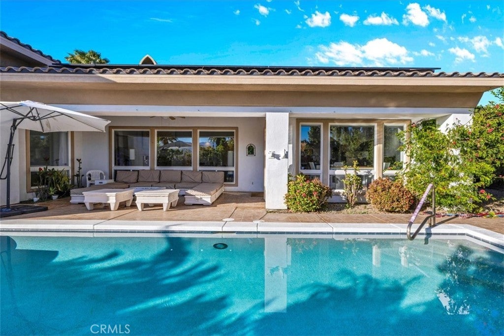 Set against a backdrop of sweeping mountain views, this 4 bedroom, 4.5 bath residence in Oakmont Estates offers 3,361 square feet of thoughtfully enhanced living space on an 11,761 square foot parcel. The private pool and spa create a resort-style setting framed by mature landscaping, privacy wall and open desert sky. Extensively upgraded, the home features new flooring throughout, reconfigured interior walls for improved flow, fresh interior paint, upgraded lighting in the living room, dining area, piano space, and casita. The open floor plan connects the formal dining room to the casual living area with fireplace and wet bar, creating an ideal layout for entertaining. Dramatic ceilings, refined architectural details, and expansive windows enhance the sense of scale and light. The gourmet kitchen is equipped with granite and quartz surfaces, custom cabinetry, stainless steel appliances, a new Thermador 6-burner gas range with vent hood, SubZero refrigerator, oversized wine cooler, new LG washer, new disposal, and generous prep space centered around a large island. The primary suite offers substantial proportions and includes a private retreat suitable for an office, fitness area, or sitting room. The spa-like bath features dual sinks, a jetted soaking tub, separate shower, and a newly installed bidet toilet. An attached casita with kitchenette connects through the formal entry courtyard, offering flexibility for guests or extended family. Outdoor improvements include new front patio pavers and plantings, new pool decking, additional rear landscaping, safety rails at the shower and pool, acid-washed, re-grouted pool and new lighting, updated jacuzzi motor, and a pool heater. The backyard remains private and ideal for enjoying mountain views from the pool, spa or large covered patio. Additional system upgrades include a leased solar system with three backup batteries, a new HVAC unit, dual A/C and heating systems, tank less gas water heater, whole-house water purification system, electric blackout shades in the bedroom, and gas appliances. Located within the secure gates of Mission Hills Country Club, residents enjoy access to golf, tennis, and clubhouse amenities, all minutes from Rancho Mirage dining, shopping, and entertainment. The HOA offers 2 restaurants, entertainment with live music and dances, trivia nights, and much more. HOA has optional packages to join, including a golf membership.