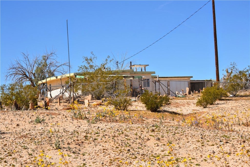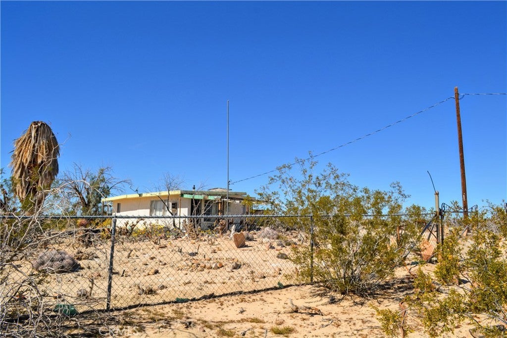 2-bedroom home in Wonder Valley situated on 5 scenic acres, fully enclosed with chain-link fencing and equipped with a private well. Perched atop a hill, this property offers breathtaking 360-degree views of the surrounding desert landscape and mountains. Features include a 2-car garage and endless potential. The home does need repairs, making it the perfect blank canvas to create your dream retreat and enjoy true peace and privacy.